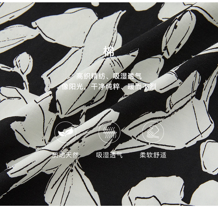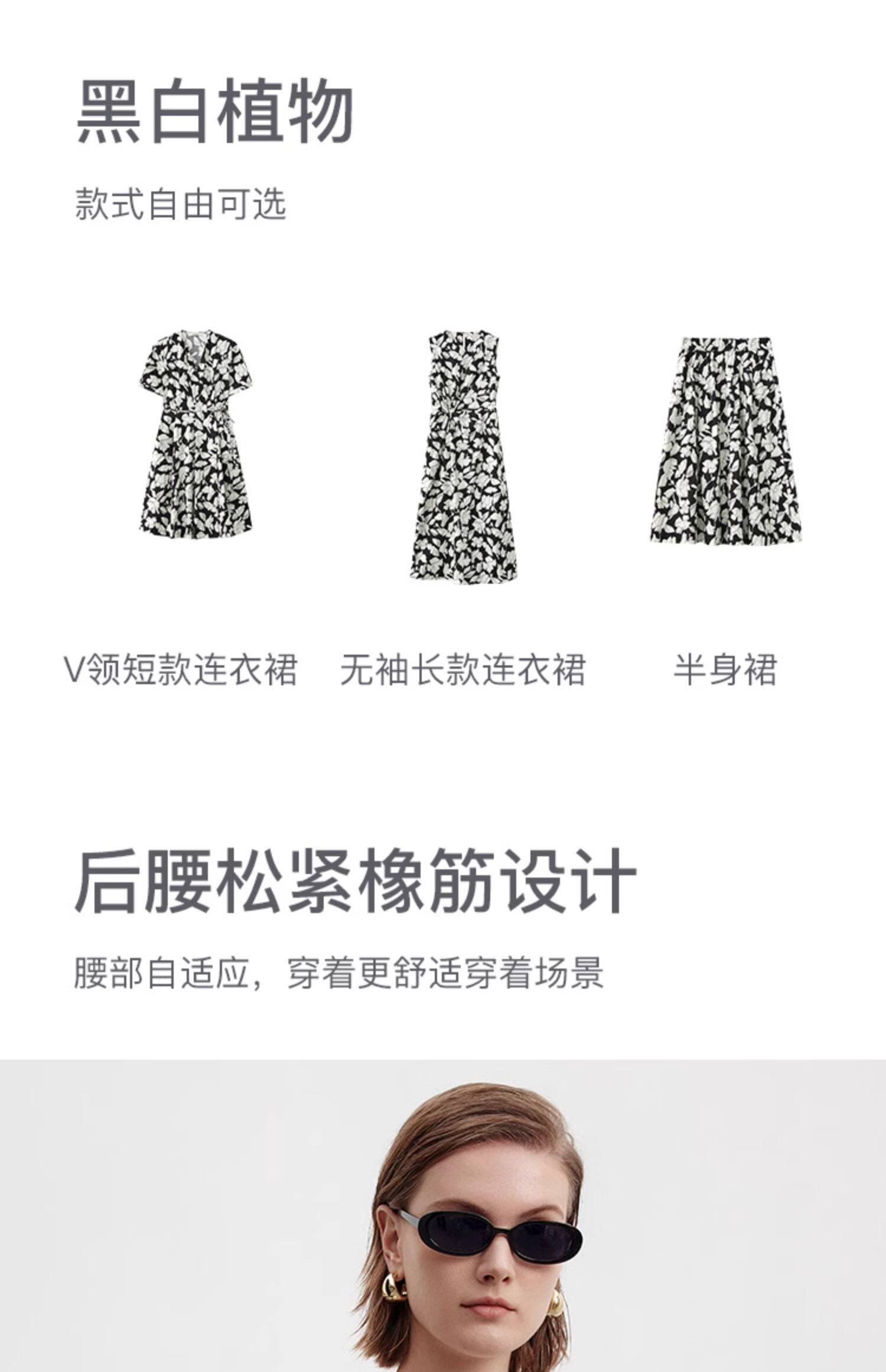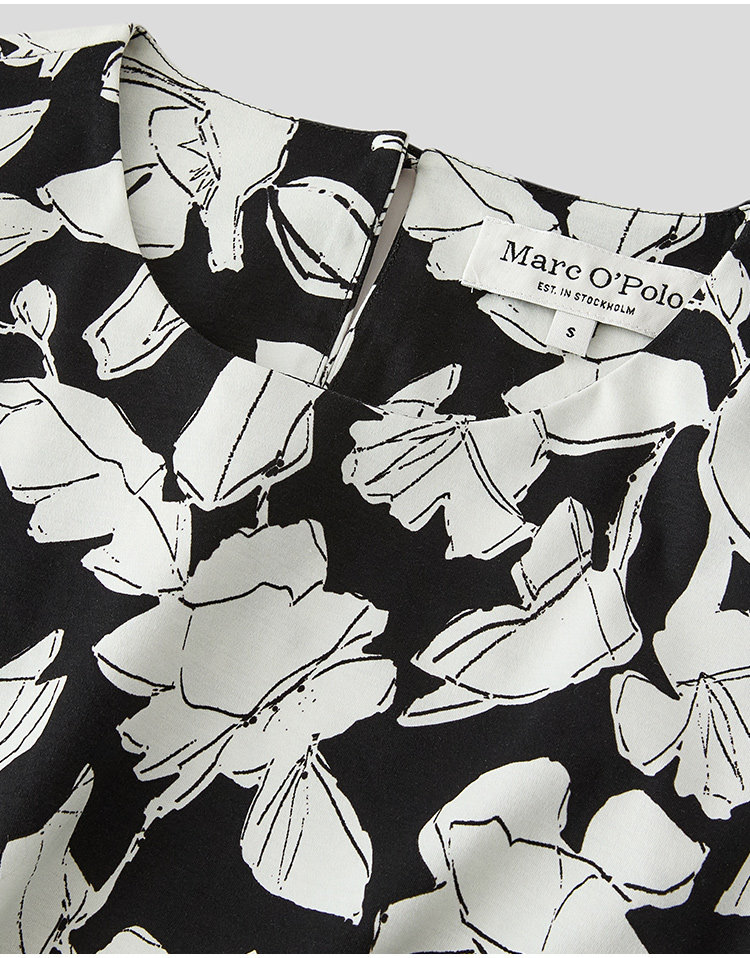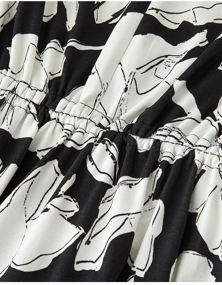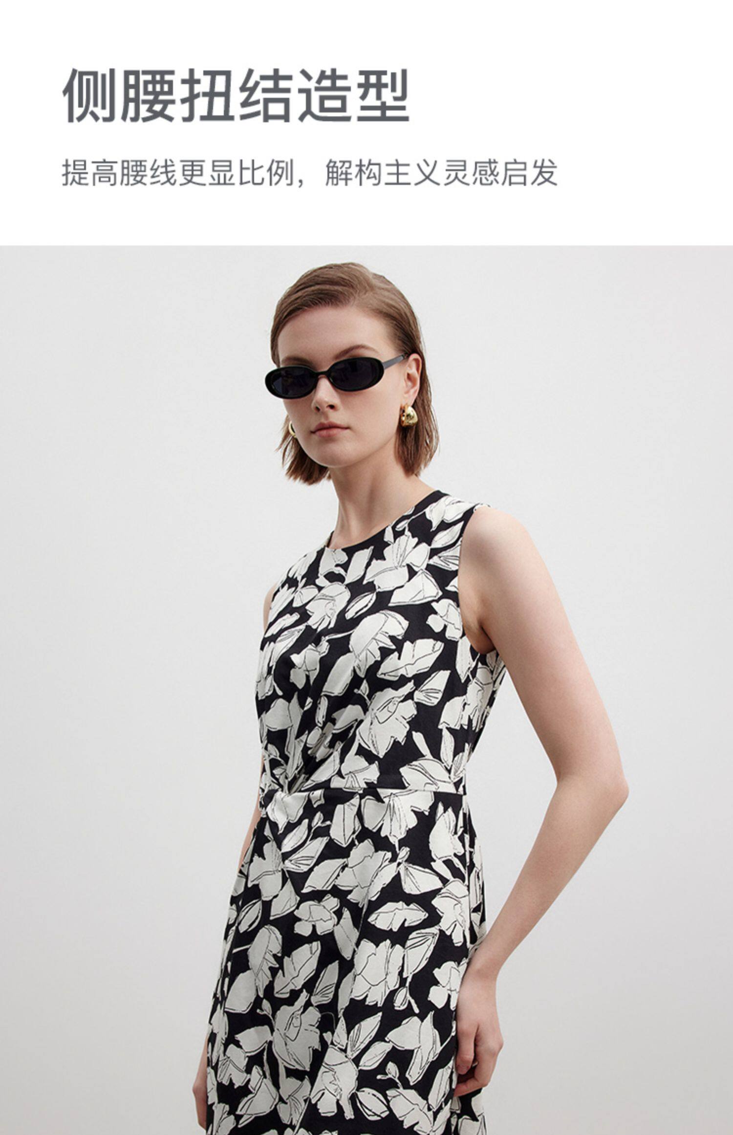 Marc O'Polo/MOP夏季新款好看黑白自然植物印花长款无袖连衣裙女