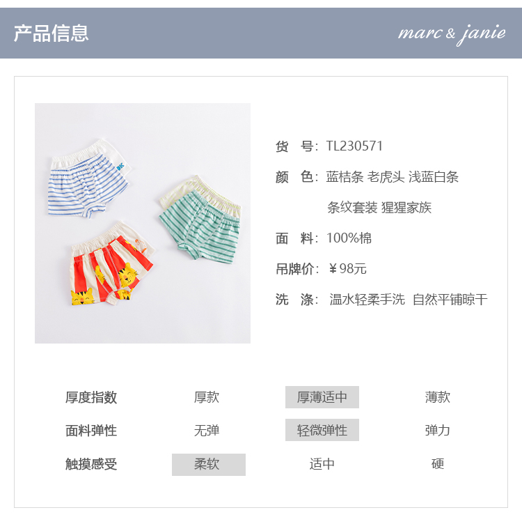 【2条装】马克珍妮新款春装 男童不夹屁屁纯棉平角内裤230571