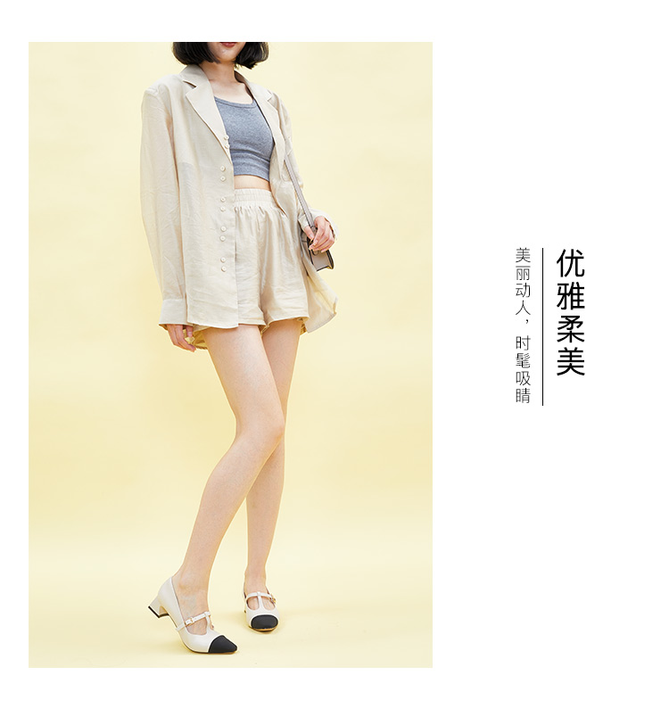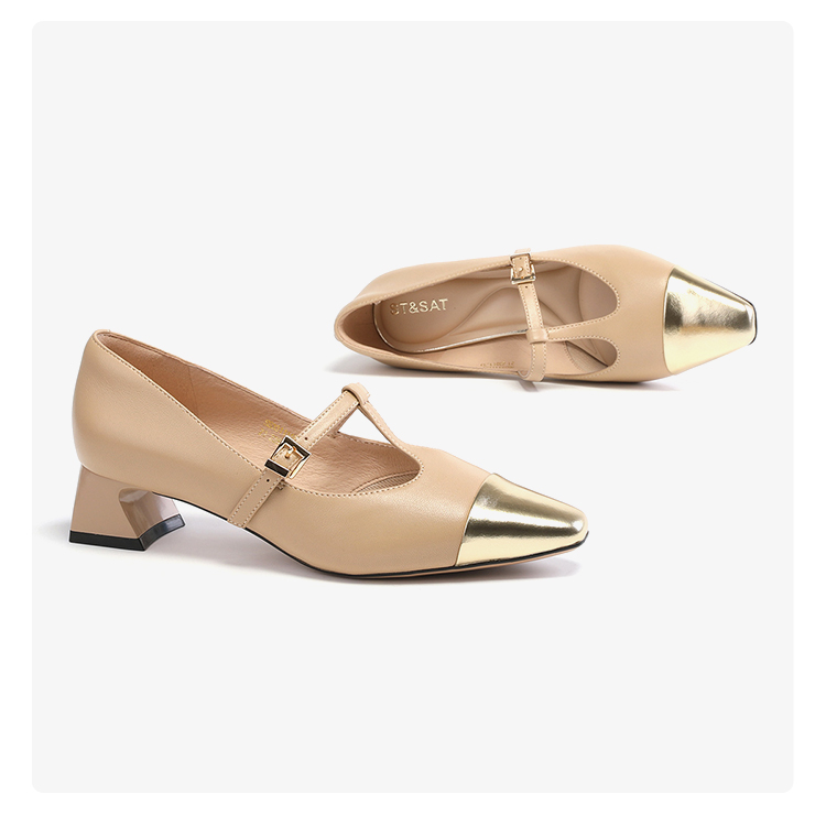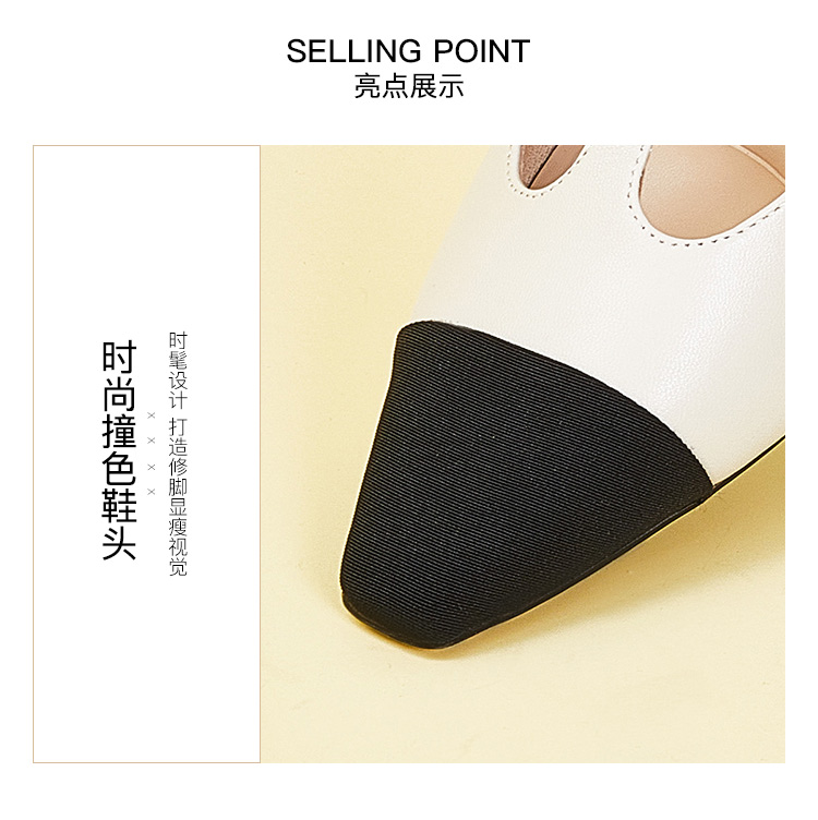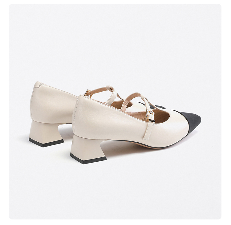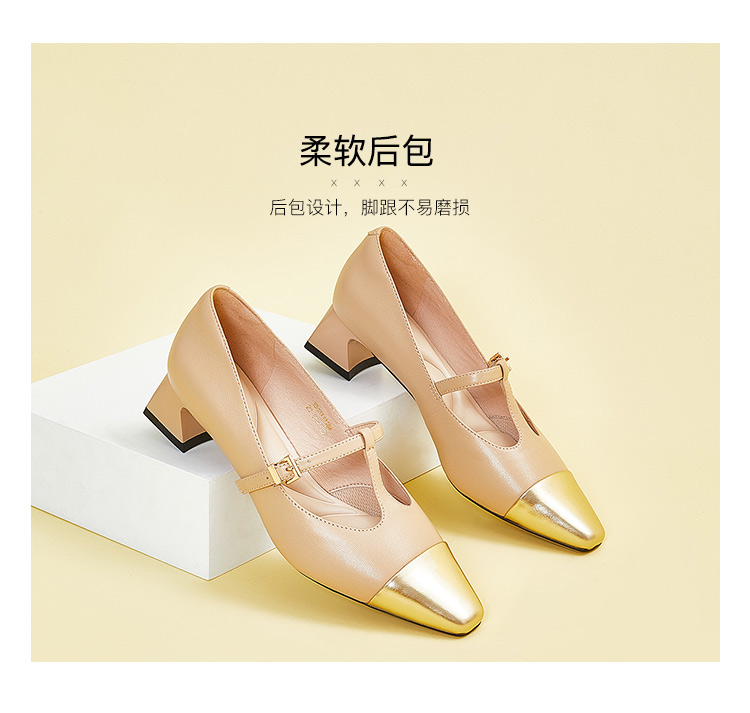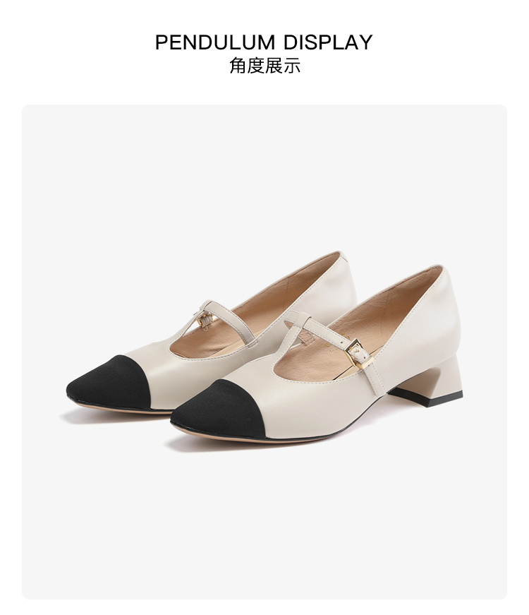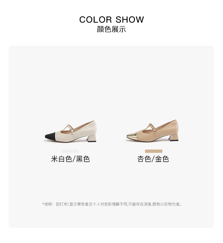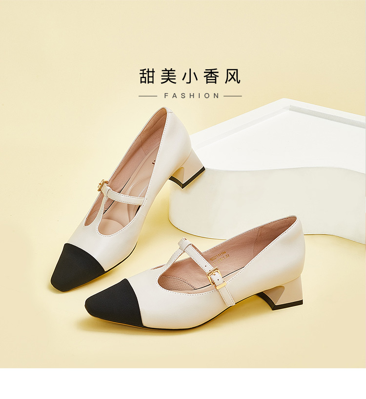 星期六拼色羊皮浅口方跟休闲女鞋SS33111184