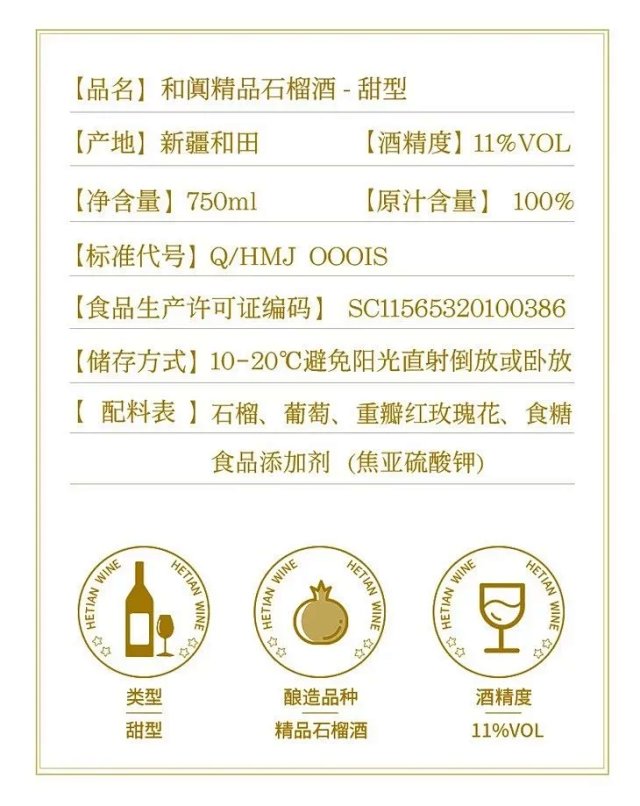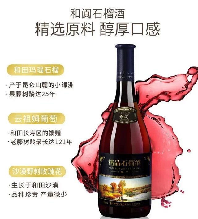 新疆和阗红酒精品石榴酒(甜型)750mL/瓶