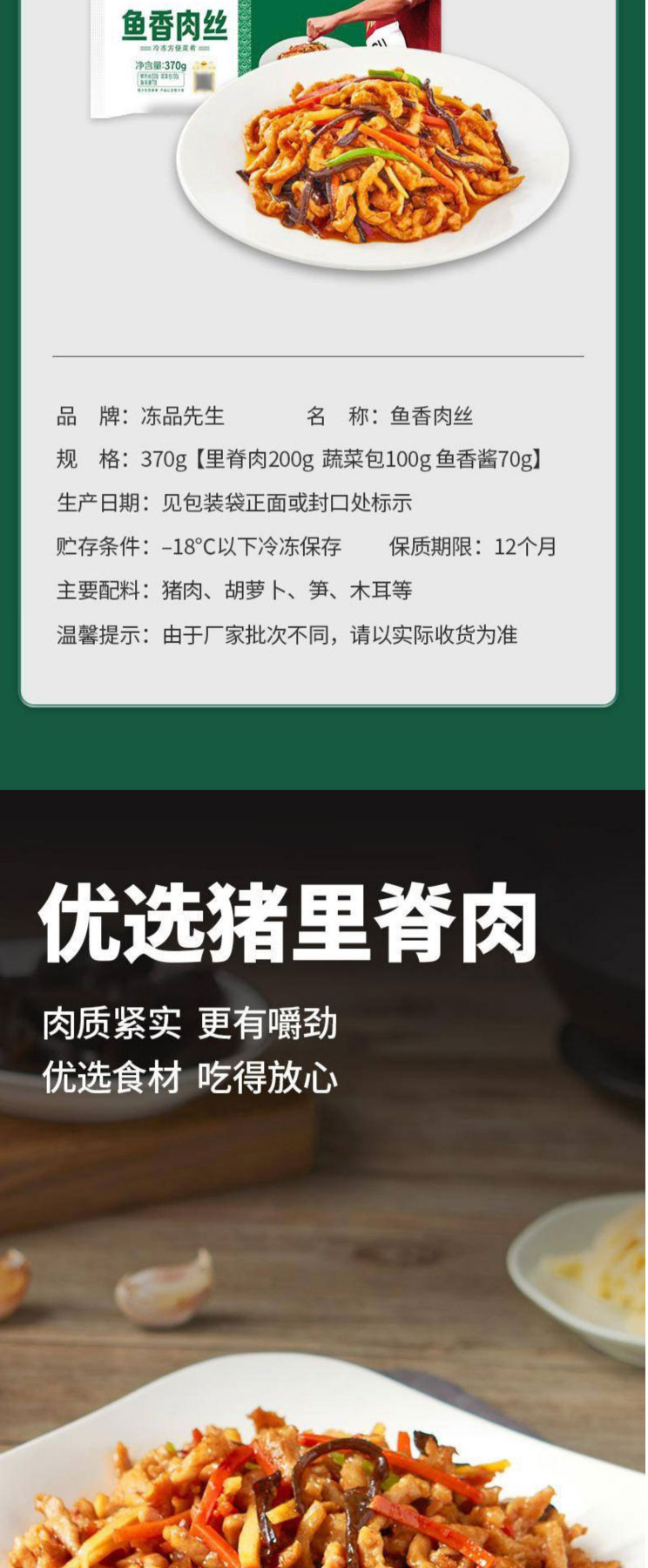 冻品先生鱼香肉丝370g