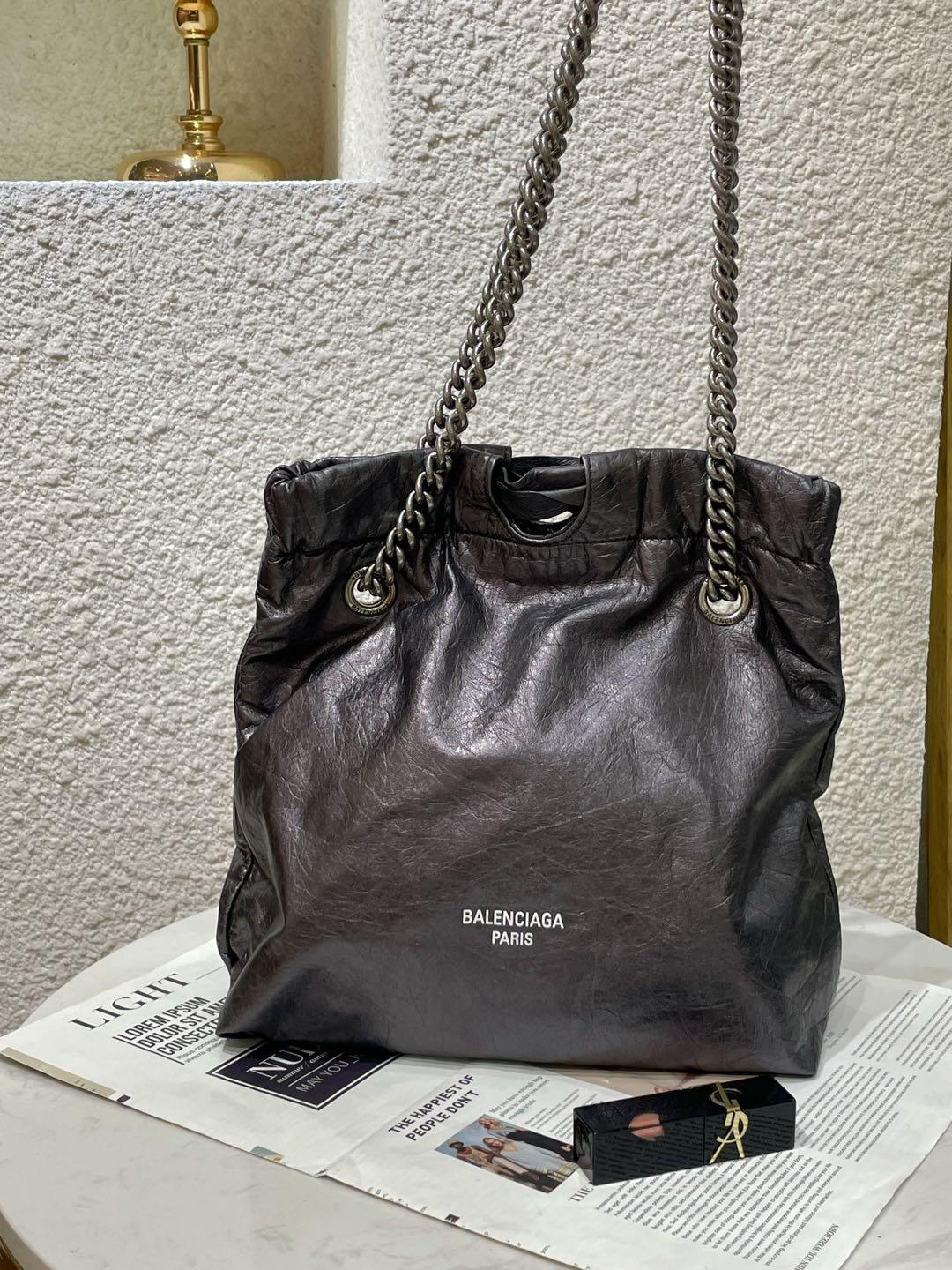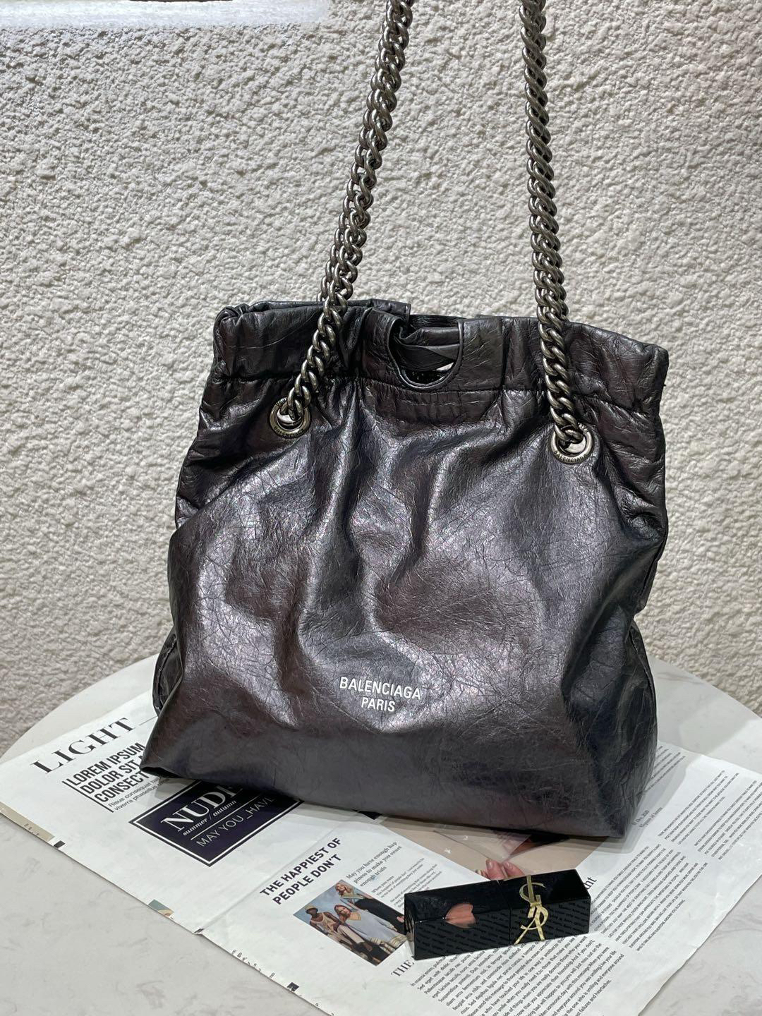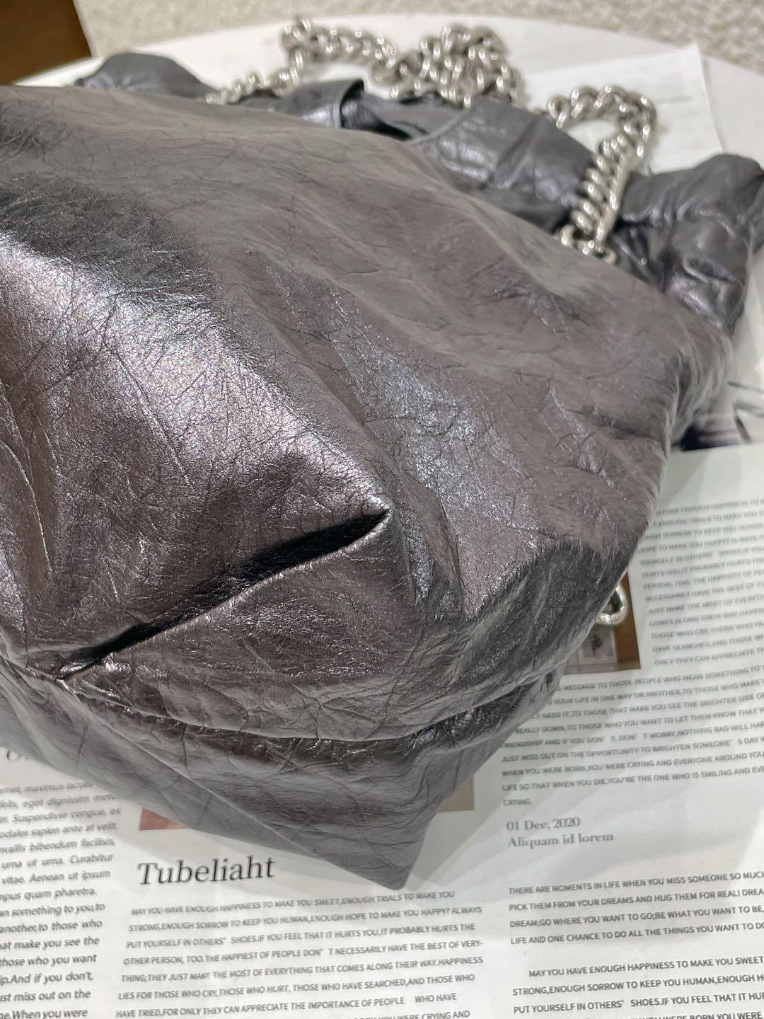 【商品詳情】正品二手 巴黎世家 23春款 crush 灰银 小号 垃圾袋🥑97新 26x26 配件:防尘袋。自重轻随性 慵懒