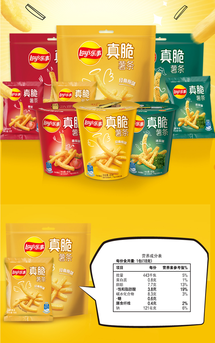 乐事(Lay’s)零食 休闲食品 真脆薯条 原味 90g 百事食品