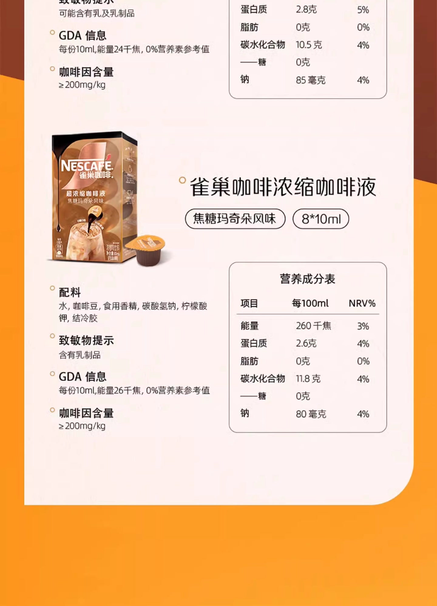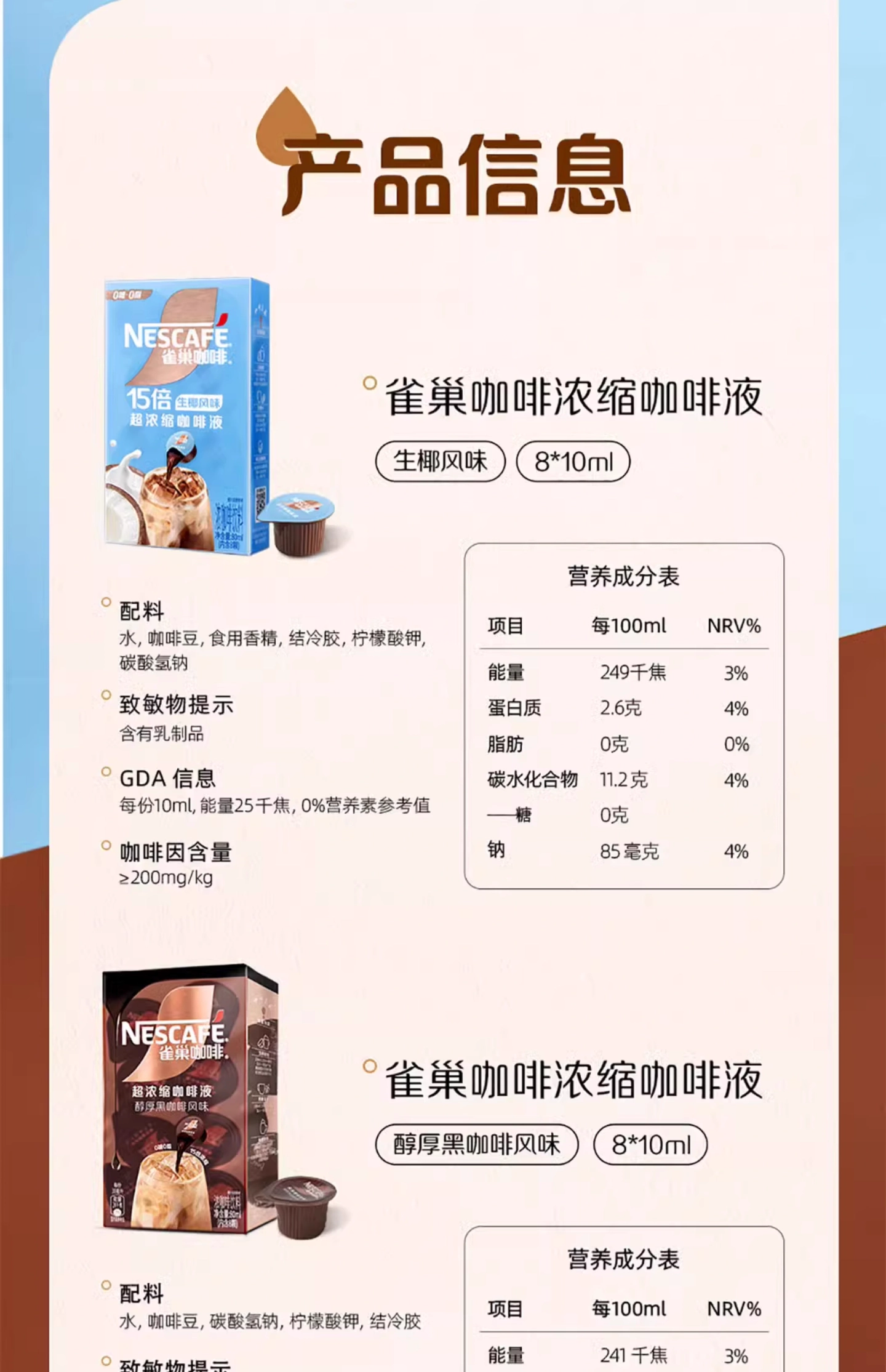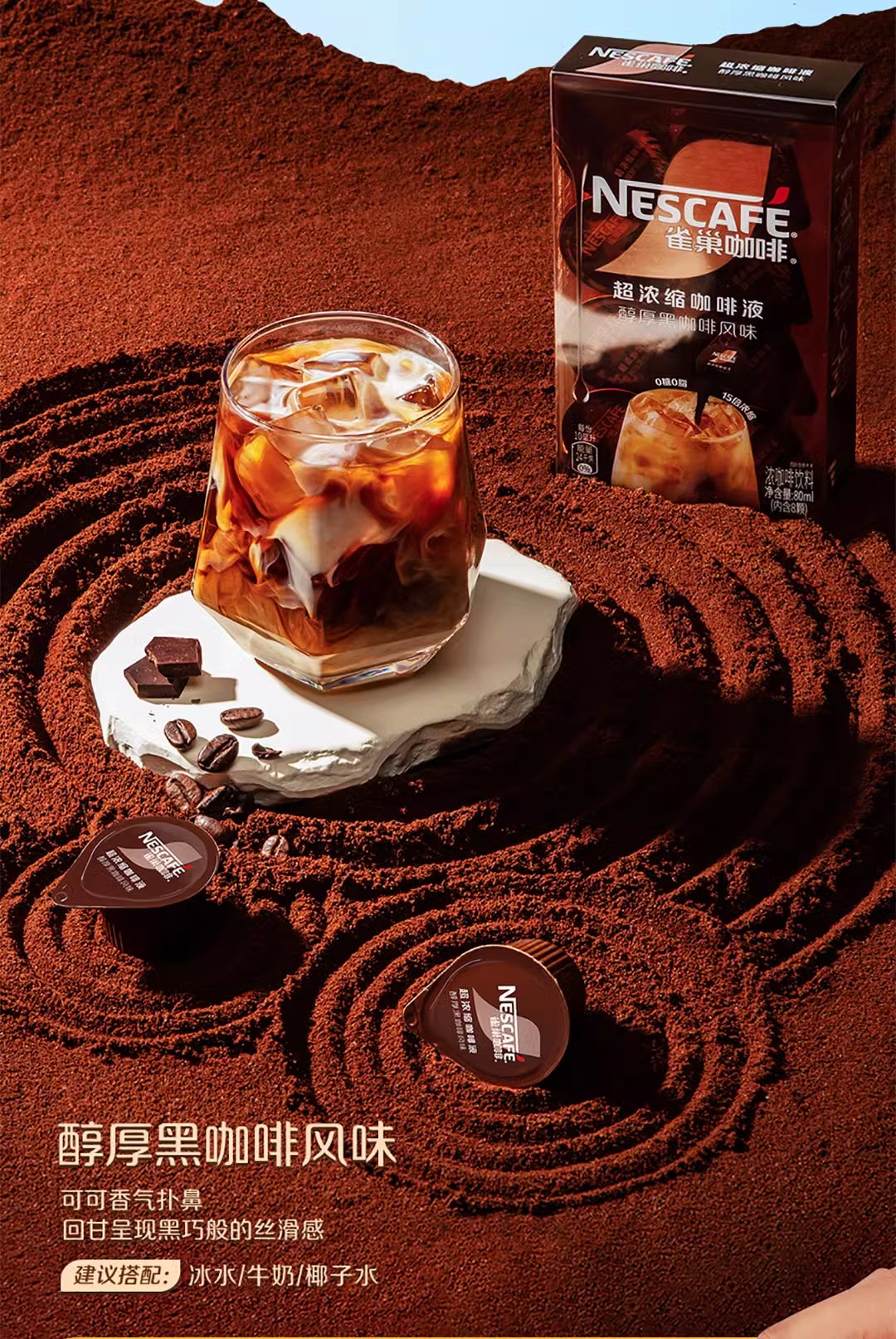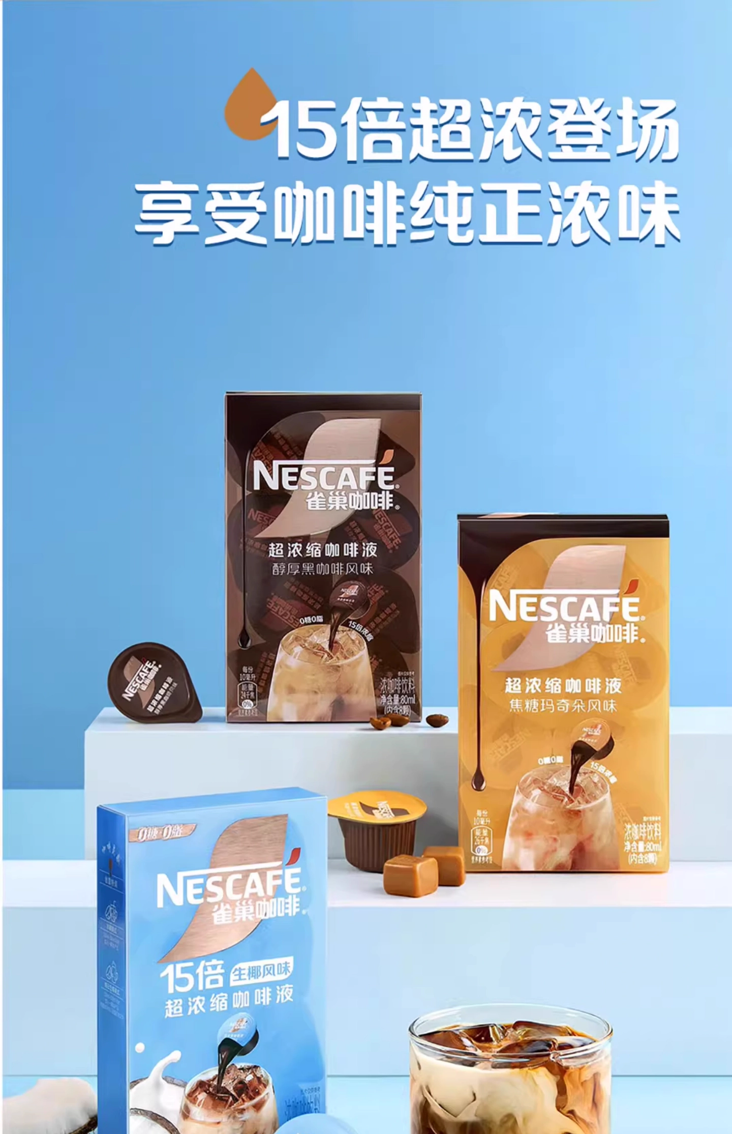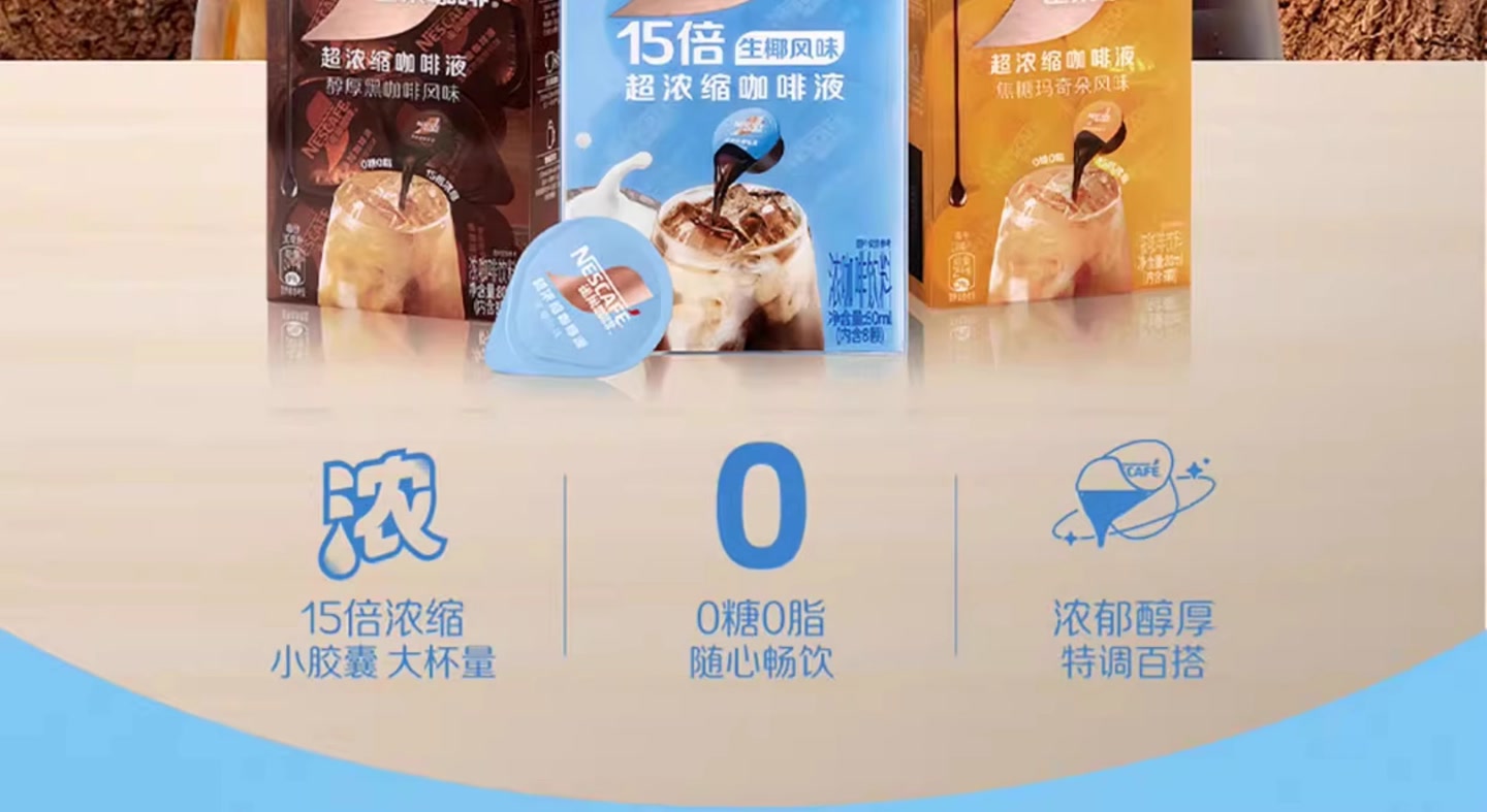 浓缩咖啡液醇厚黑咖啡/焦糖玛奇朵/生椰风味拿铁速溶美式80ml