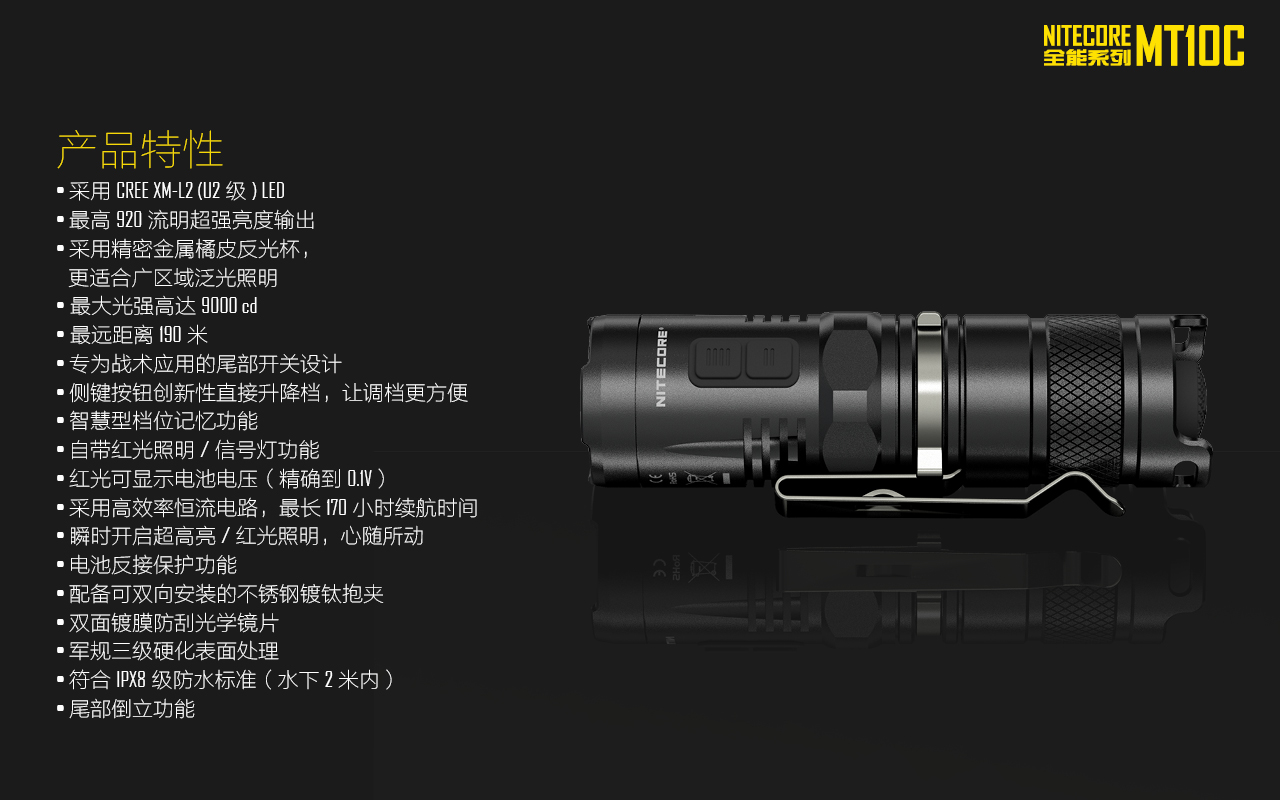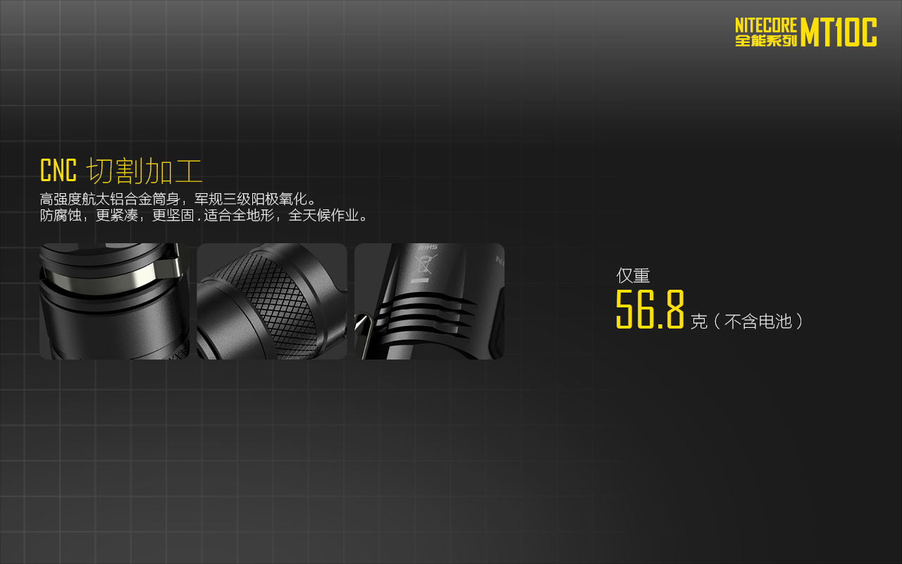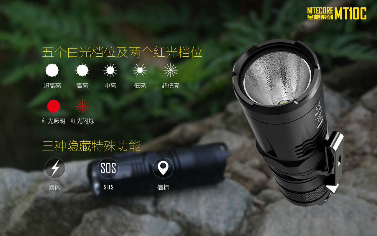 NITECORE奈特科尔MT10C小巧EDC战术头盔手电筒