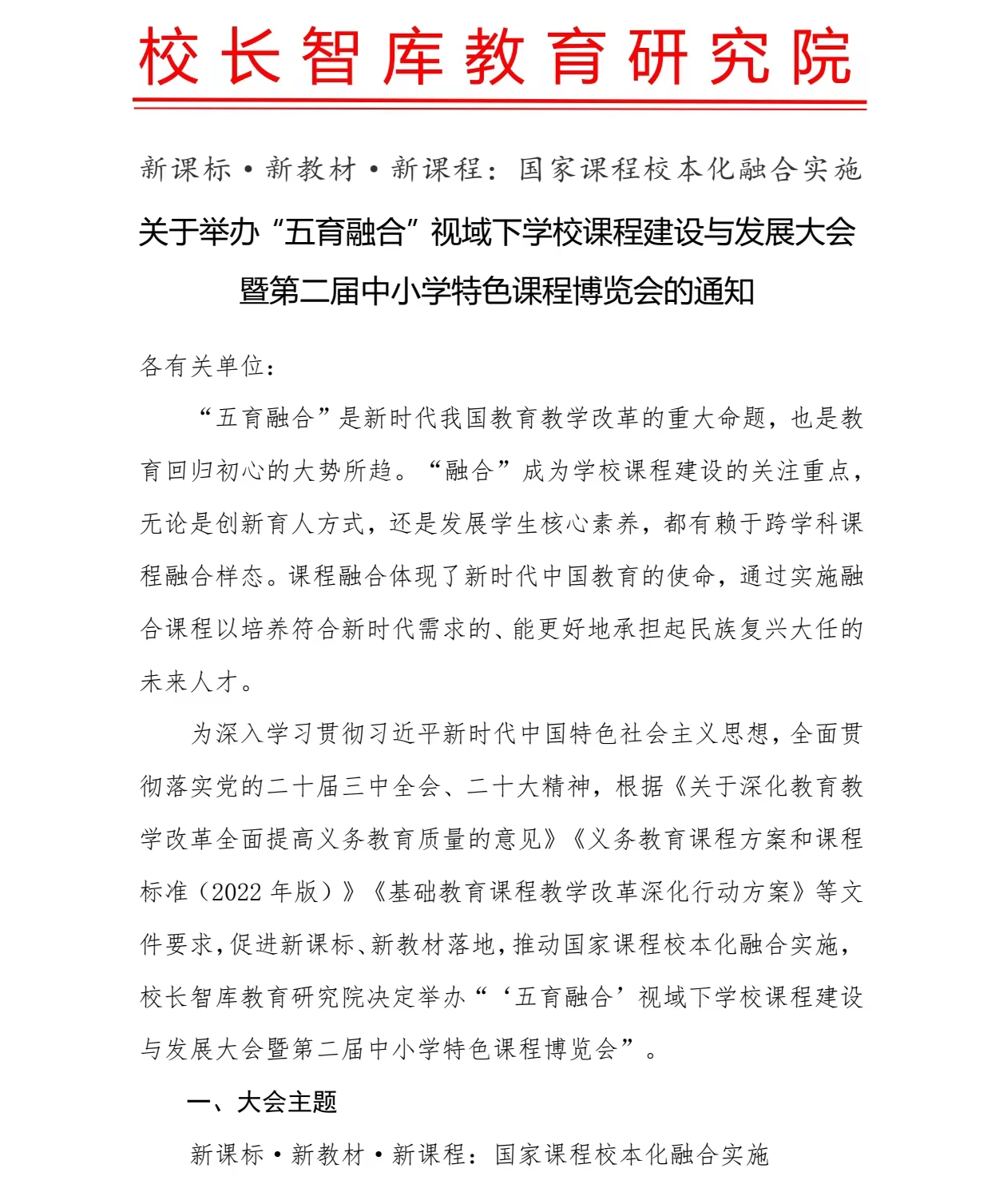 2024【线上学习资源包】 “五育融合”视域下学校课程建设与发展大会暨第二届中小学特色课程博览会 有效期1年 不限次数回看