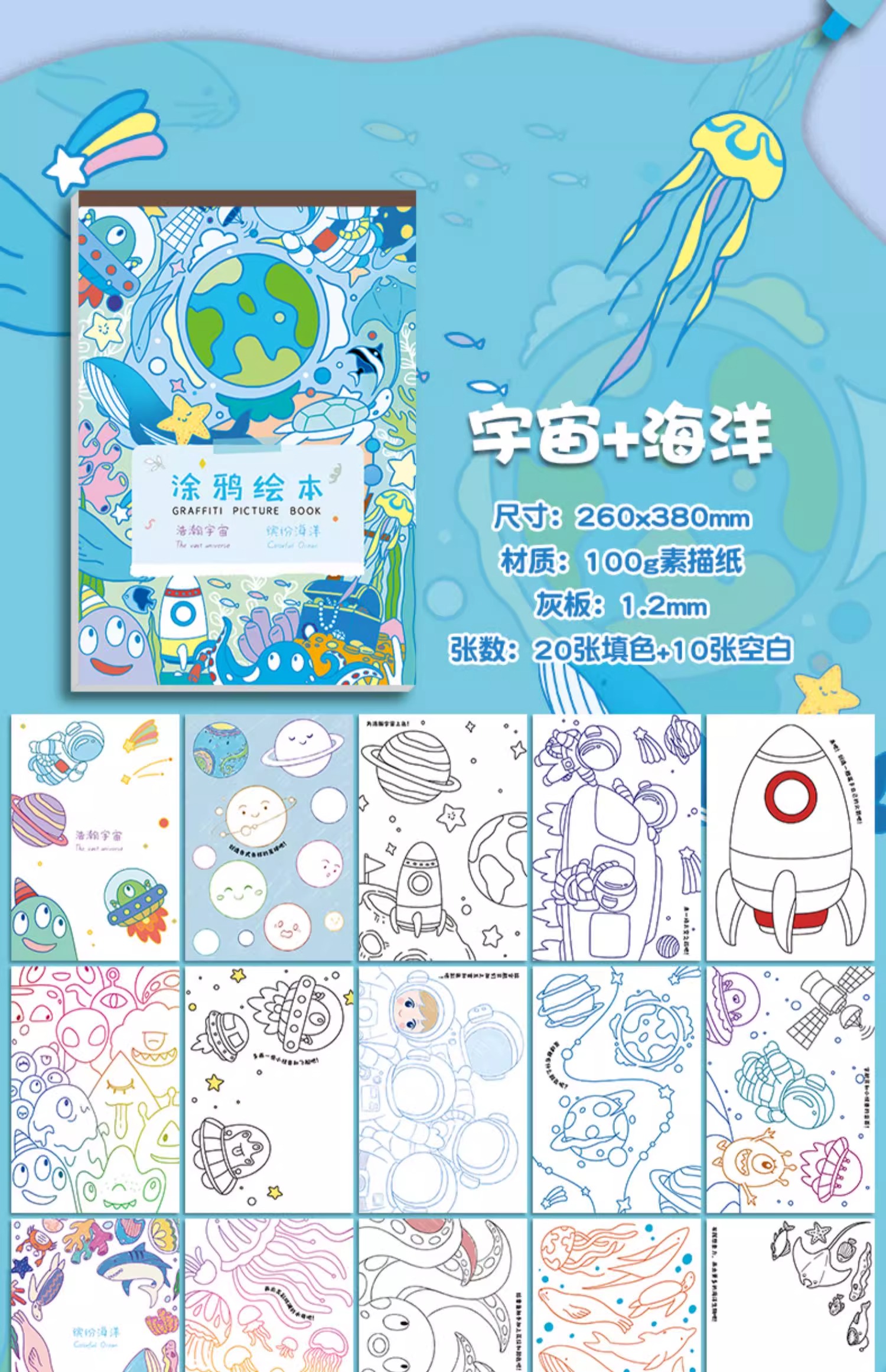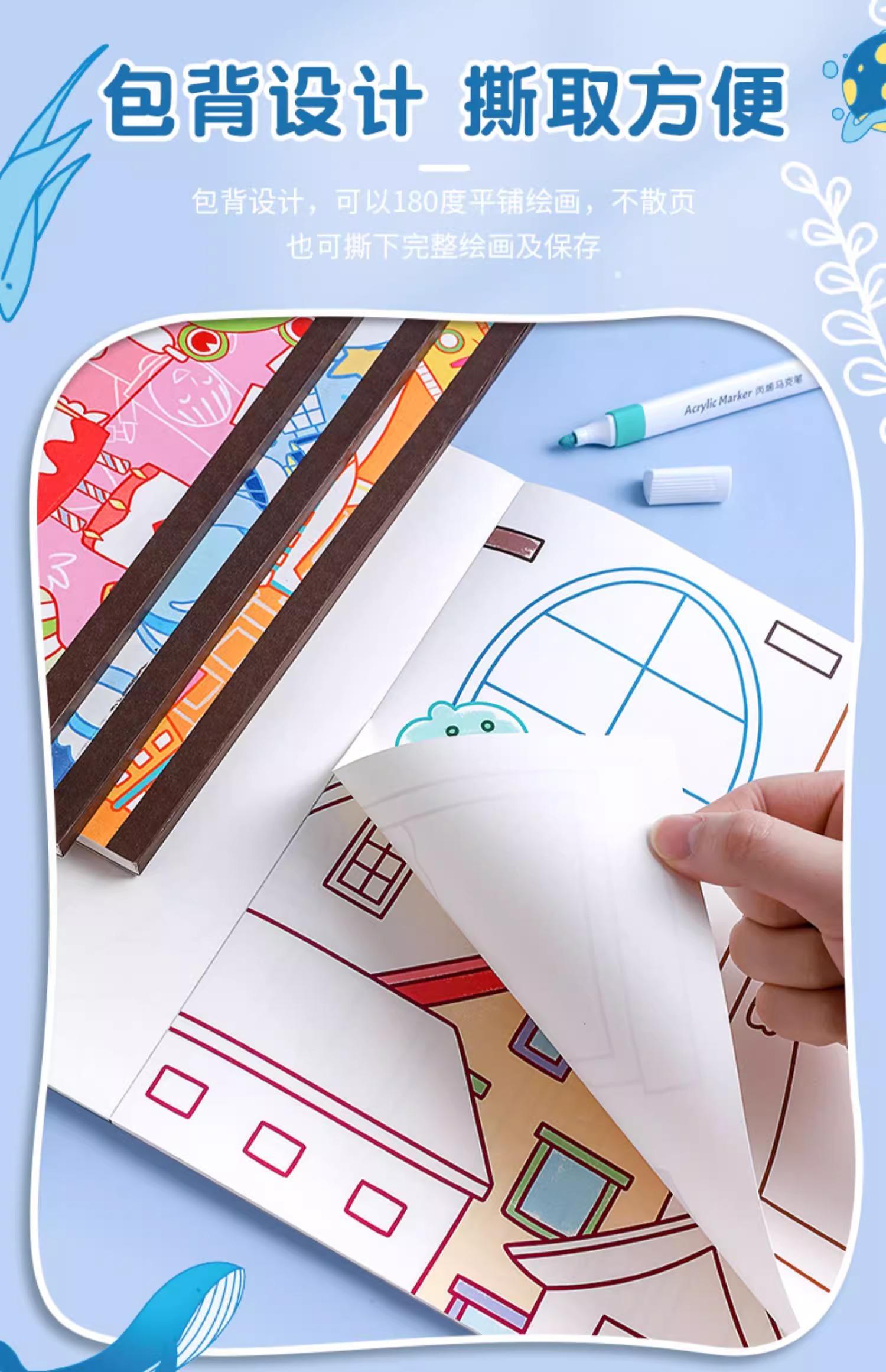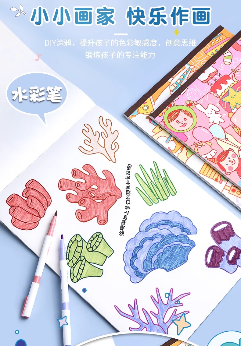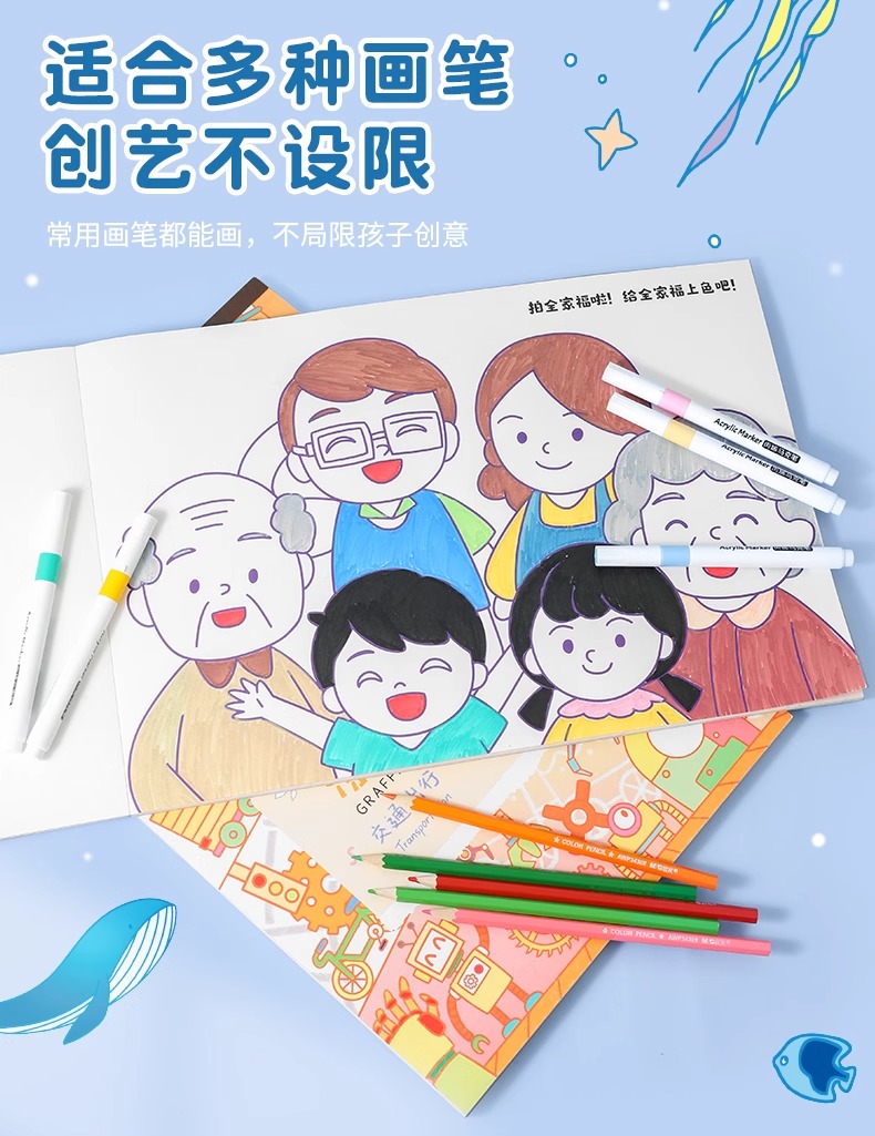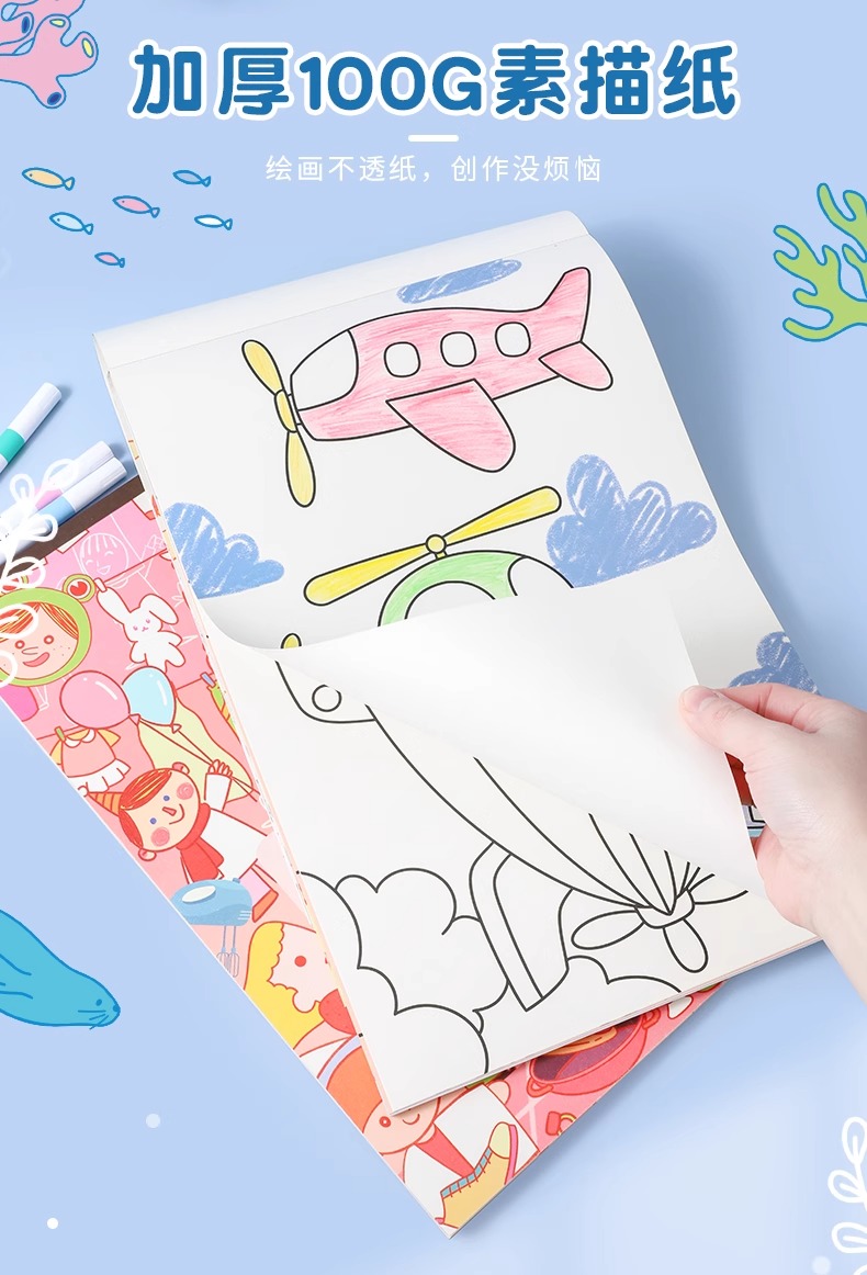 开学季福利!【激发创作兴趣】超大本8K2本装SENMU儿童涂色本图画本小学生马克笔涂色本趣味填色画本图色本幼儿园涂色纸填色涂鸦本涂鸦空白绘本册水画本