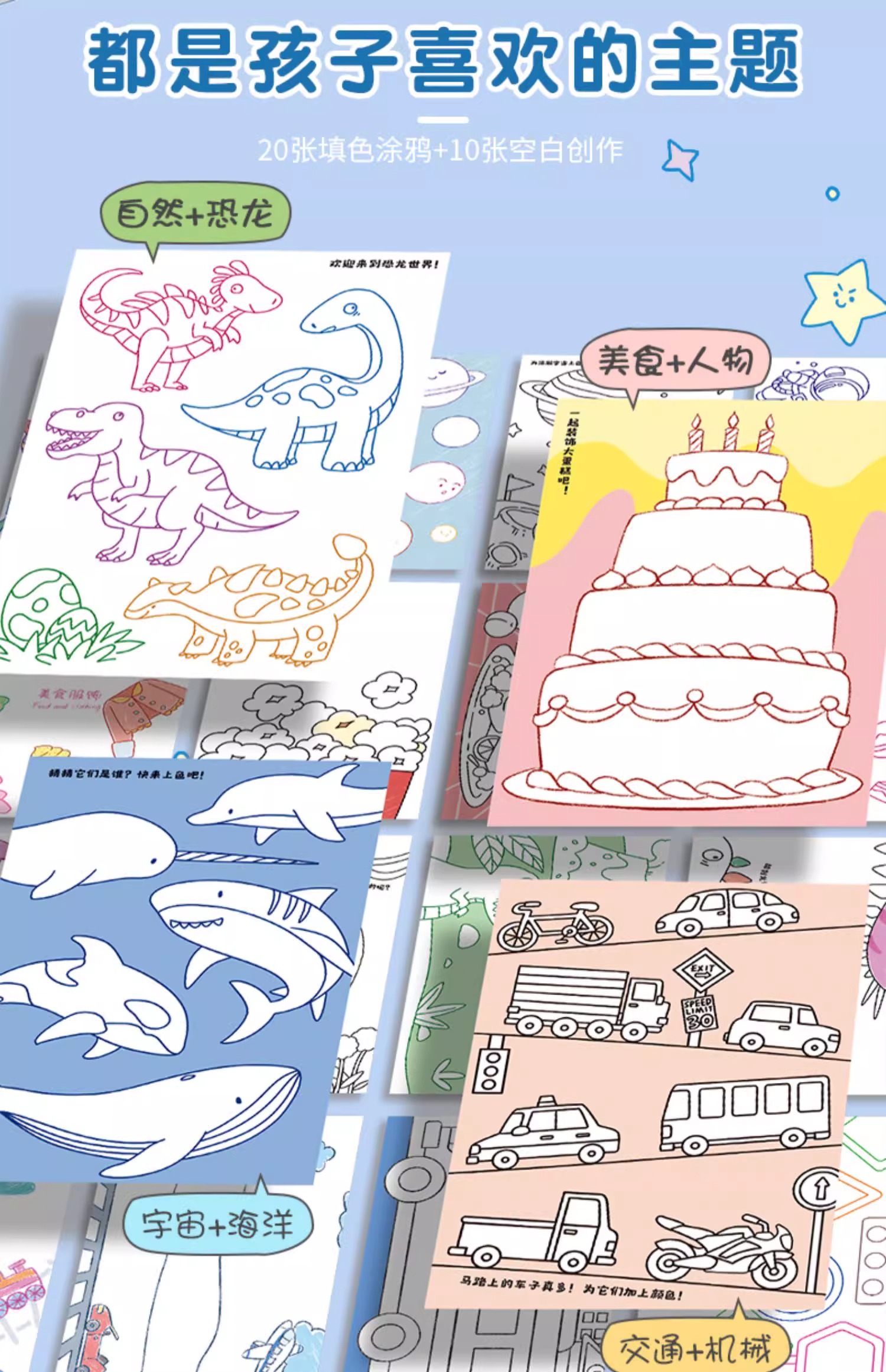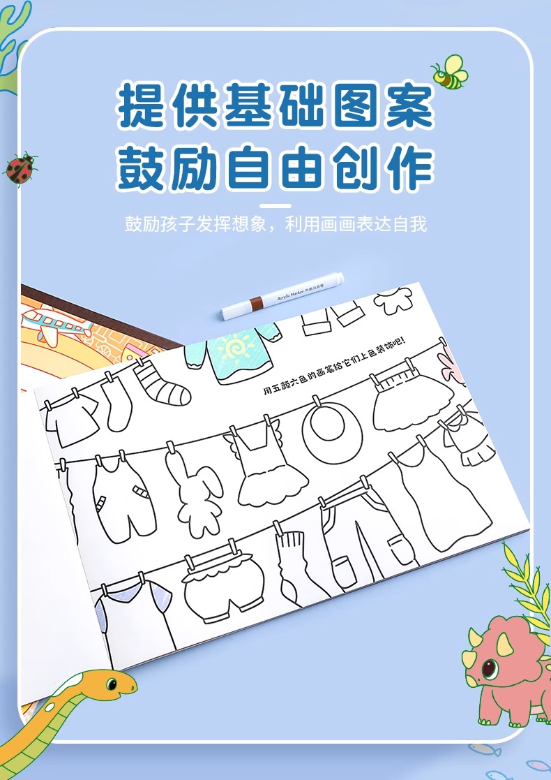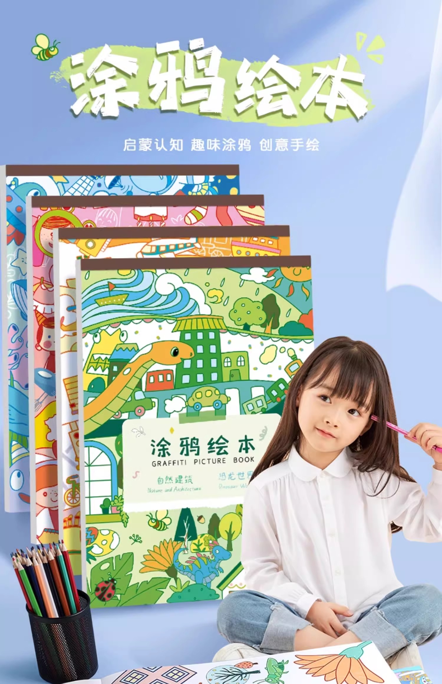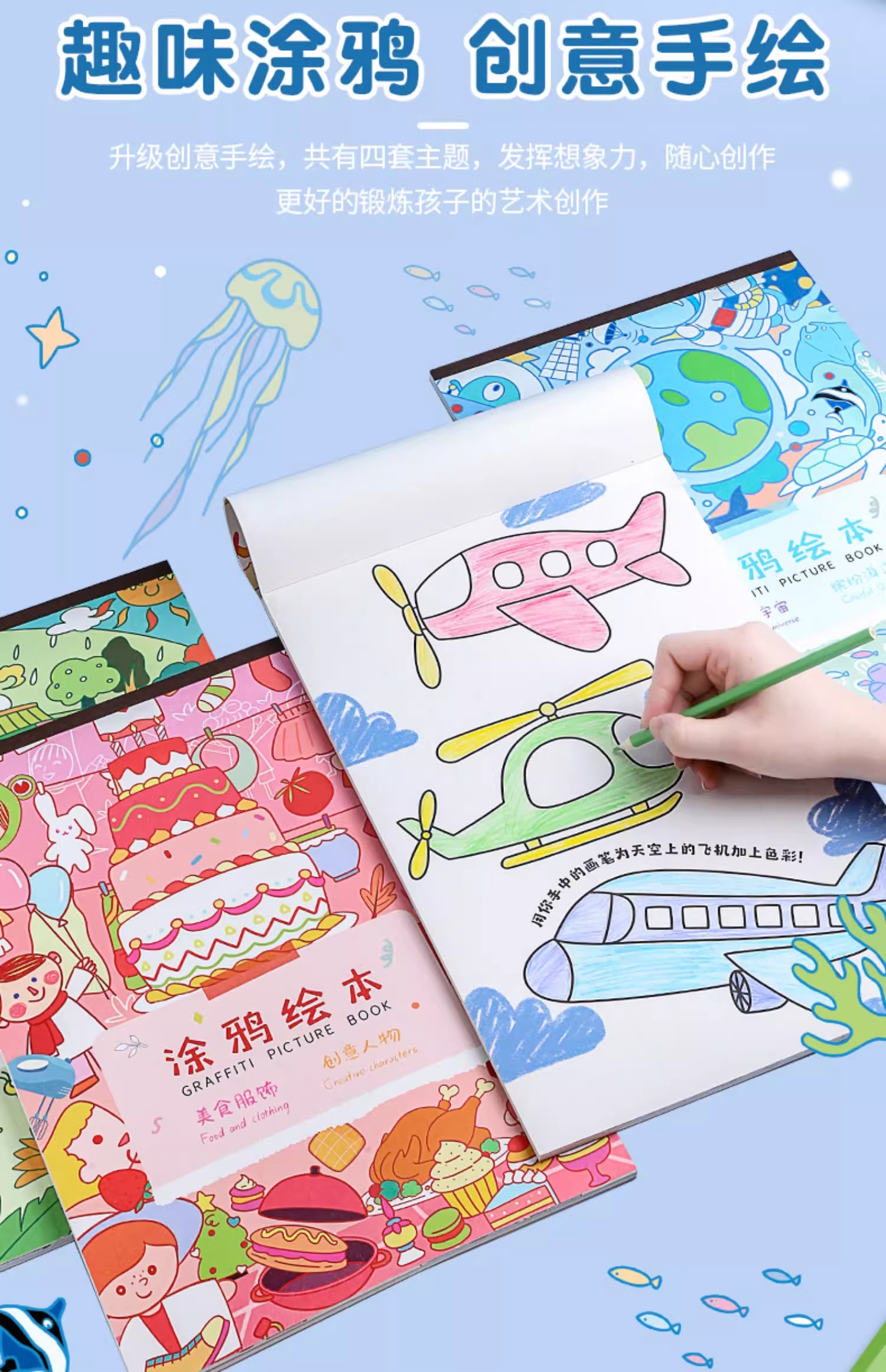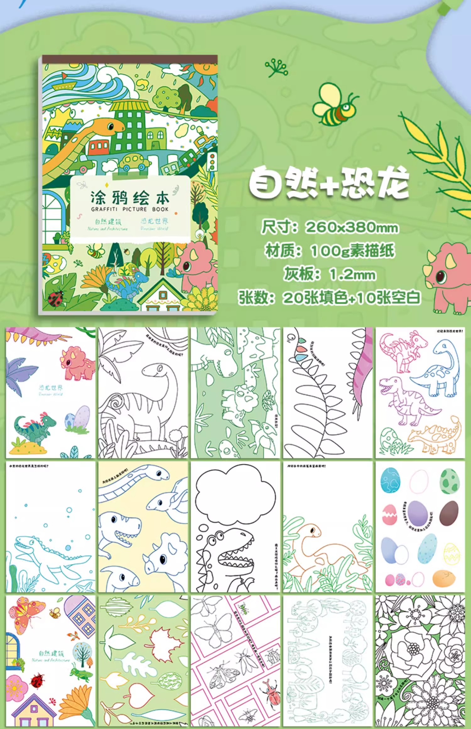 开学季福利!【激发创作兴趣】超大本8K2本装SENMU儿童涂色本图画本小学生马克笔涂色本趣味填色画本图色本幼儿园涂色纸填色涂鸦本涂鸦空白绘本册水画本