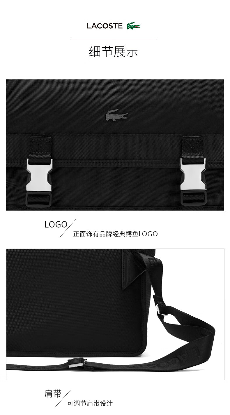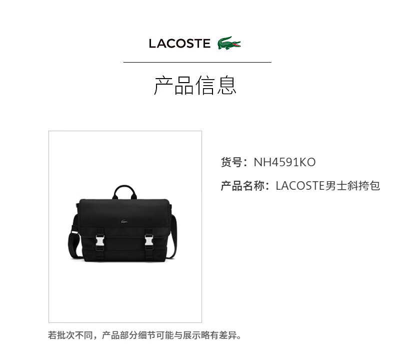 【海南专供价】Lacoste法国鳄鱼男士新款大容量斜挎包NH4591KO