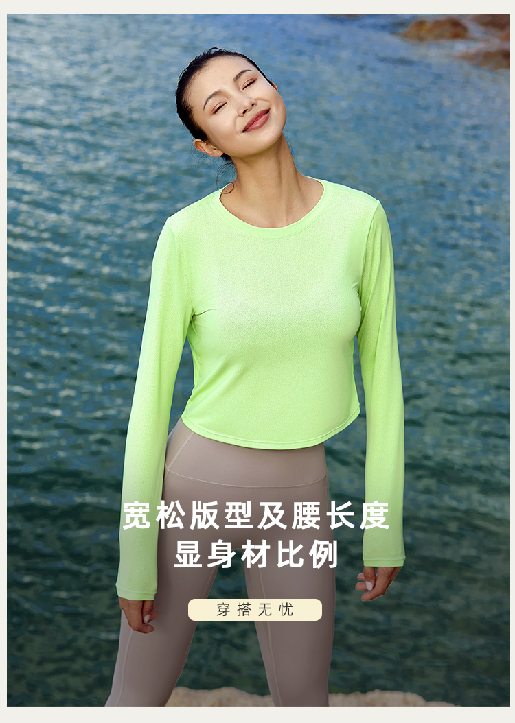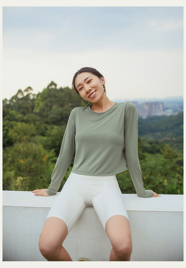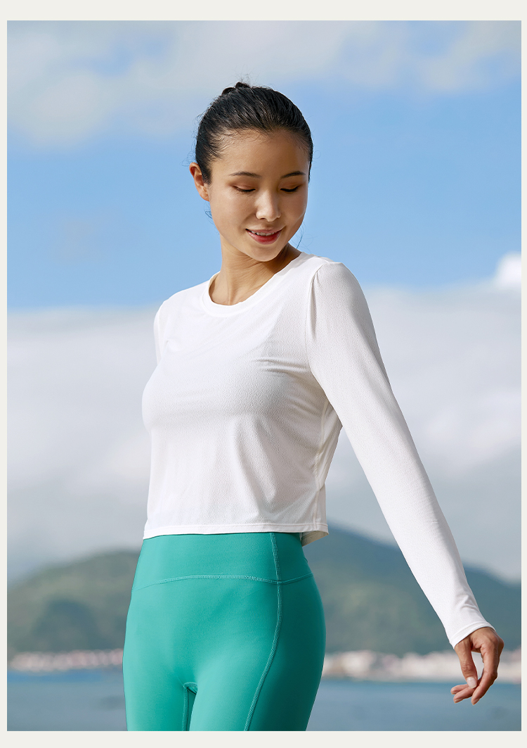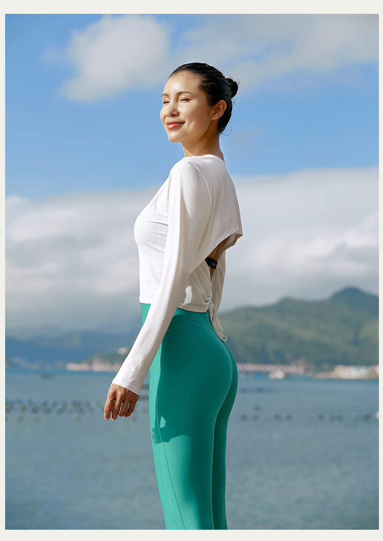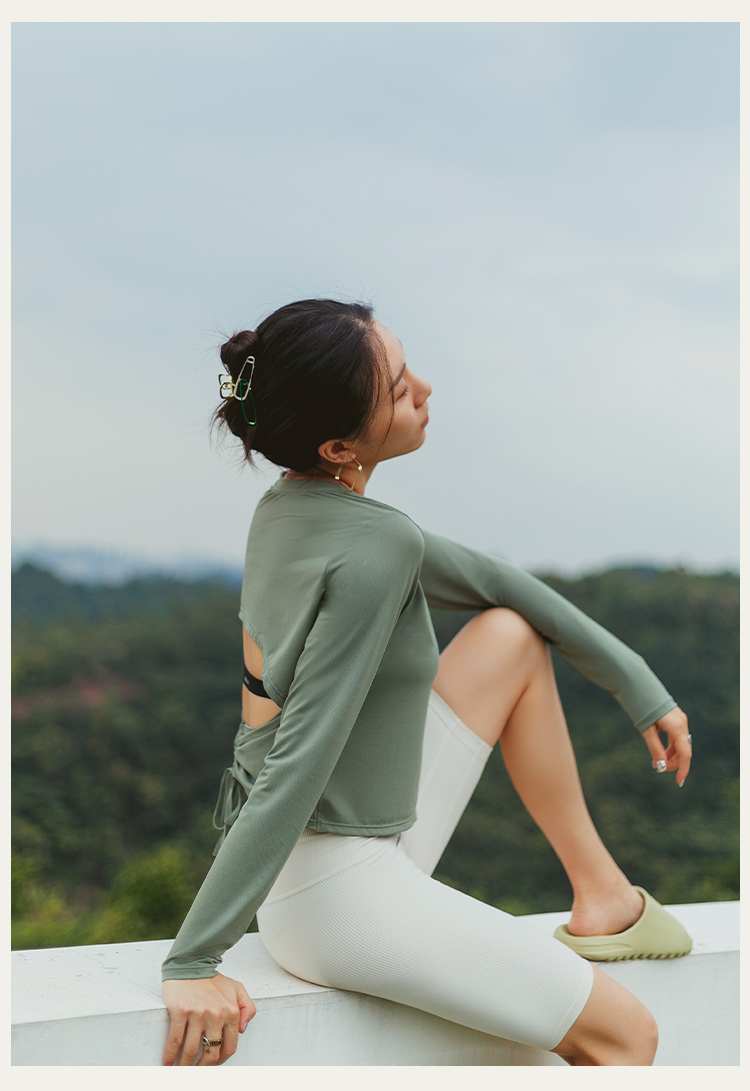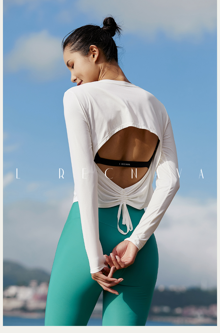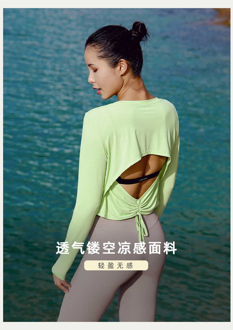 【凉感镂空】后背抽绳露腰长袖上衣--不带胸垫
