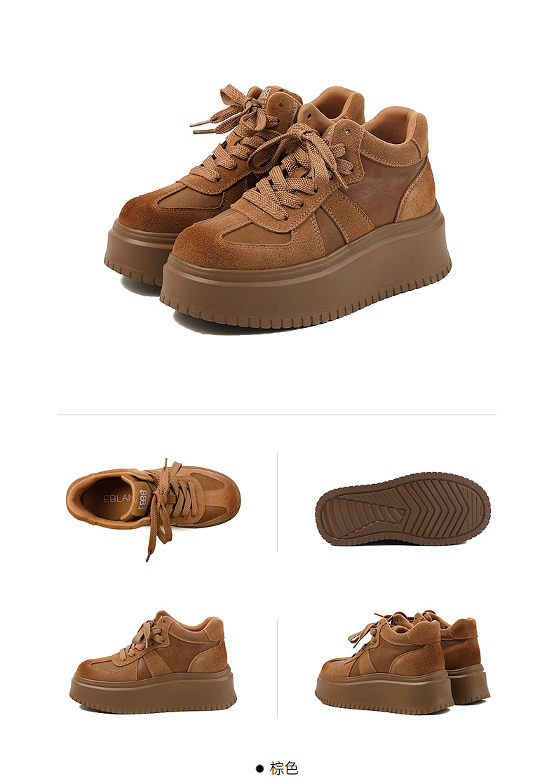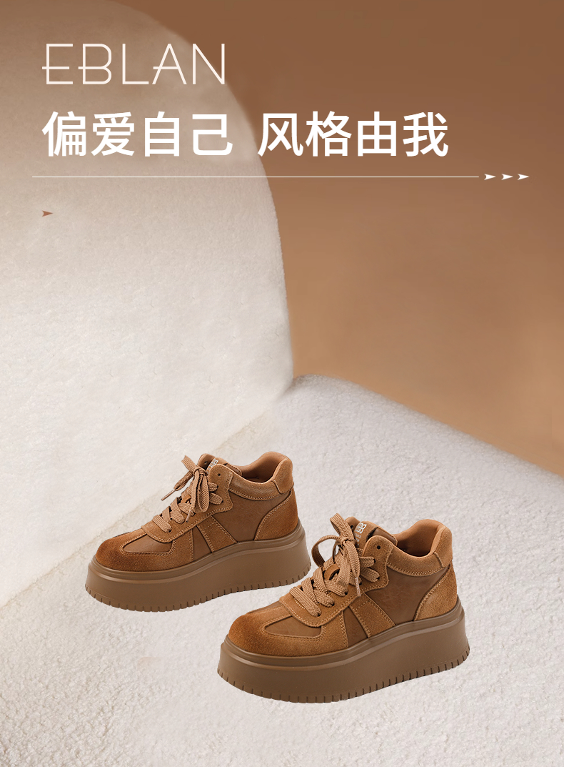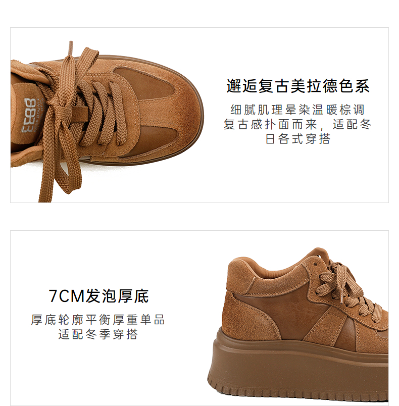 伊伴冬季复古美拉德色系增高德训鞋休闲运动靴B25513015