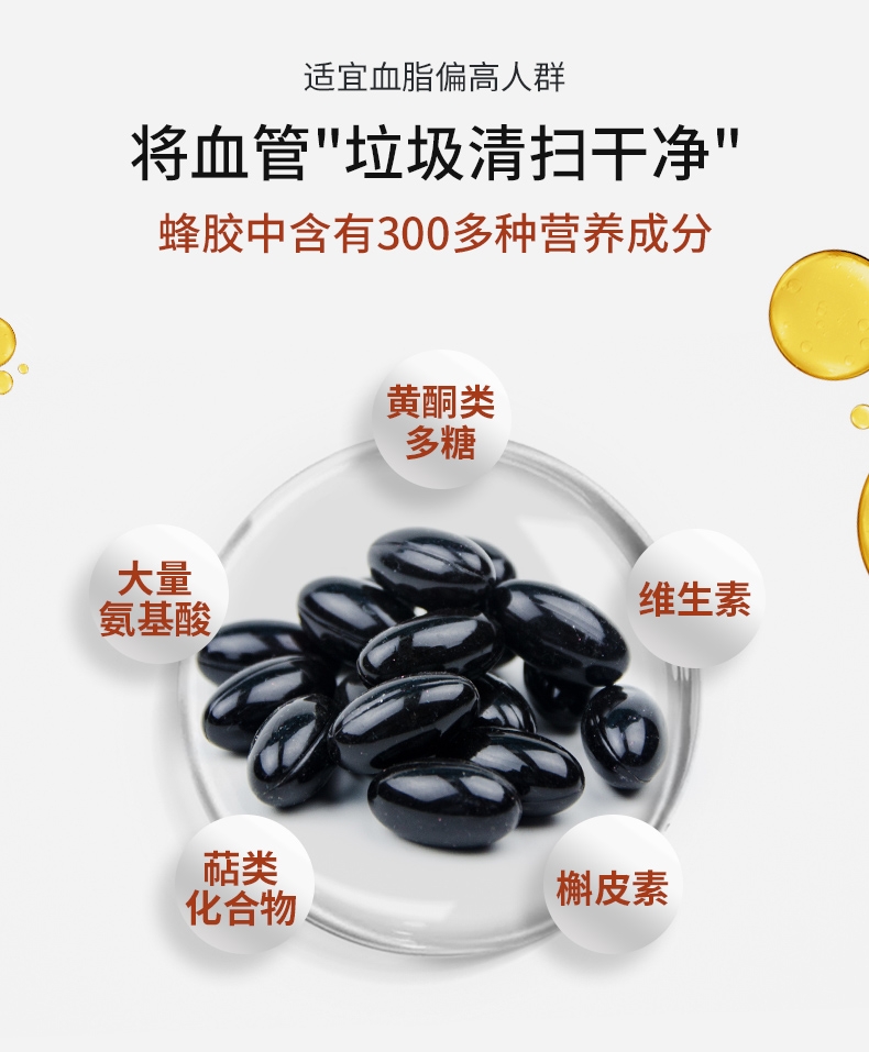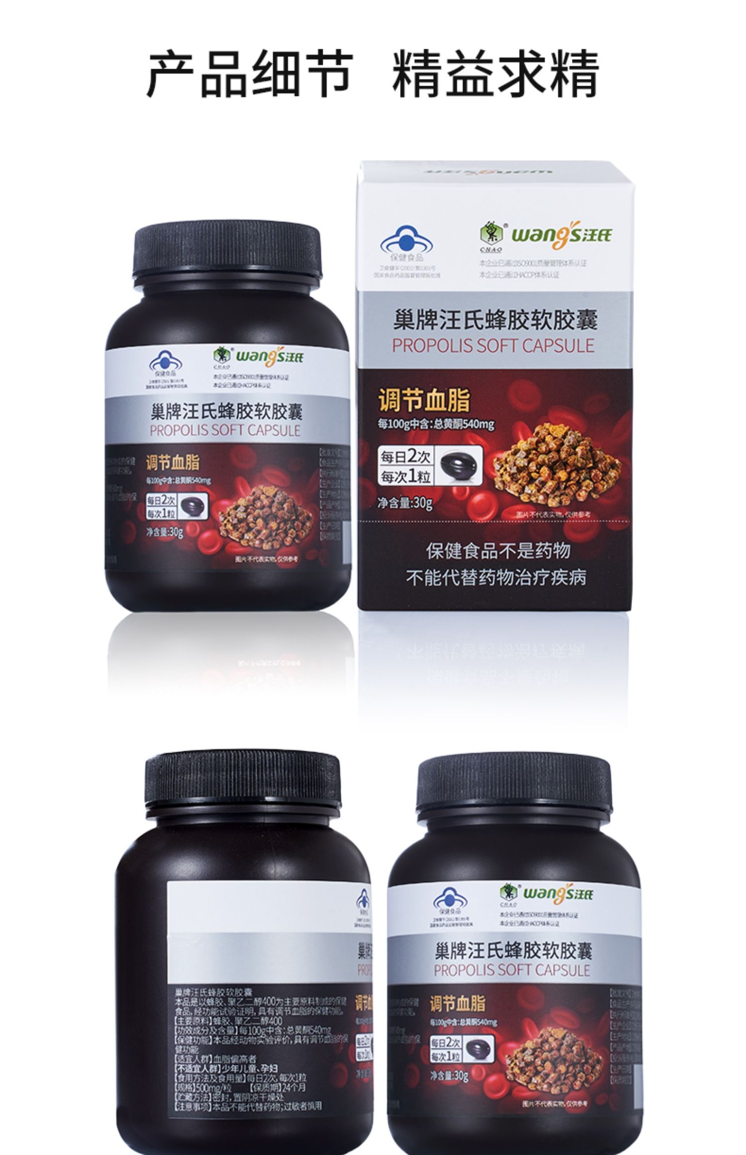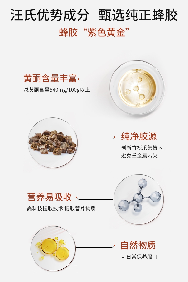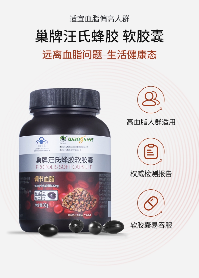 【汪氏】紫银蜂胶巢牌汪氏蜂胶软胶囊(1盒装)500mg/粒*60粒/30g(商城自建)