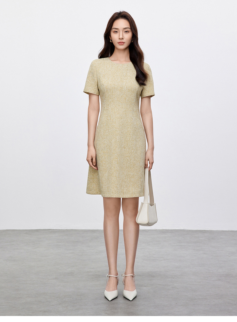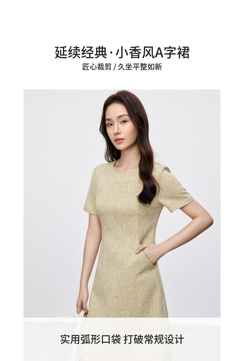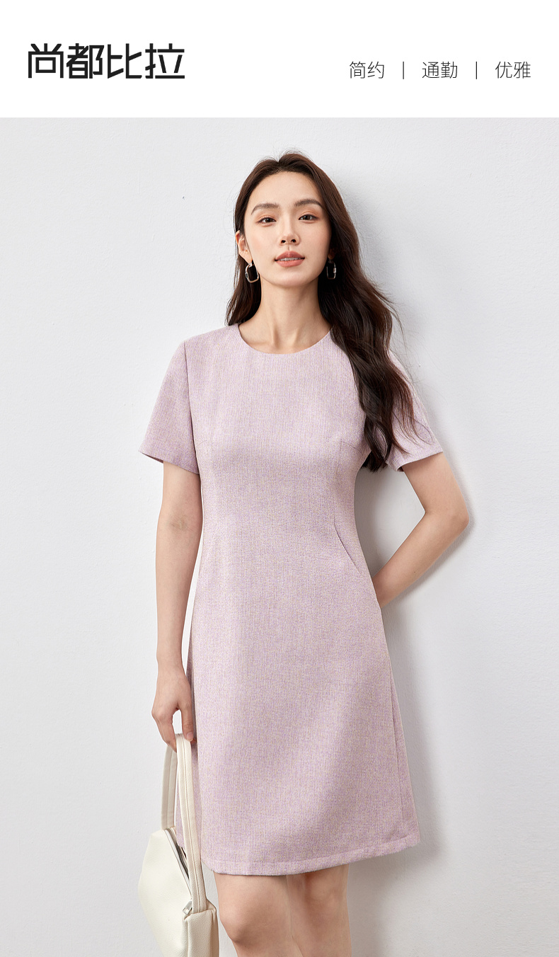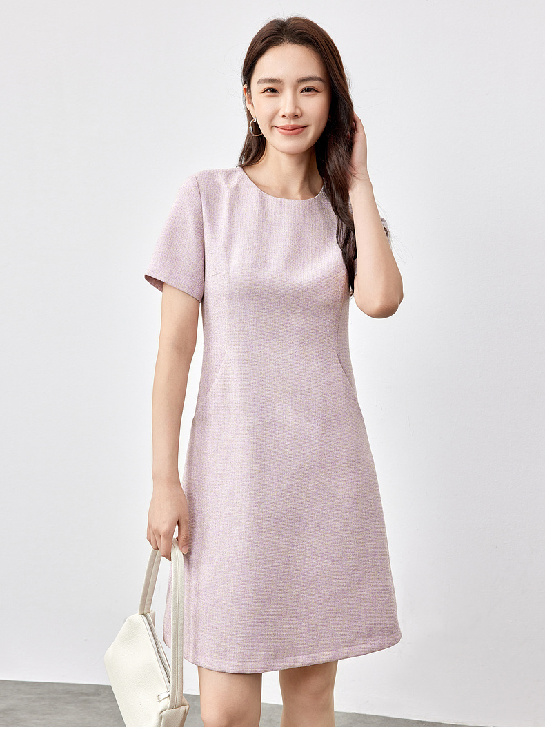 【内购】优雅通勤圆领弧形口袋显瘦短袖A字连衣裙-151L58250