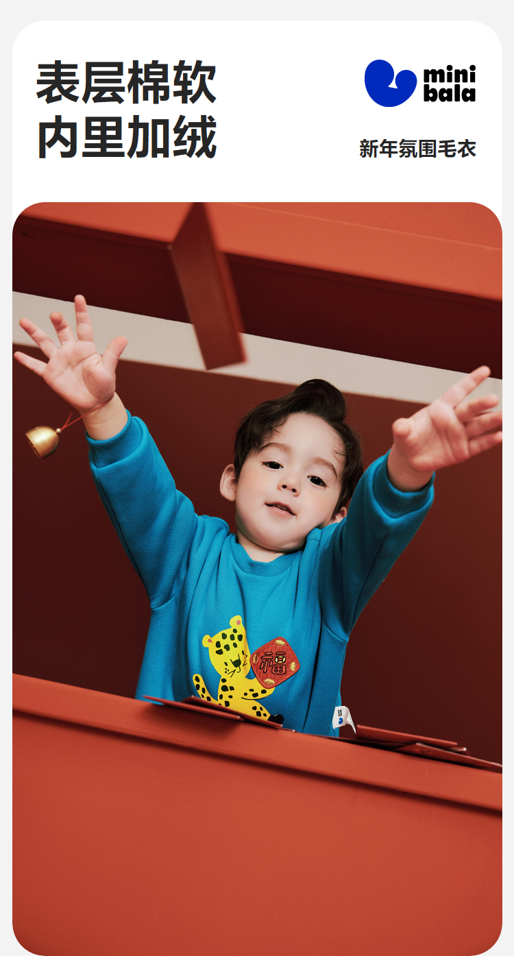 迷你巴拉巴拉男女童宝宝卫衣内里加绒萌趣2025冬新年不易变形上衣
