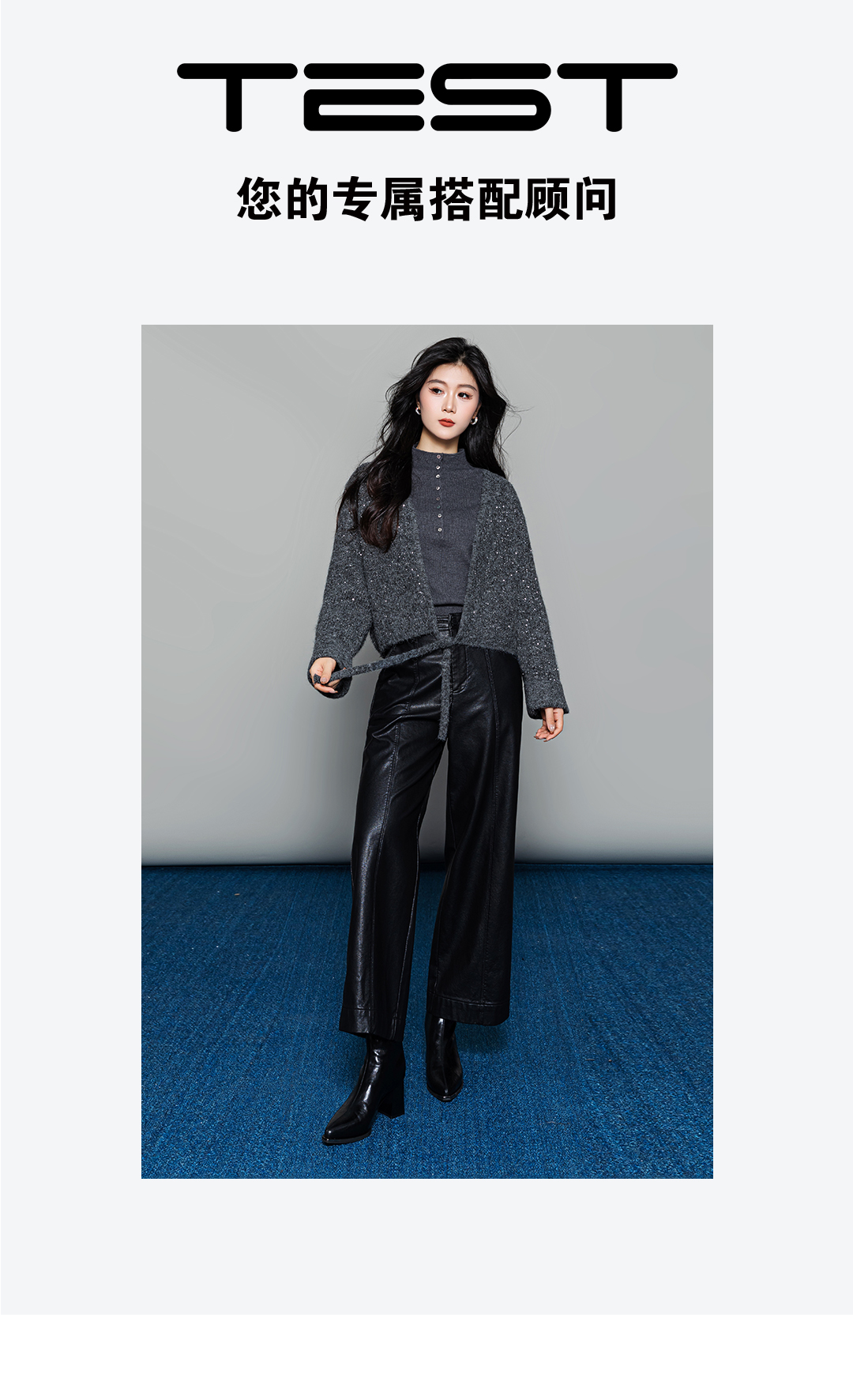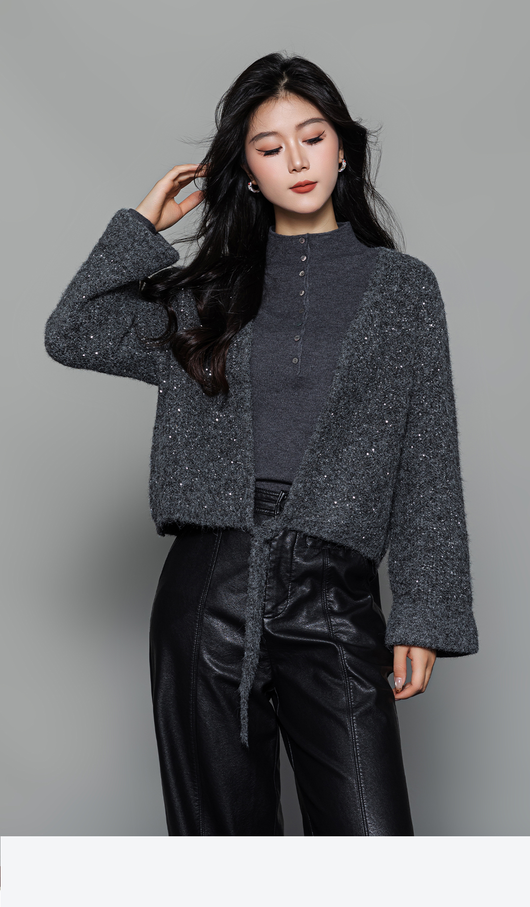 冬上新温柔气质吸睛短款系带灰色开衫2254097 商品图2
