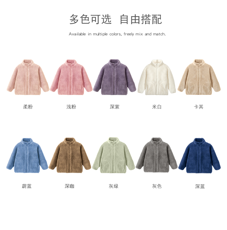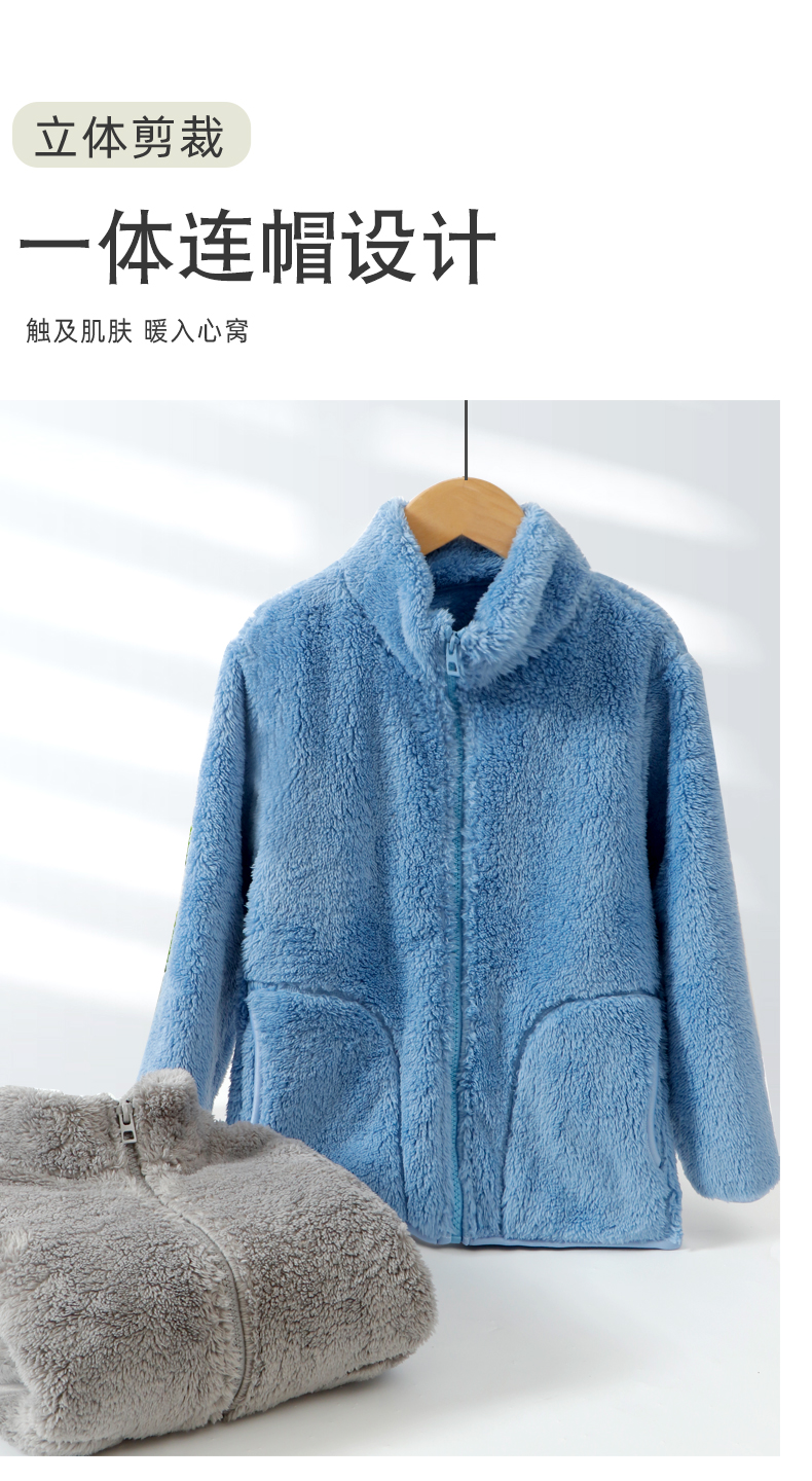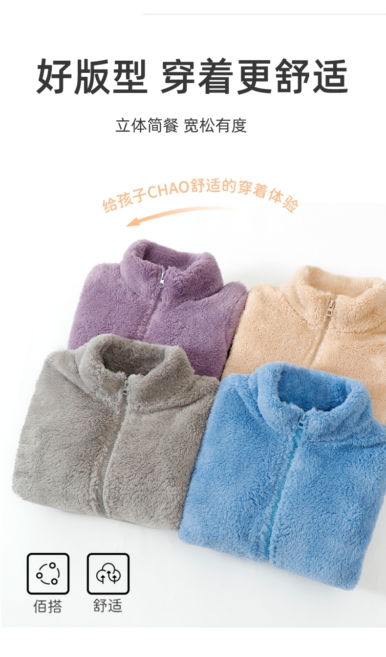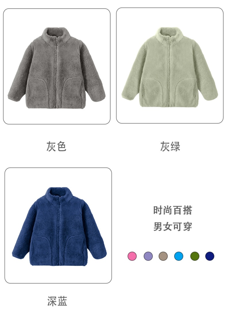 110-180可亲子舒棉绒羊羔绒温暖外套 拉链立领夹克衫保暖