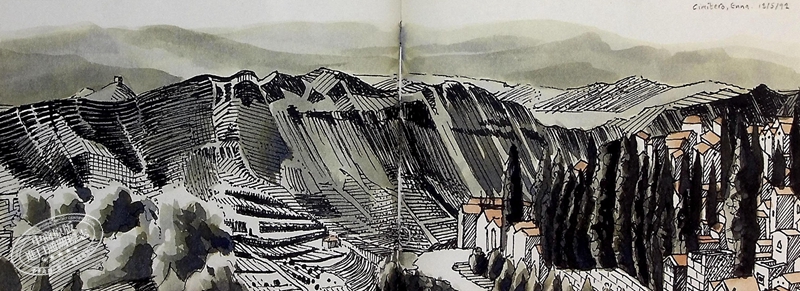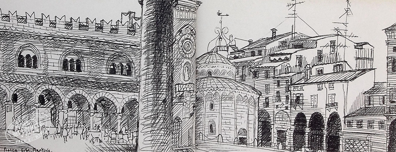 Italian cityscapes and landscapes rendered in pen, wash pencil and watercolor
