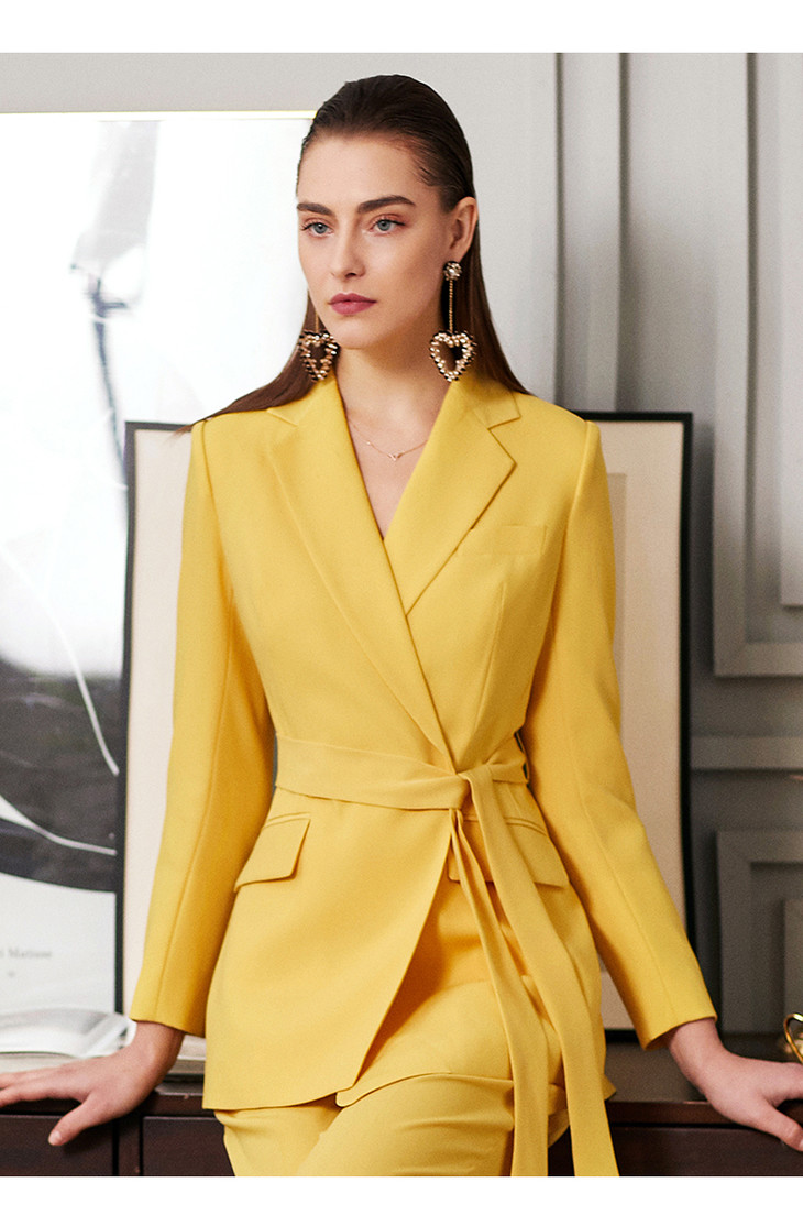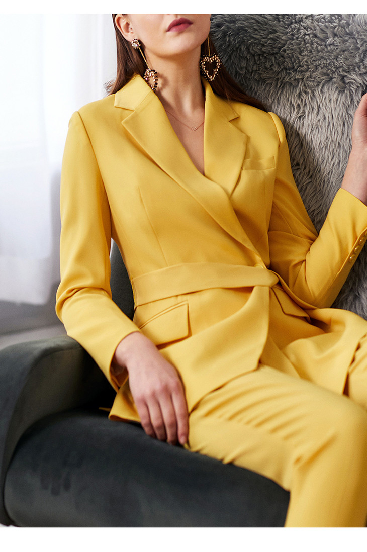IWY/新品时尚气质黄色西装套装修身显瘦OL职业女士休闲套装两件套CP9112