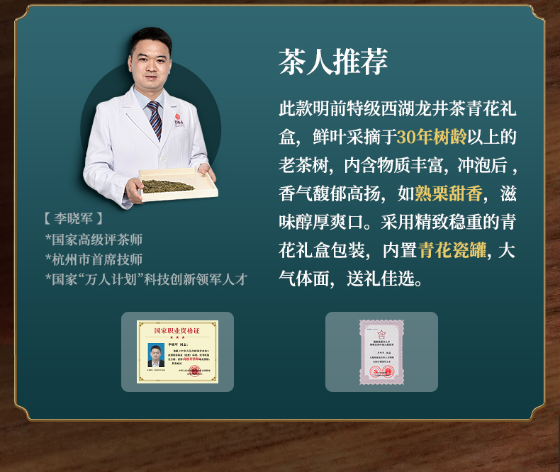 【新茶上市】艺福堂杭韵西湖龙井 2025新茶 明前特级 送礼 青花雅韵礼盒50g/盒EFU10+