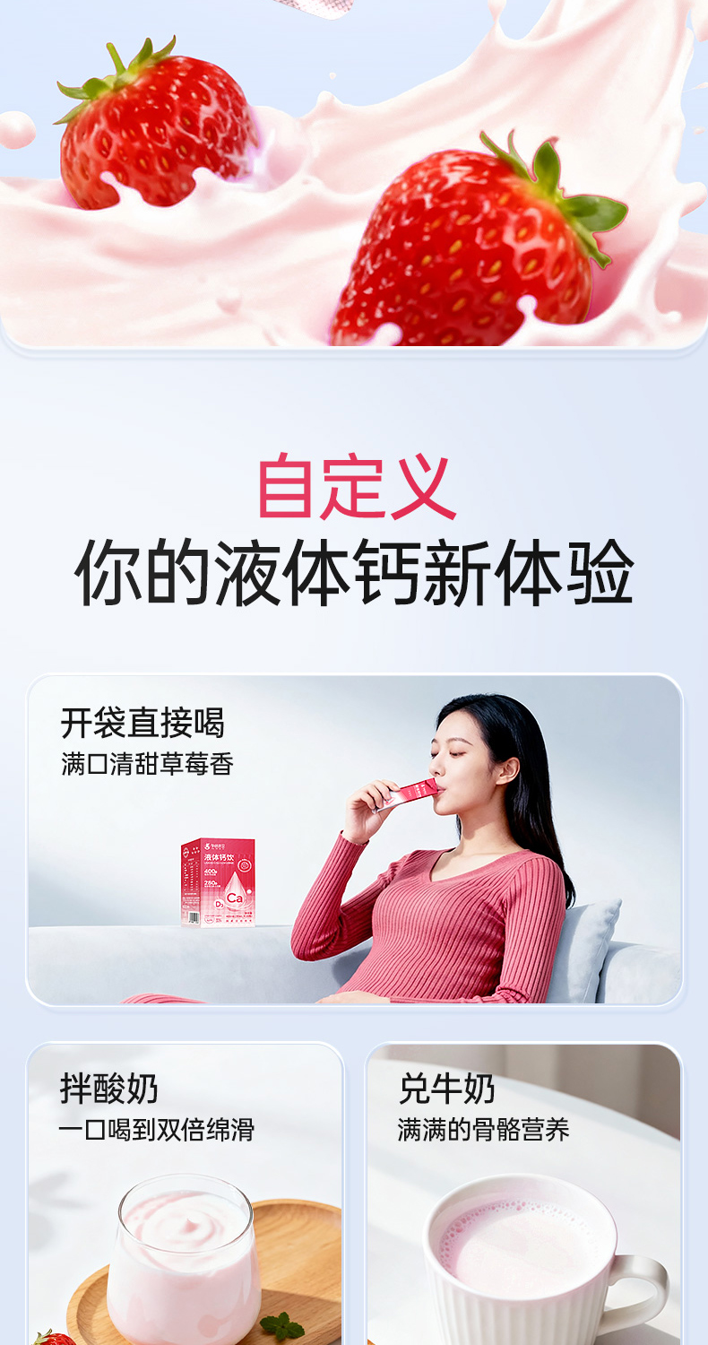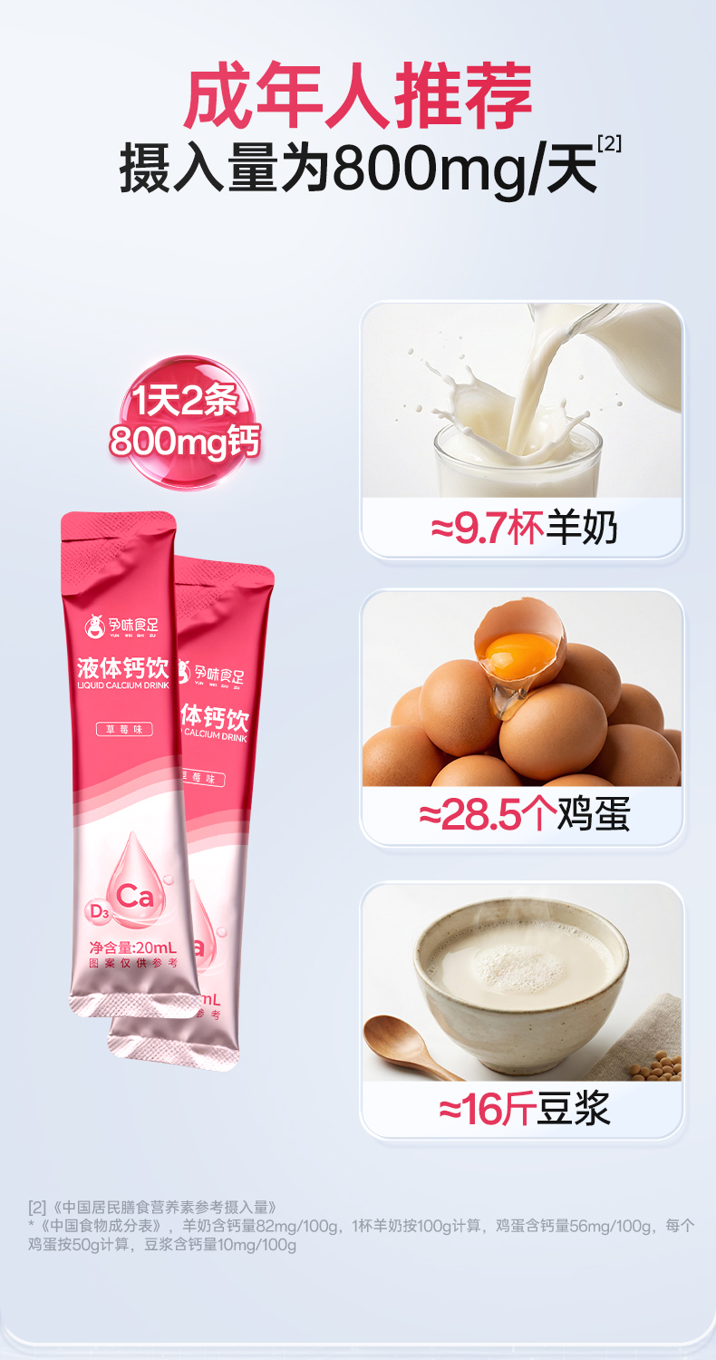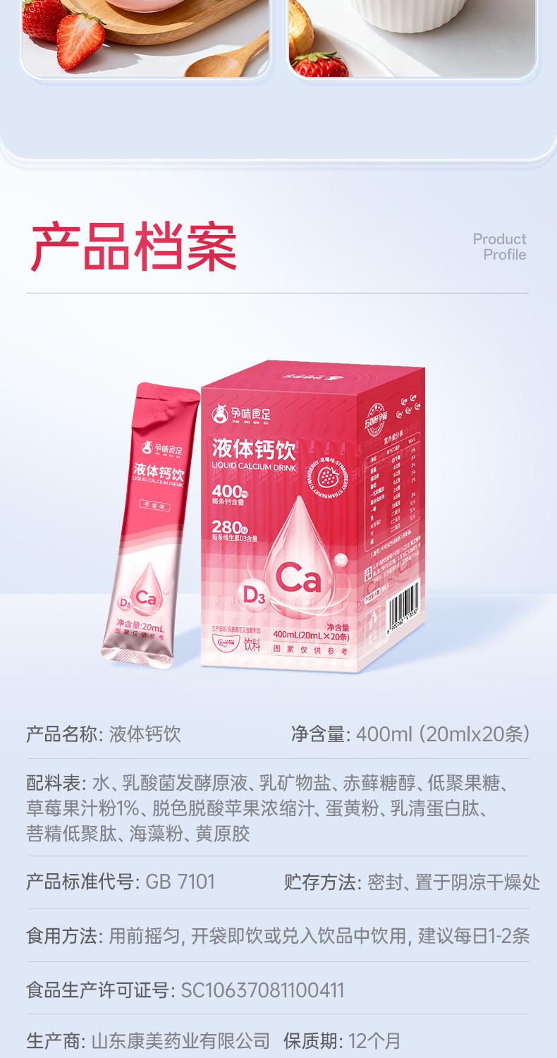 孕味食足液体钙饮 天然乳钙+海藻钙,双优质钙源,吸收率高达70%(优质钙源 + VD促吸收 + 水解蛋黄粉)三效科学配比 400ml/盒(20ml*20条)