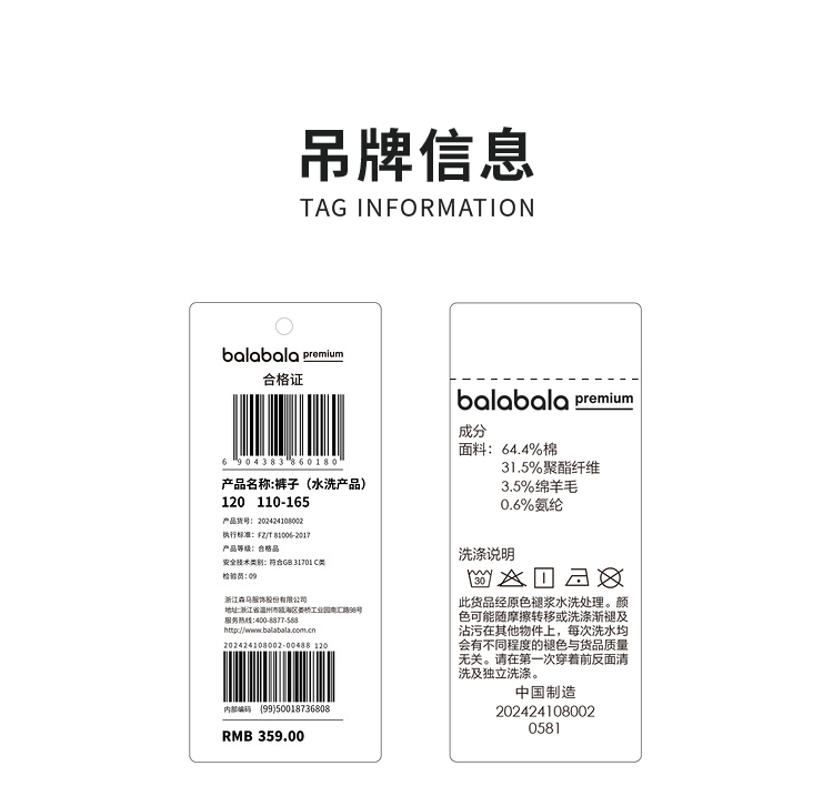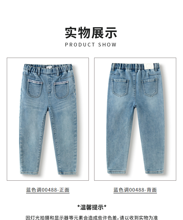 【premium】巴拉巴拉高端线冬季软弹牛仔裤松紧腰温暖磨毛长裤女
