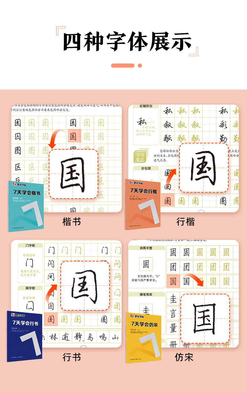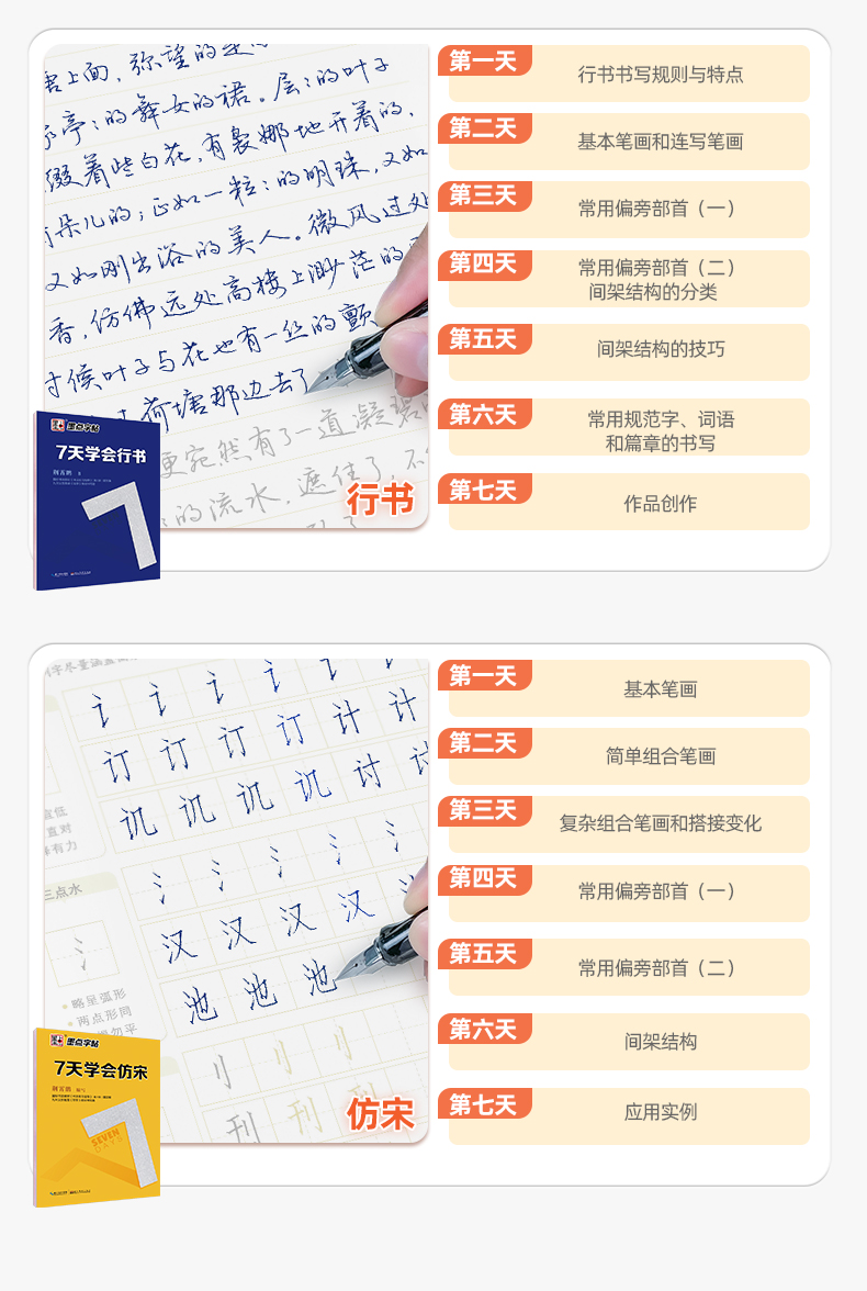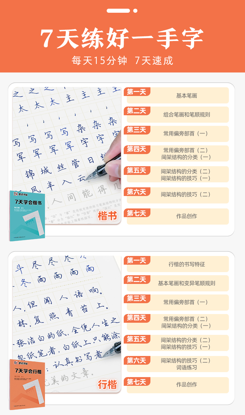 墨点字帖 7天学会 楷书行楷行书仿宋硬笔钢笔字帖成年速成公务员练字帖荆霄鹏