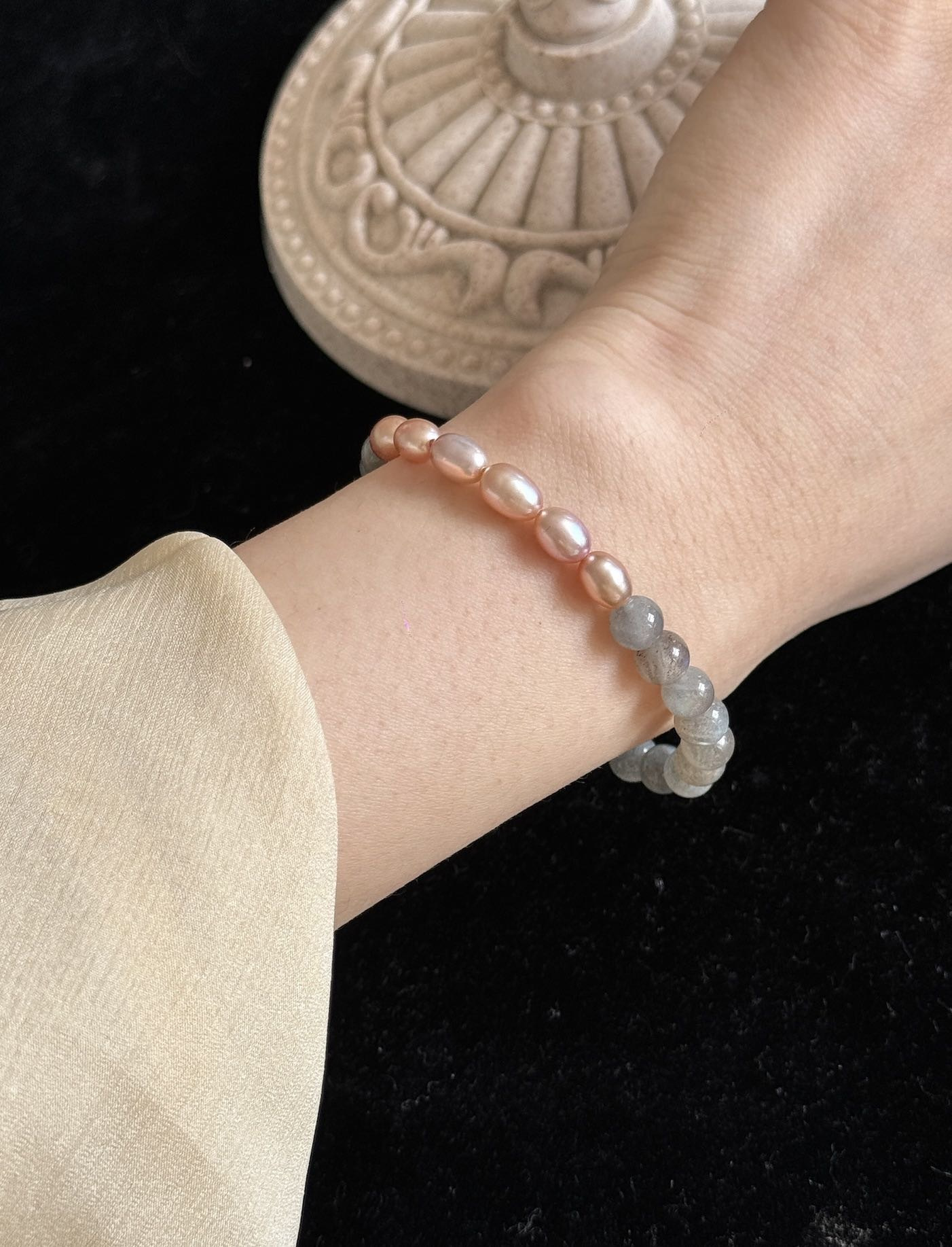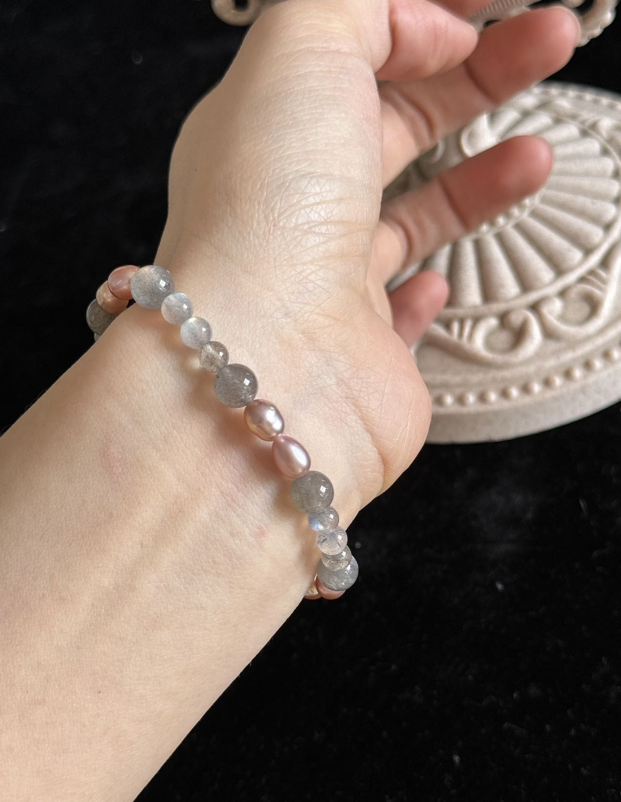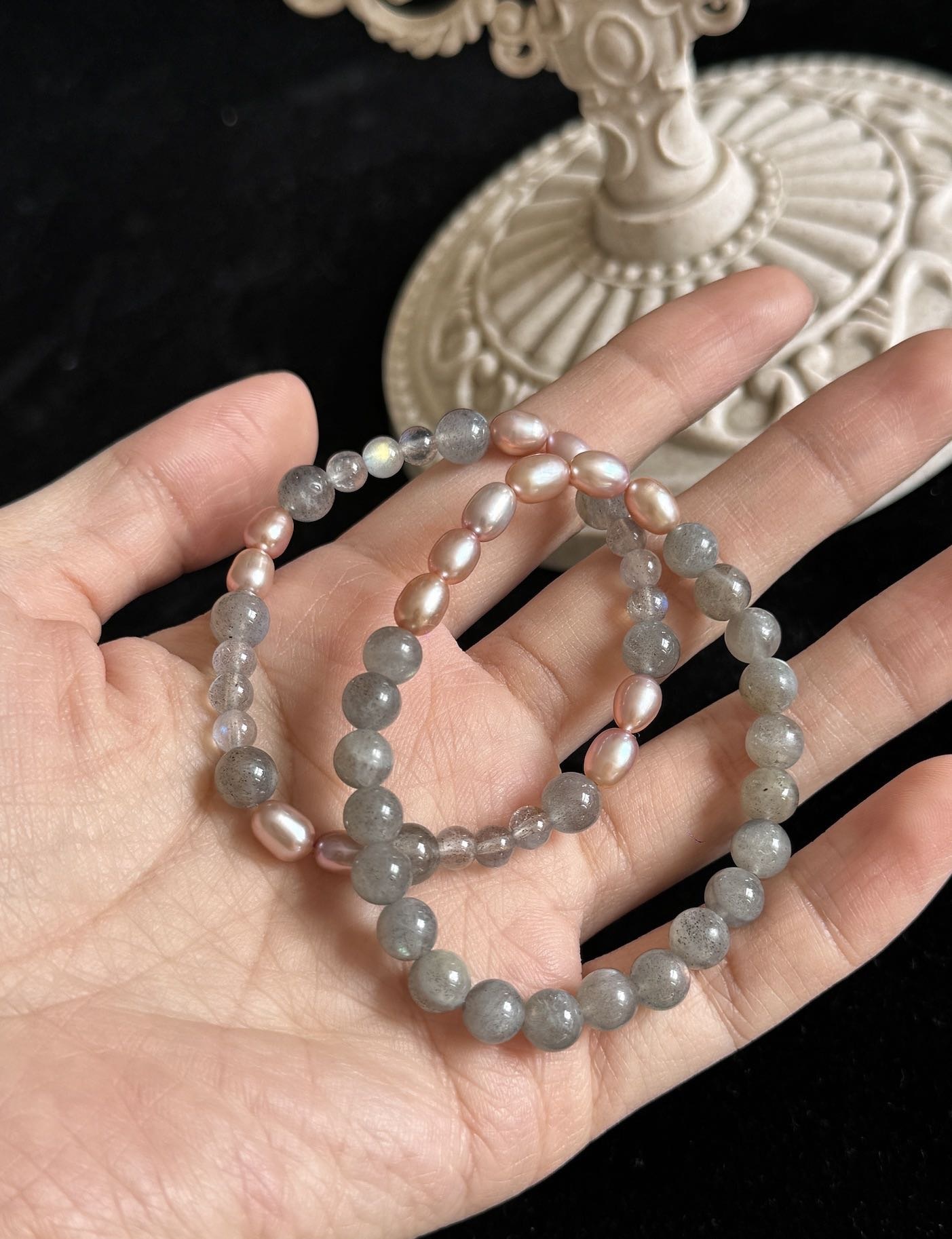 【规格】天然淡水珍珠灰月光石手串/天然淡水珍珠草莓晶手串