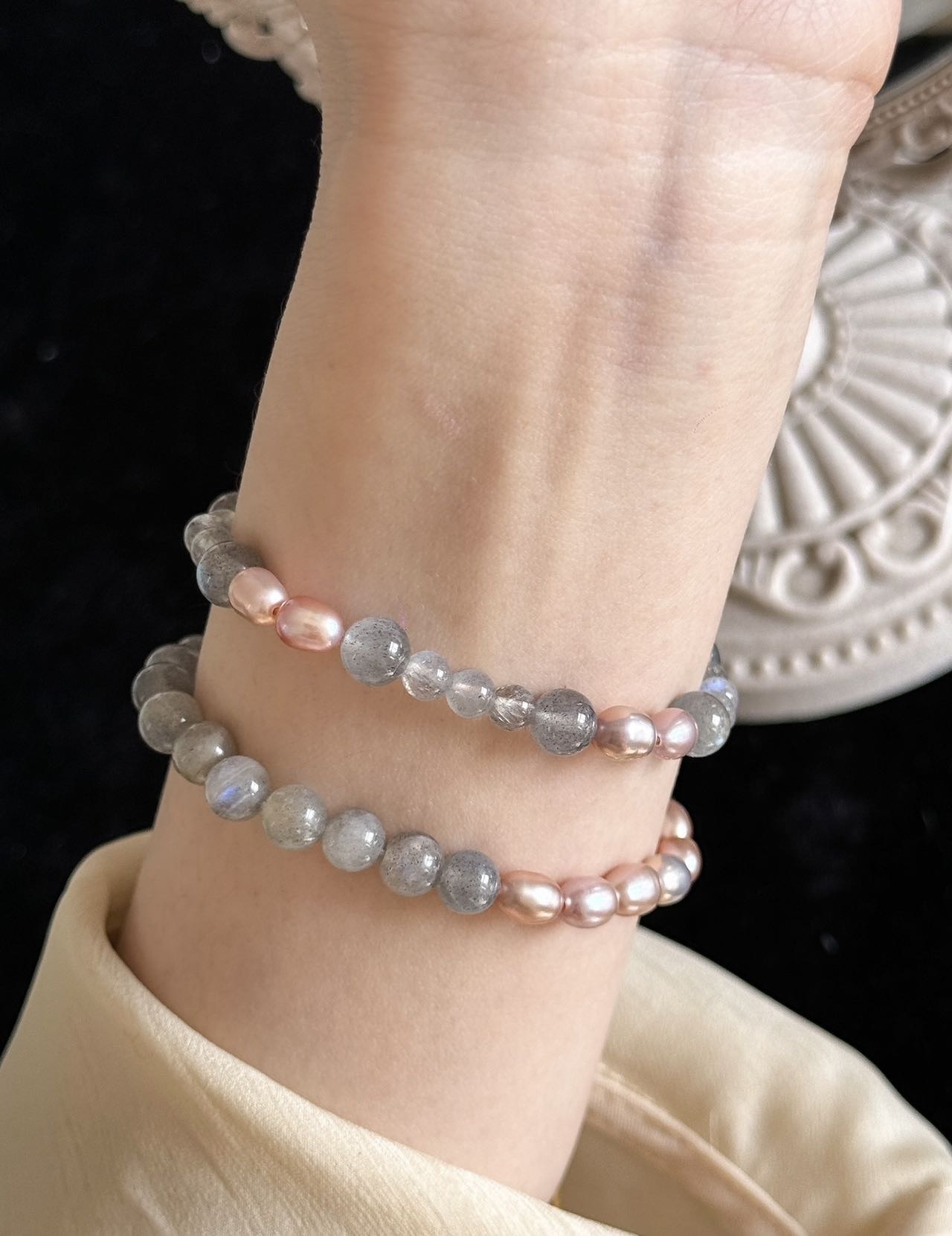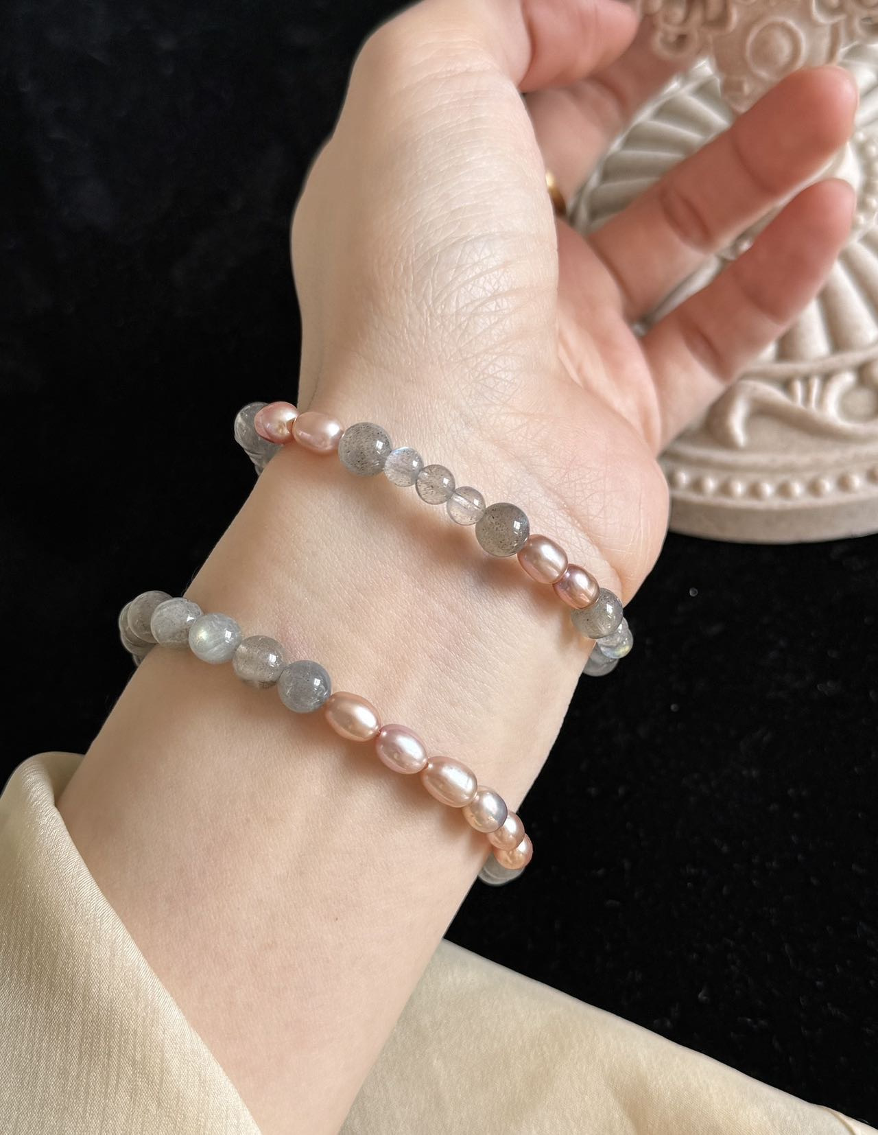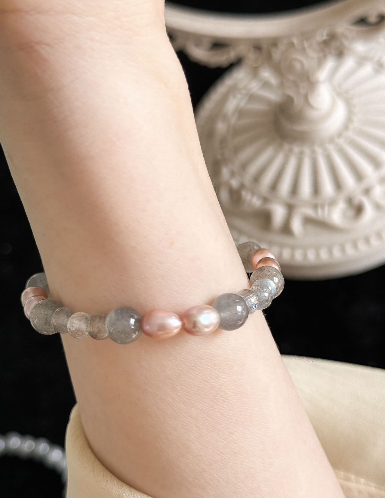 【规格】天然淡水珍珠灰月光石手串/天然淡水珍珠草莓晶手串
