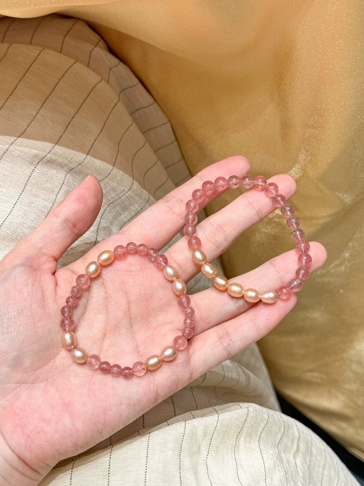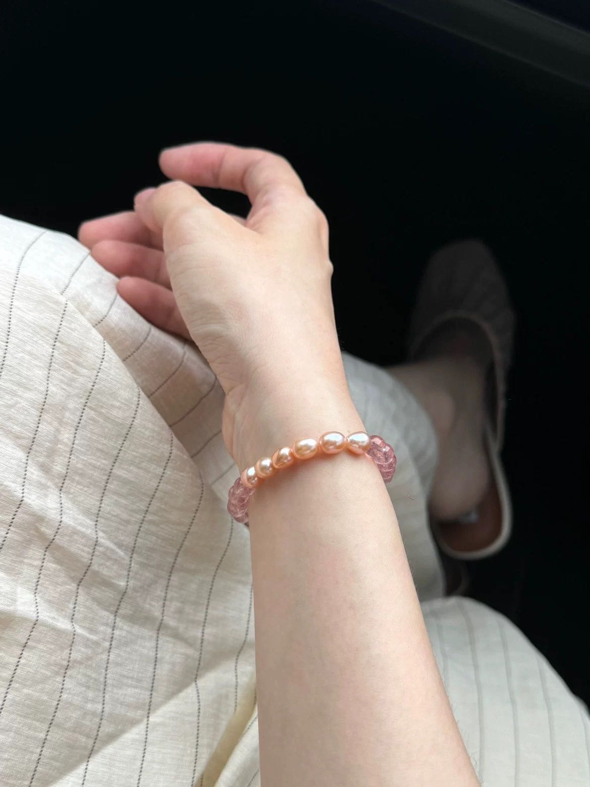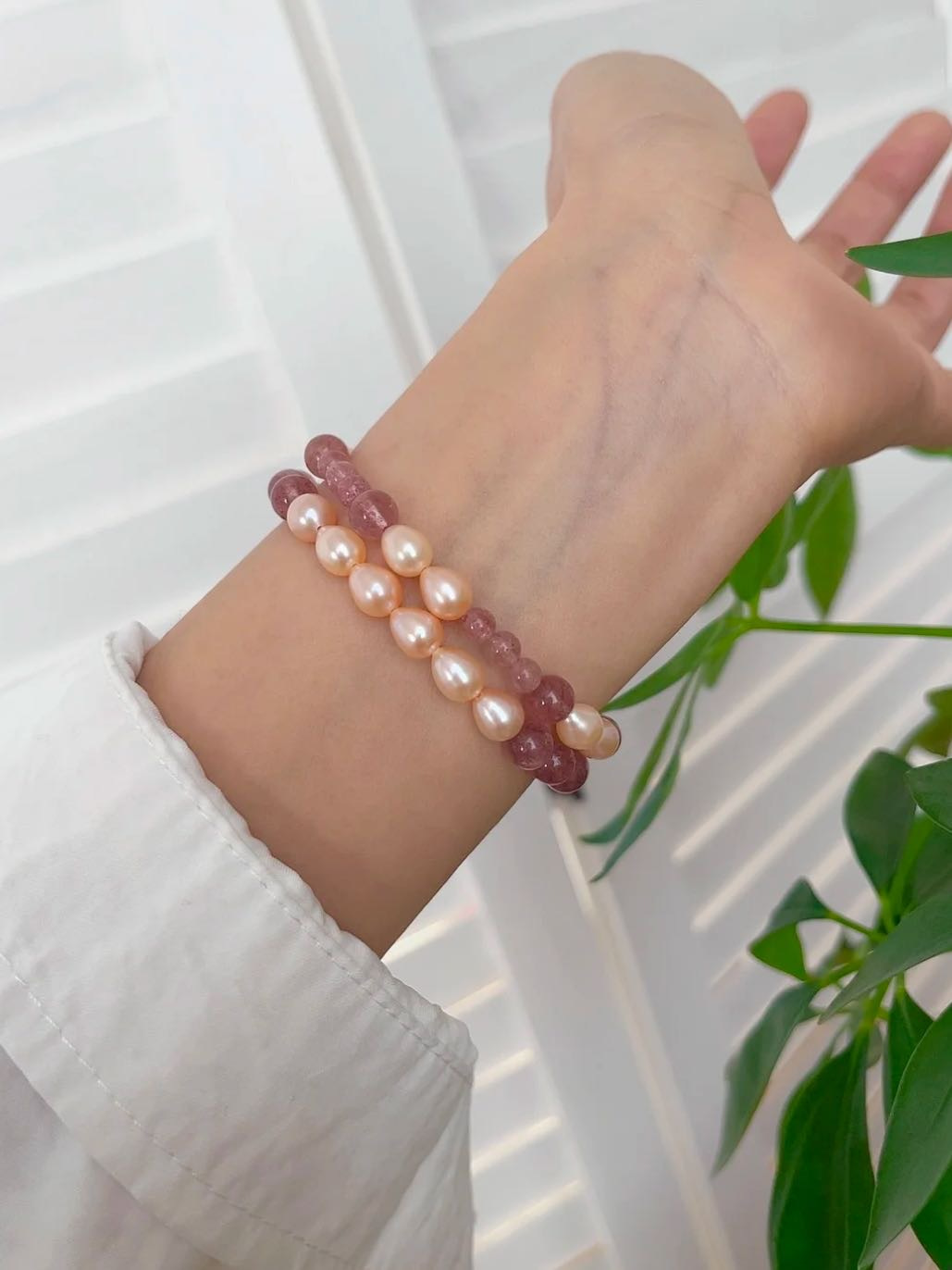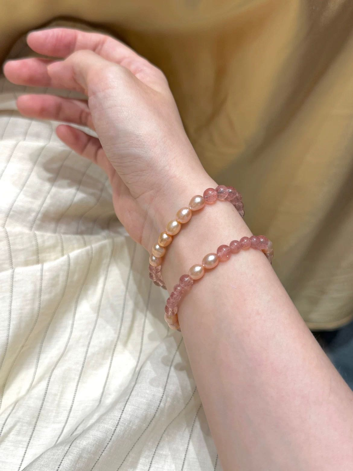 ✅尺寸:草莓晶5/6MM,珍珠约6-6.5mm,弹力设计,约14-16手围可戴