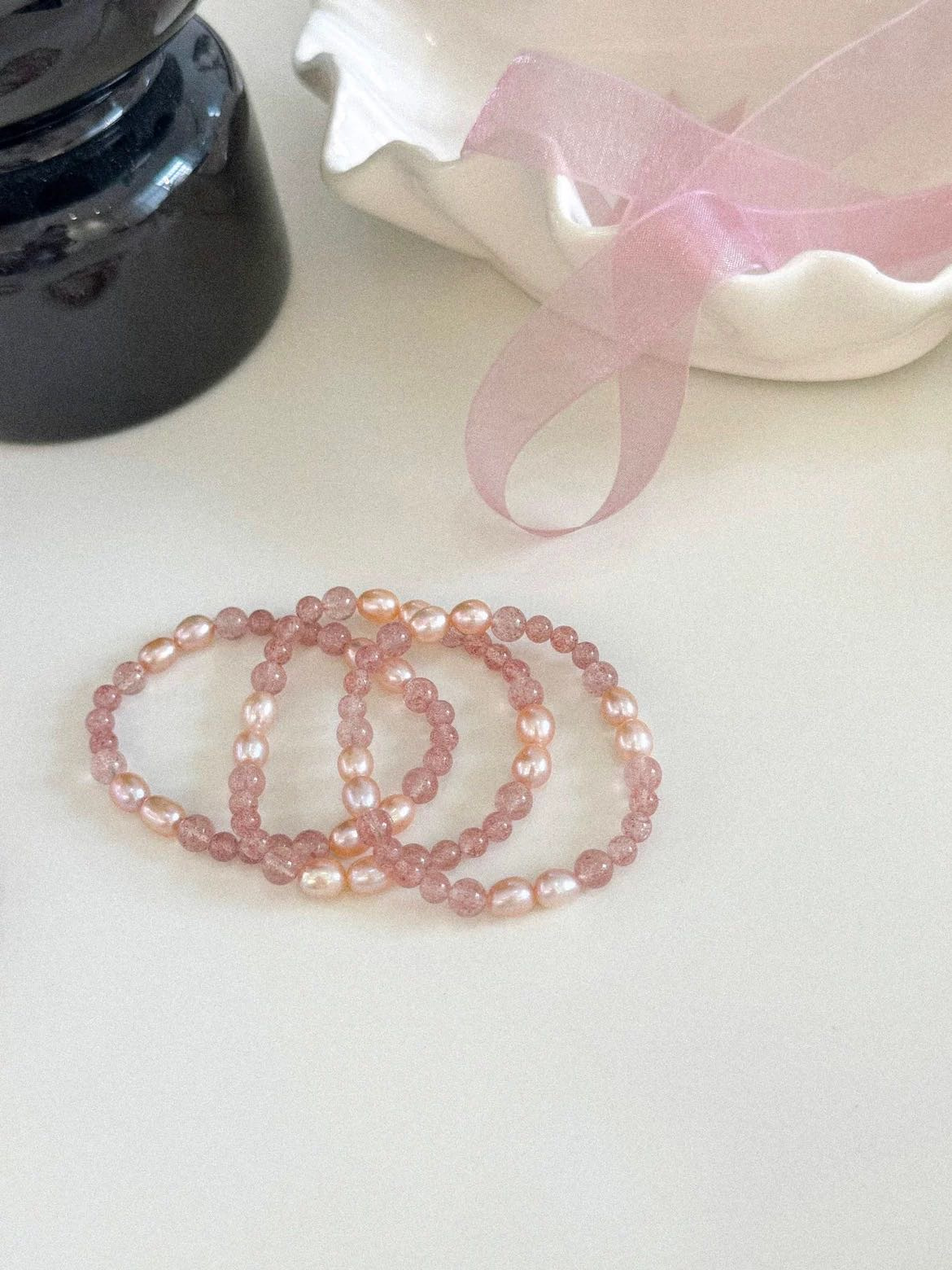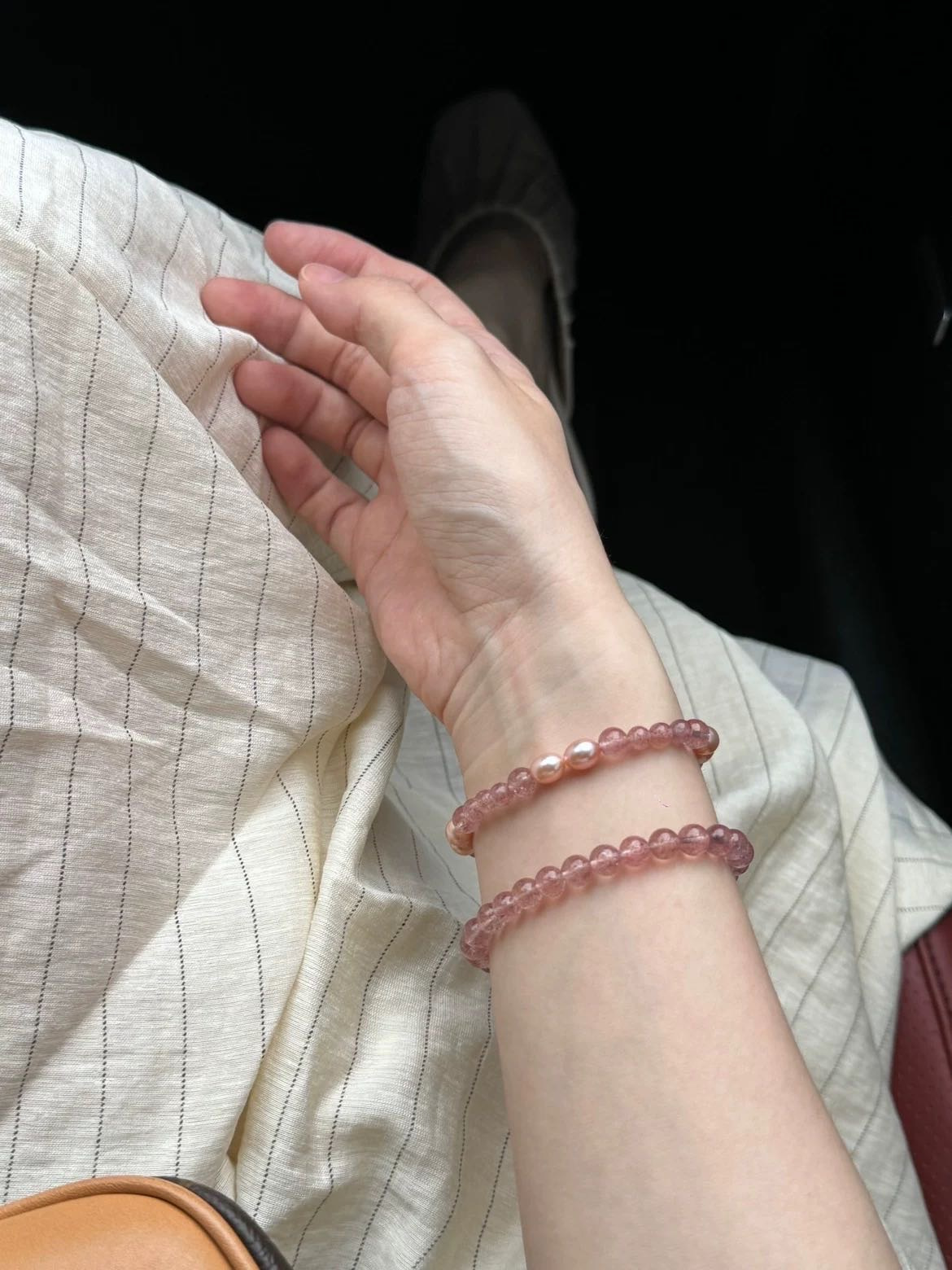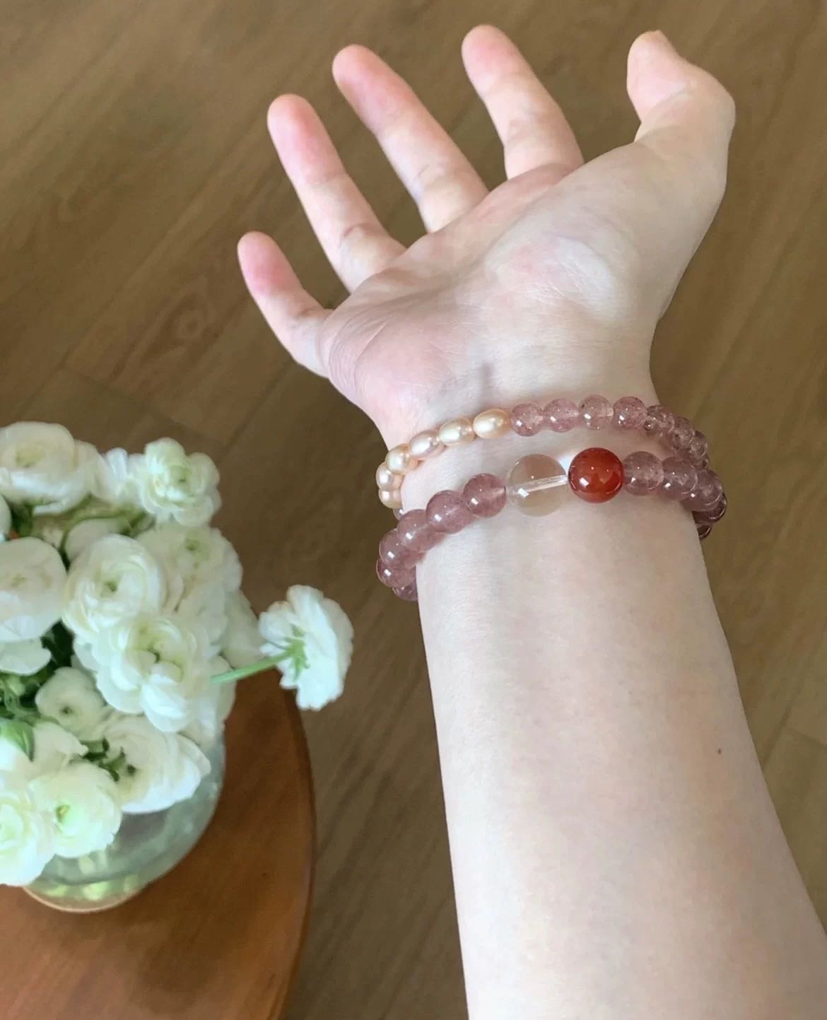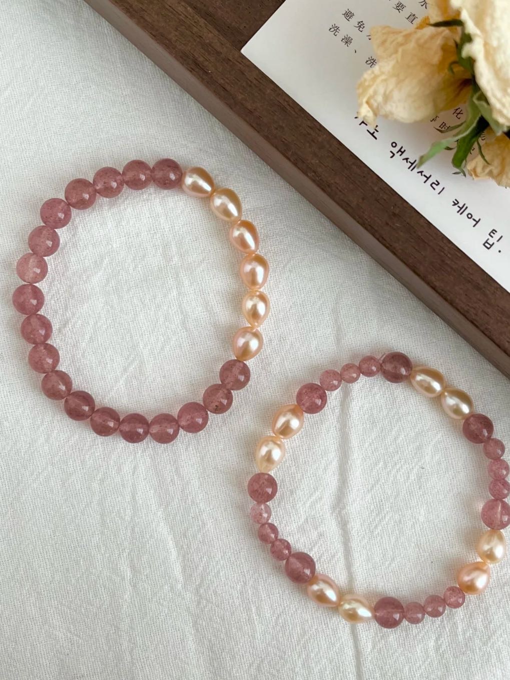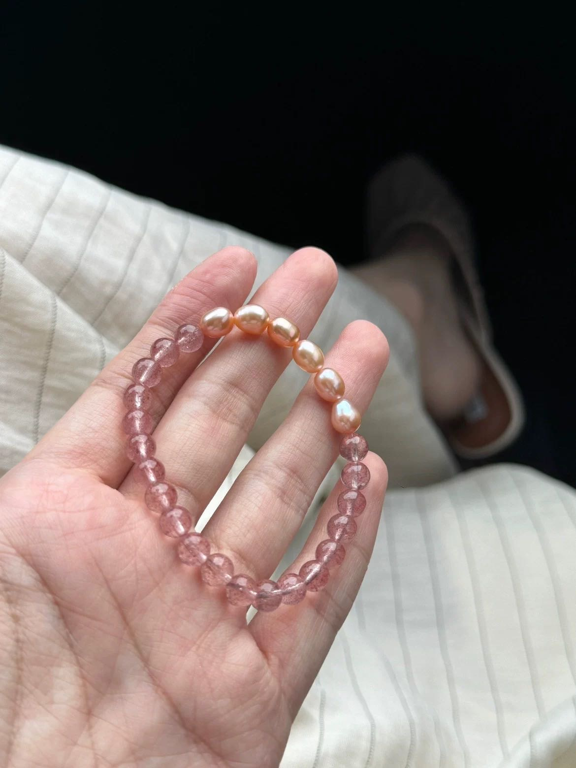 ✅尺寸:草莓晶5/6MM,珍珠约6-6.5mm,弹力设计,约14-16手围可戴