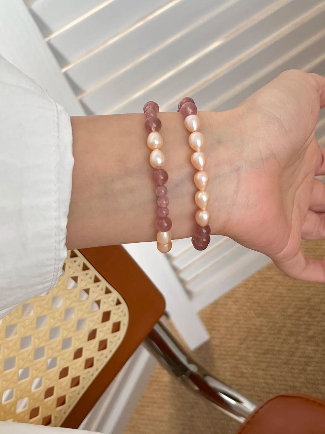 ✅淡水珍珠草莓晶手串🌸少女心爆棚