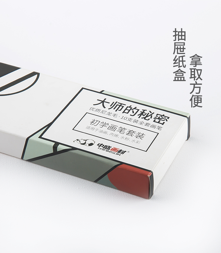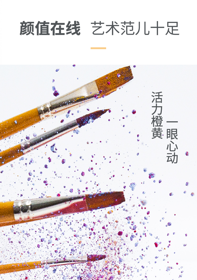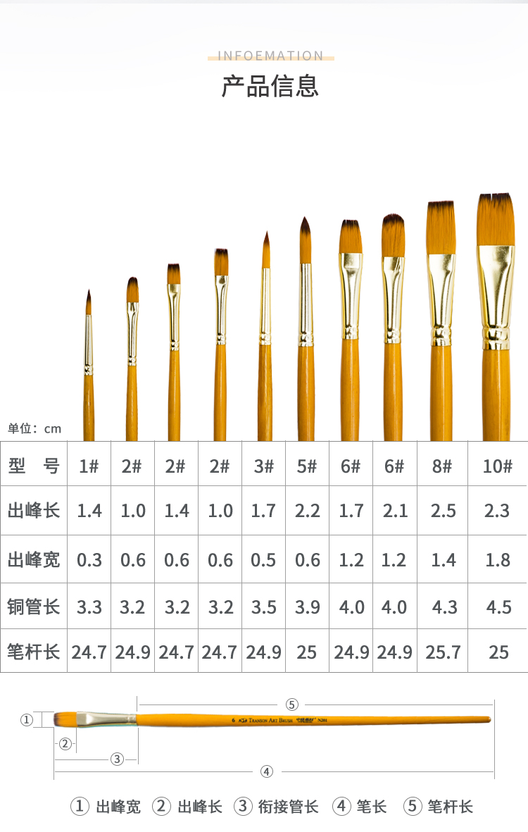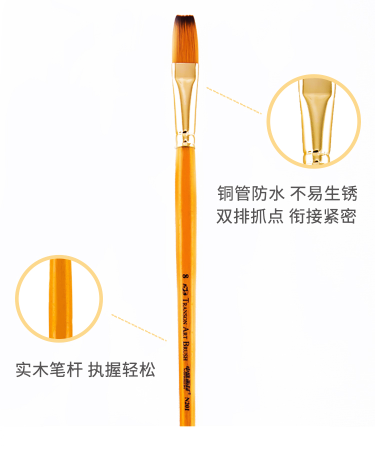 中盛画材N201黄杆金色尼龙 水粉油画丙烯水彩颜料用画笔 10支套装