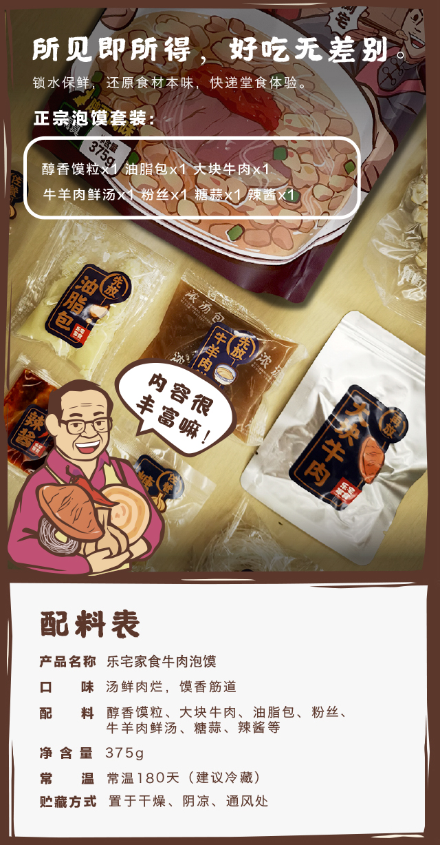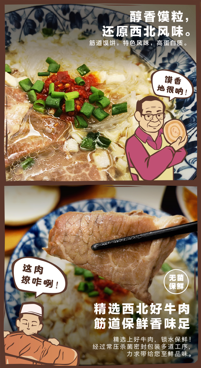 【清真】乐宅家食酸辣牛肉泡馍365g*3袋陕西风味还原堂食酸辣浓香