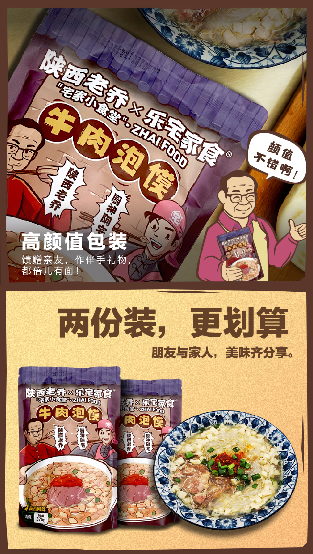 【清真】速食乐宅家食老乔版牛肉泡馍西安风味还原堂食375g袋装