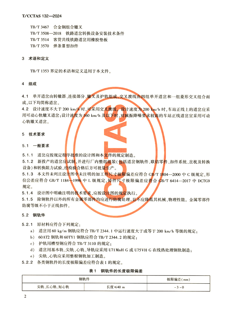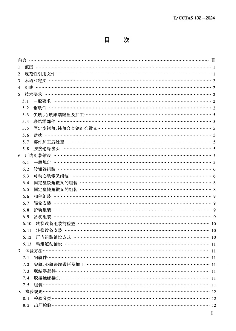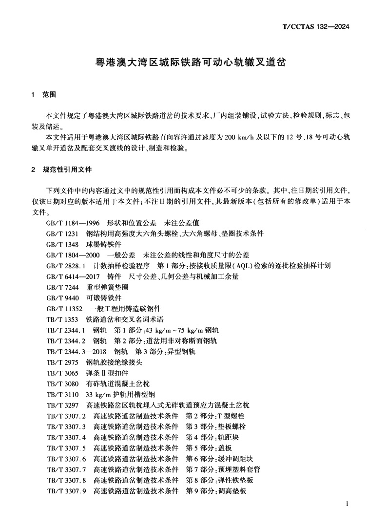 书名:粤港澳大湾区城际铁路可动心轨辙叉道岔T/CCTAS 132—2024