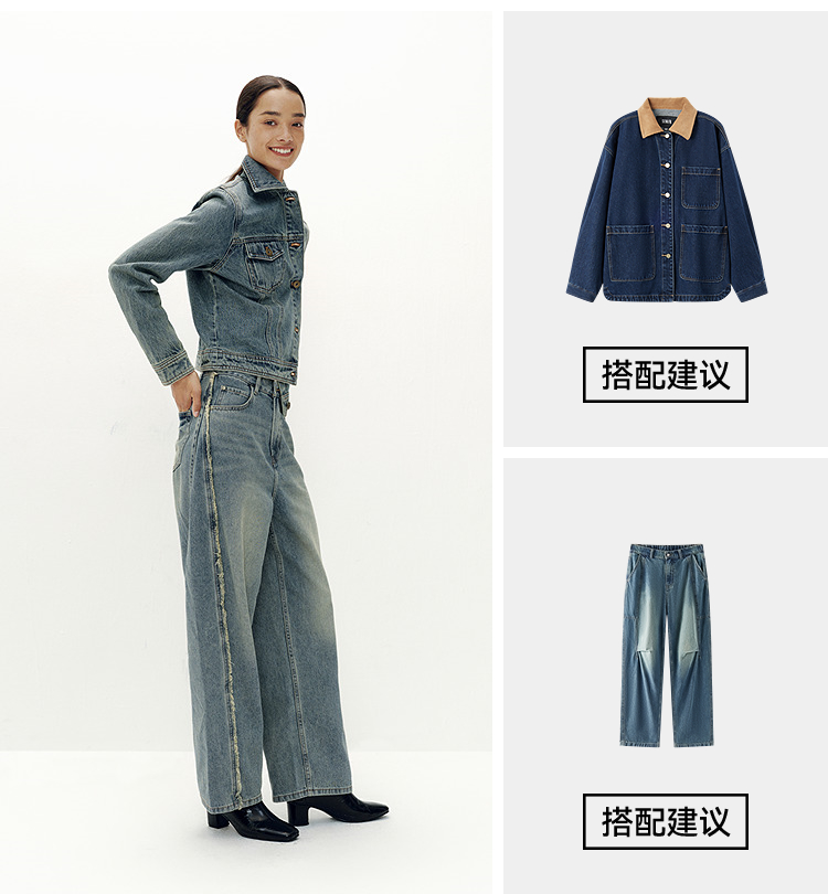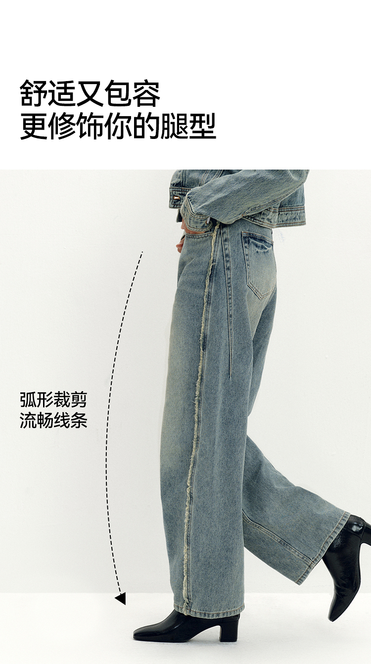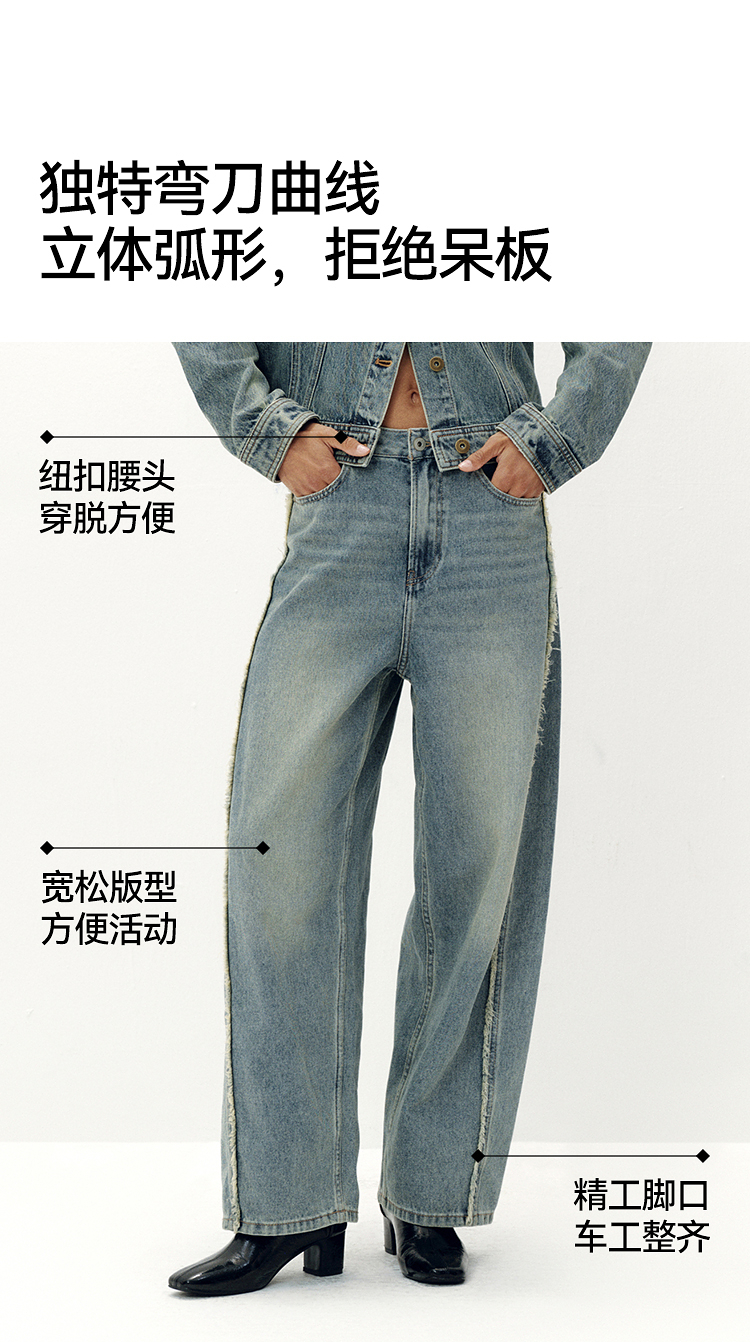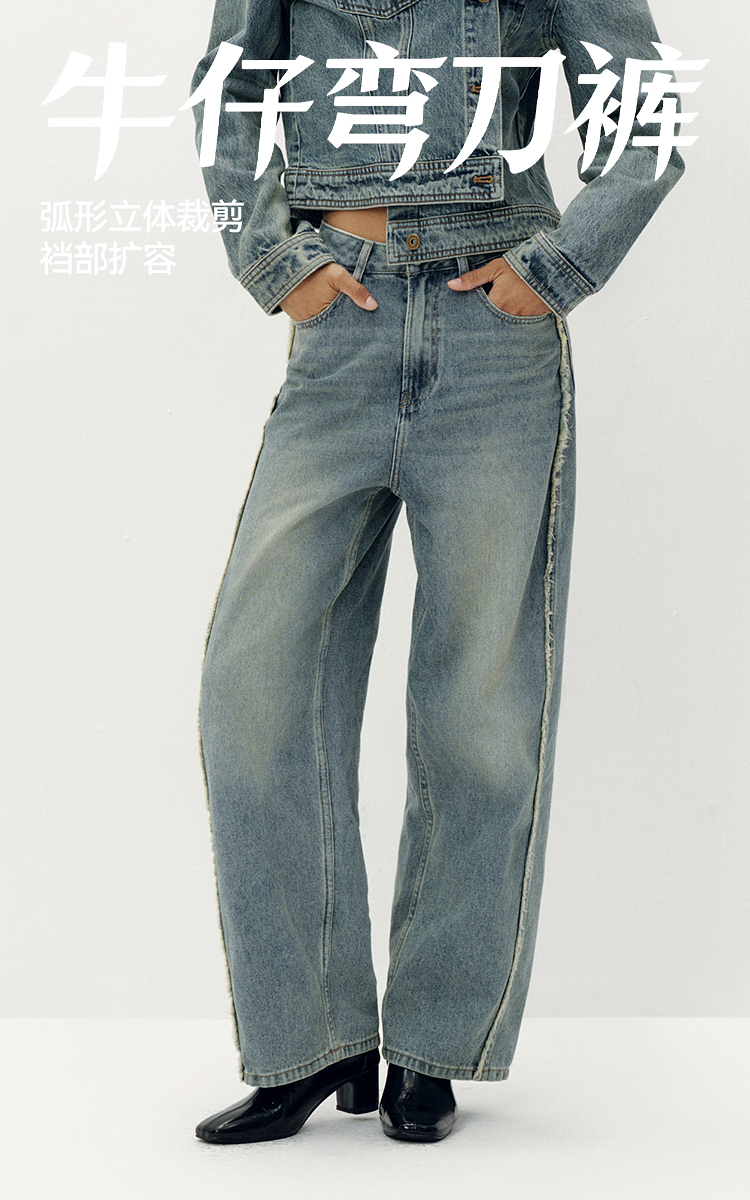 [商场同款]森马牛仔裤女显瘦宽松弯刀裤潮流2025秋季新款做旧长裤