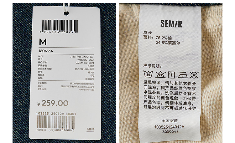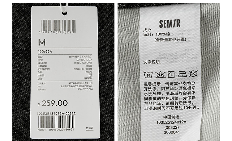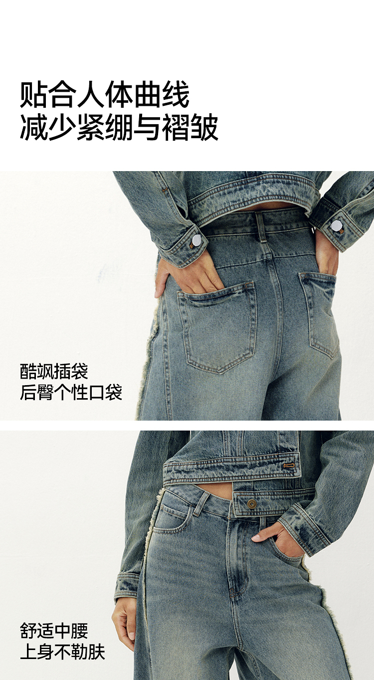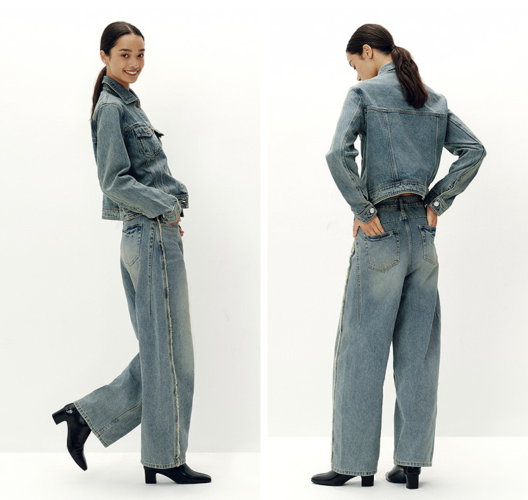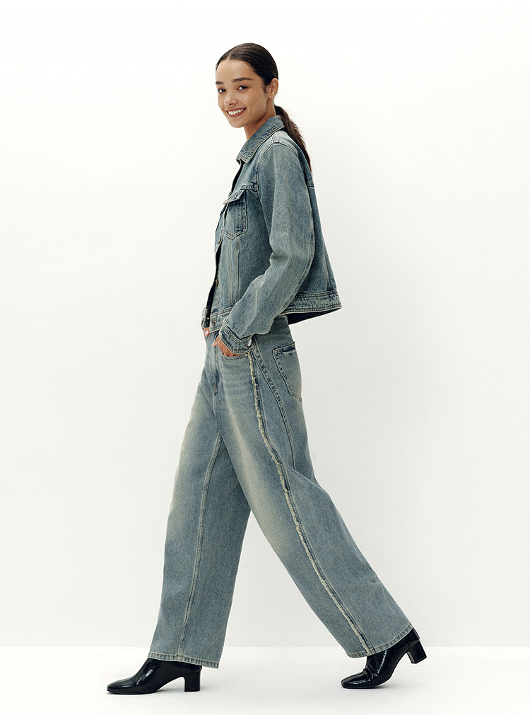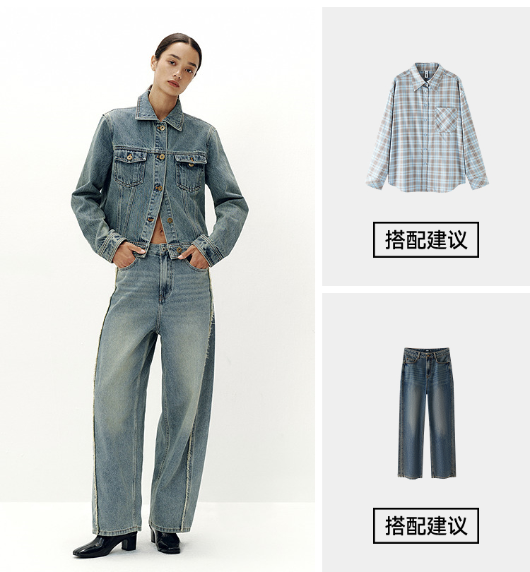 [商场同款]森马牛仔裤女显瘦宽松弯刀裤潮流2025秋季新款做旧长裤