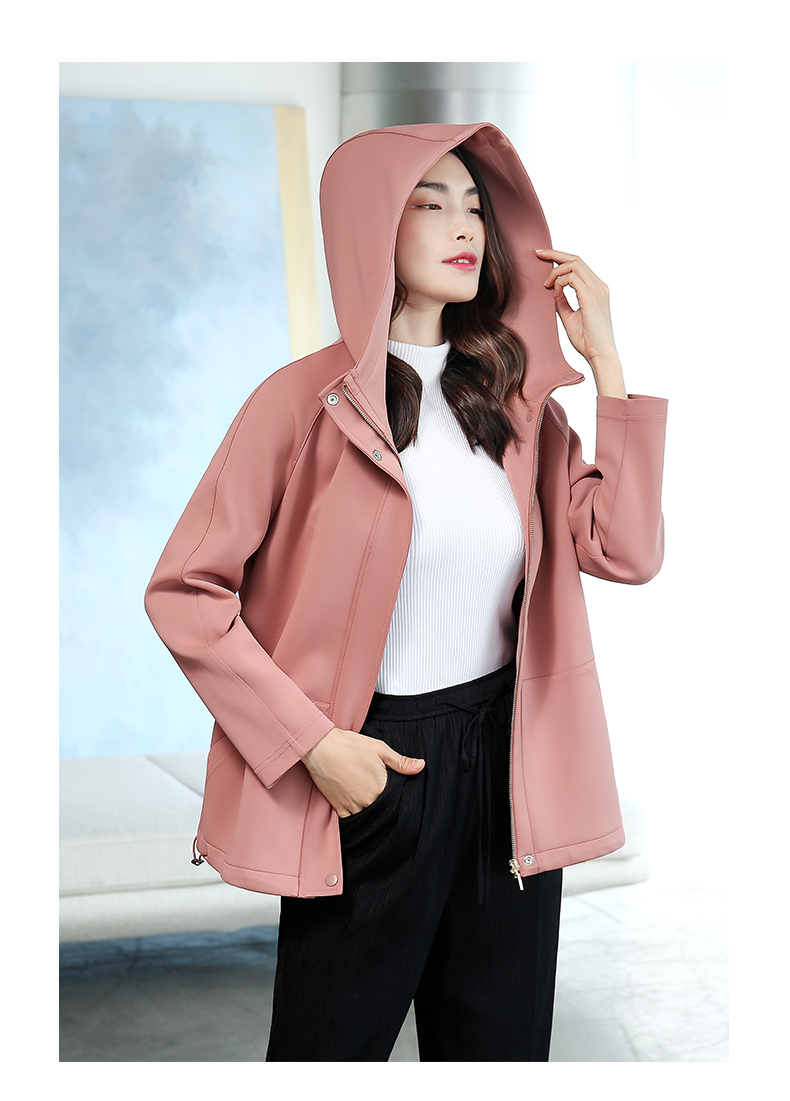 佐尔美春季新款时尚休闲短外套宽松潮流连帽风衣女E11FD07
