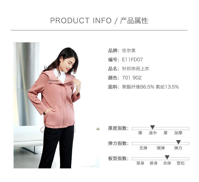 佐尔美新品秋冬新品薄纯色简约时尚妈妈装女外套E73FZ09