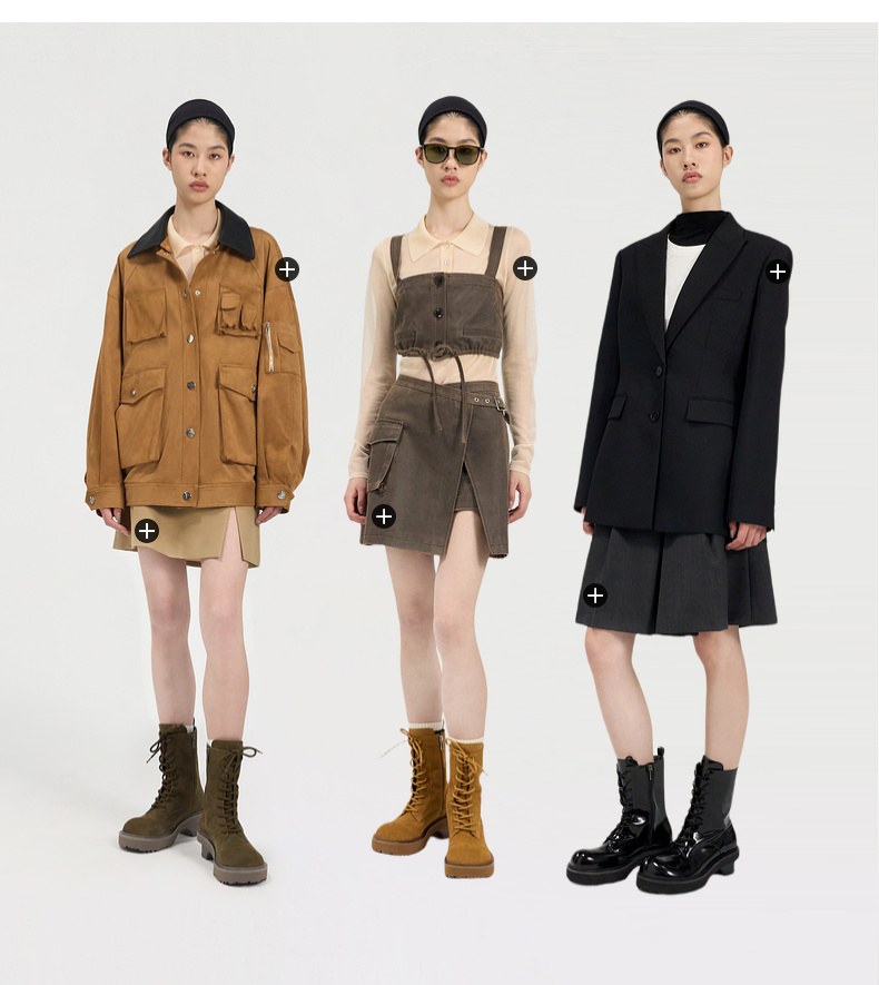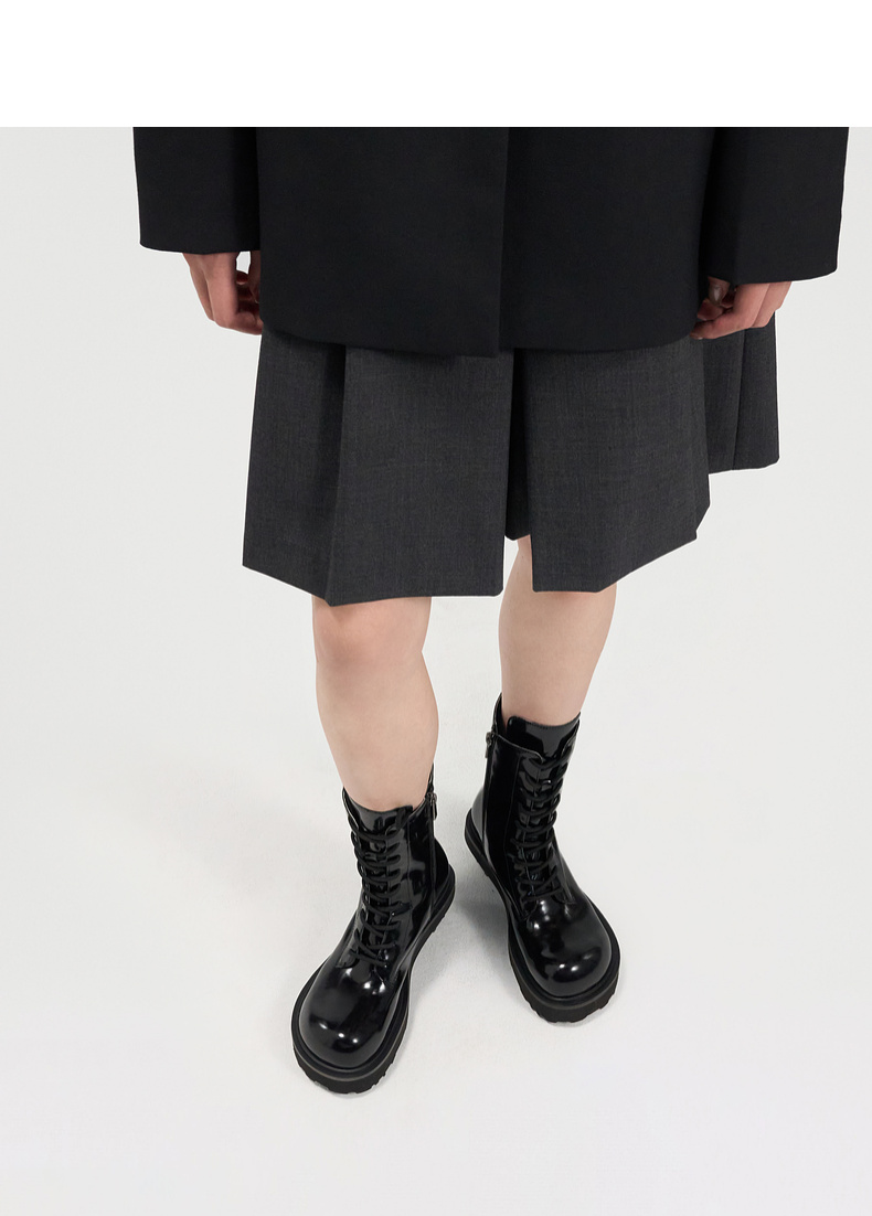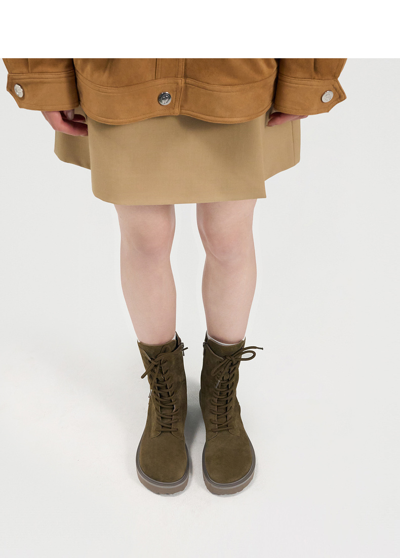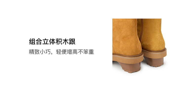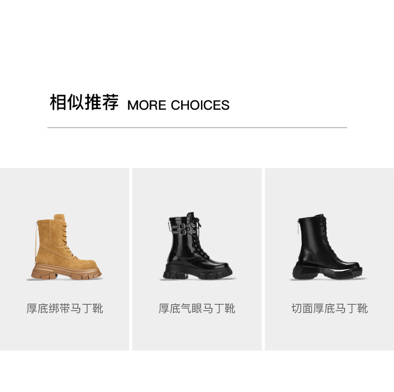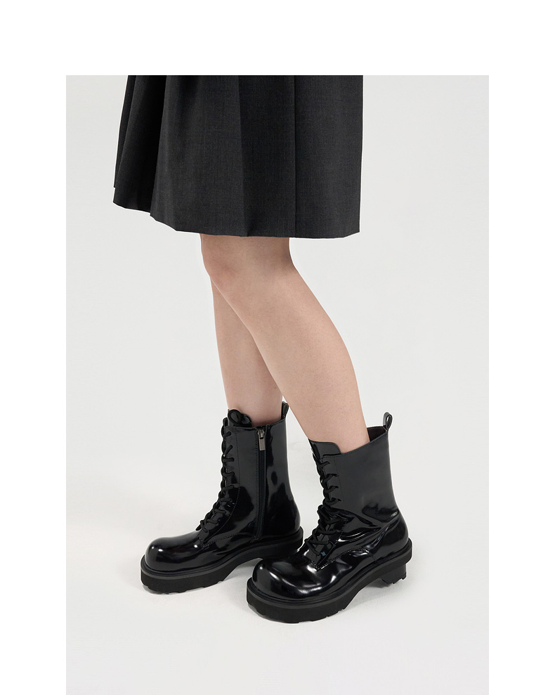 lost in echo2024秋季新款翘圆头积木跟中筒真皮马丁靴大黄靴女