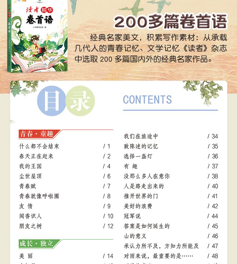 写作素材大全【6-15岁】《读者精华:卷首语+格言》小学文摘 精华名句 佳句 语录 少年版