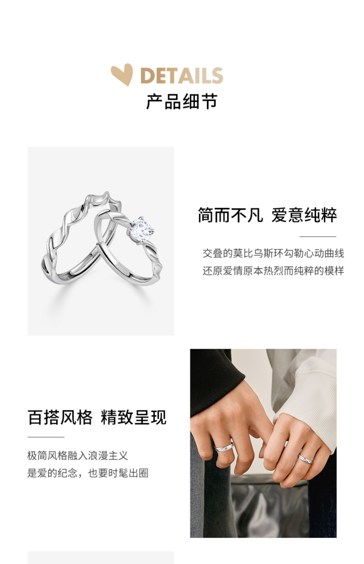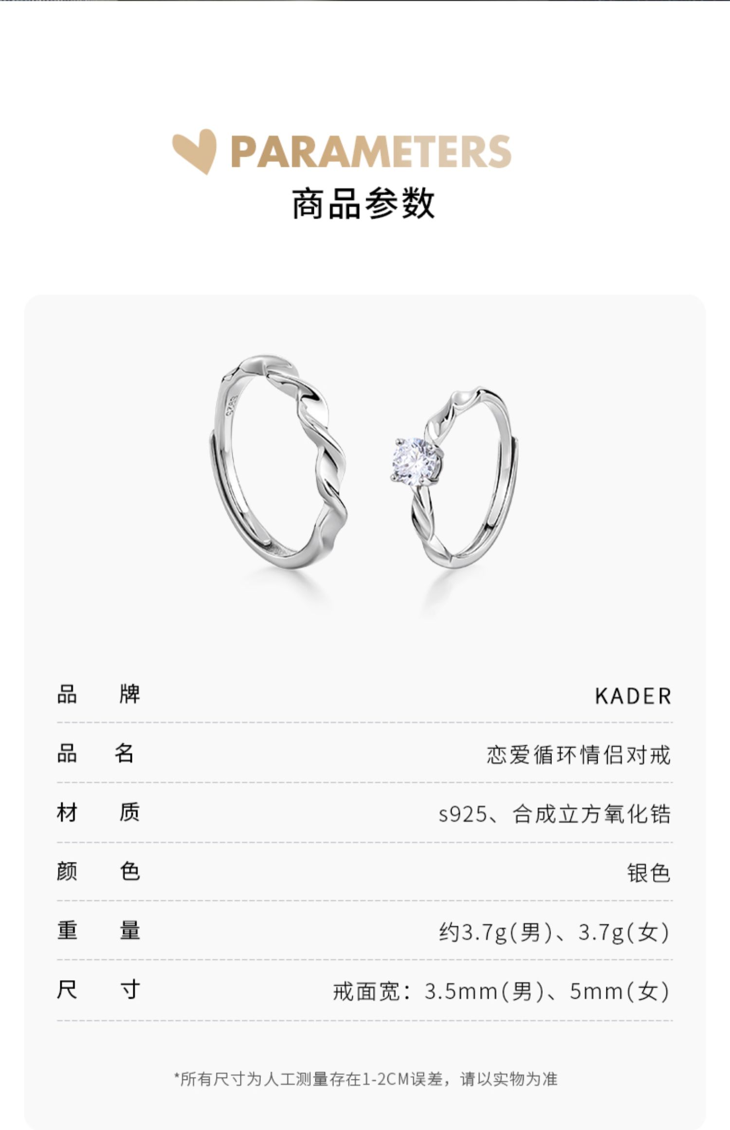 卡蒂罗恋爱循环情侣对戒纯银一对男女款小众设计情侣节礼物送女友