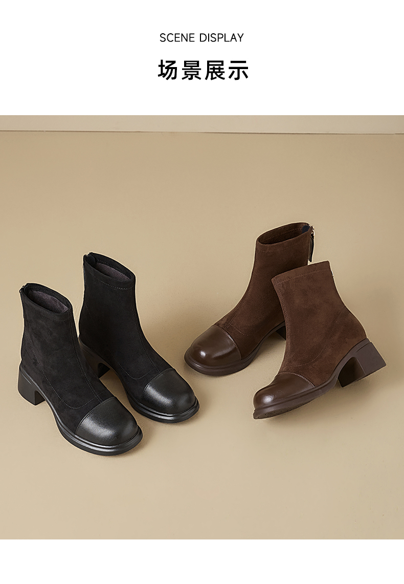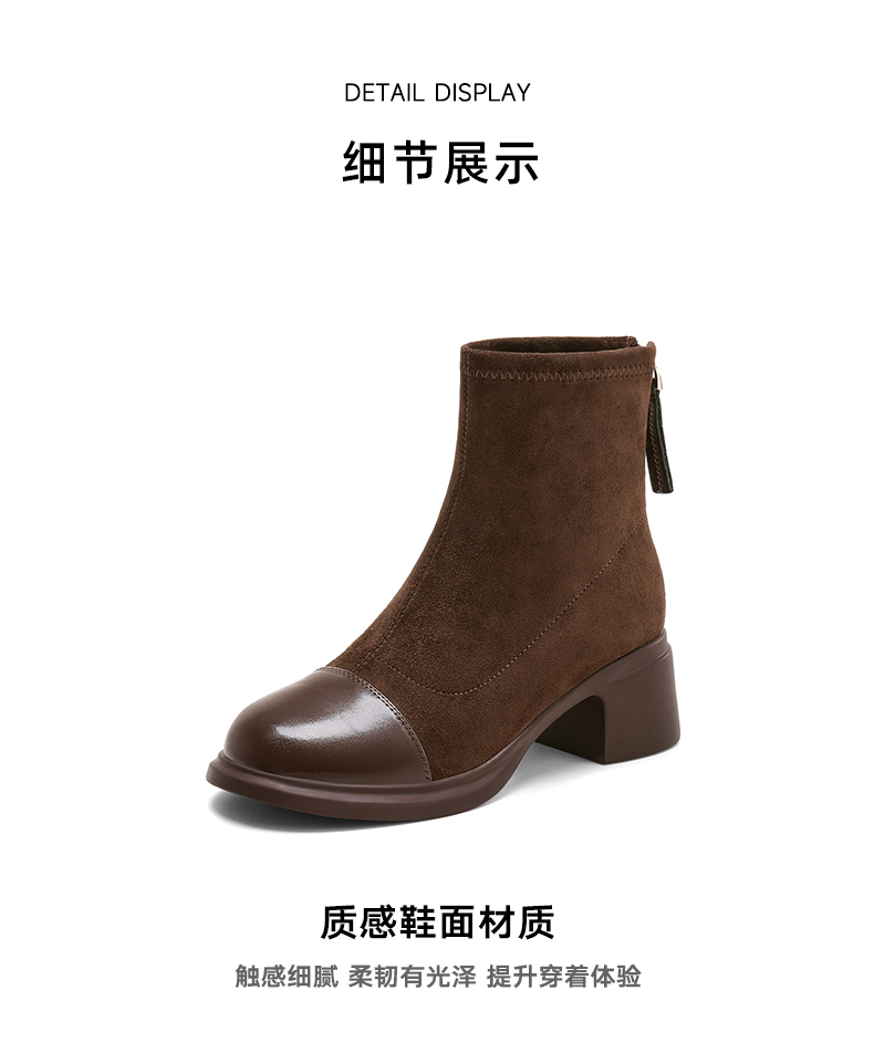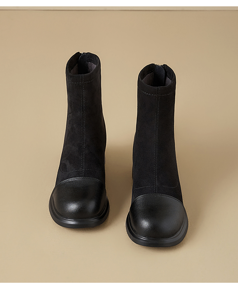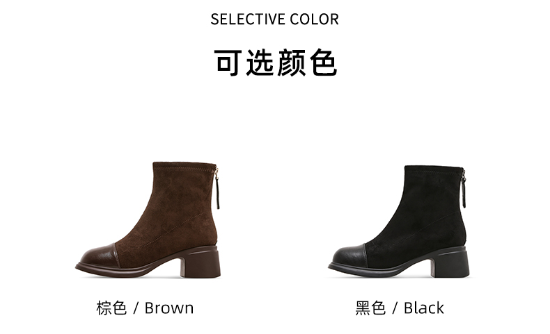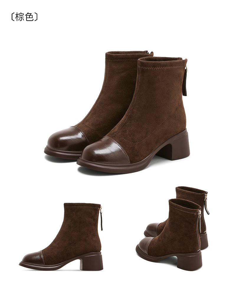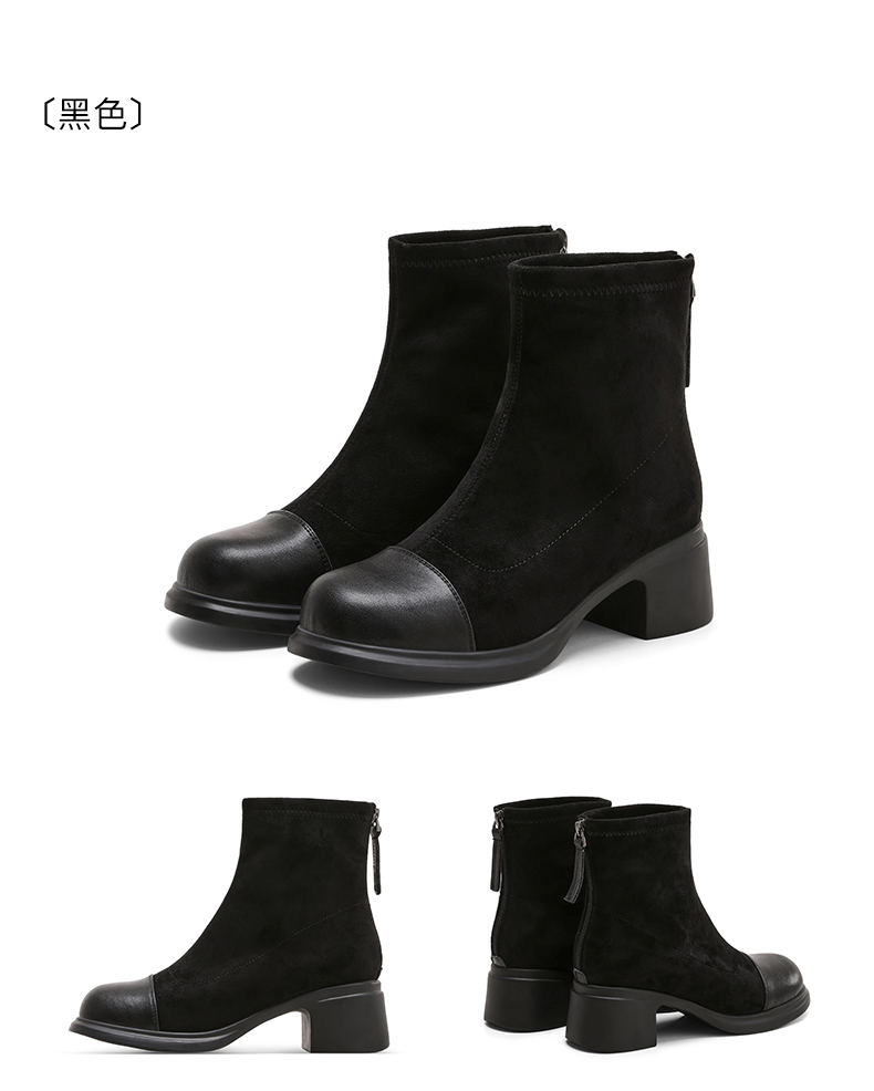 星期六优雅干练拼接显瘦粗跟短靴SSD4116CFH