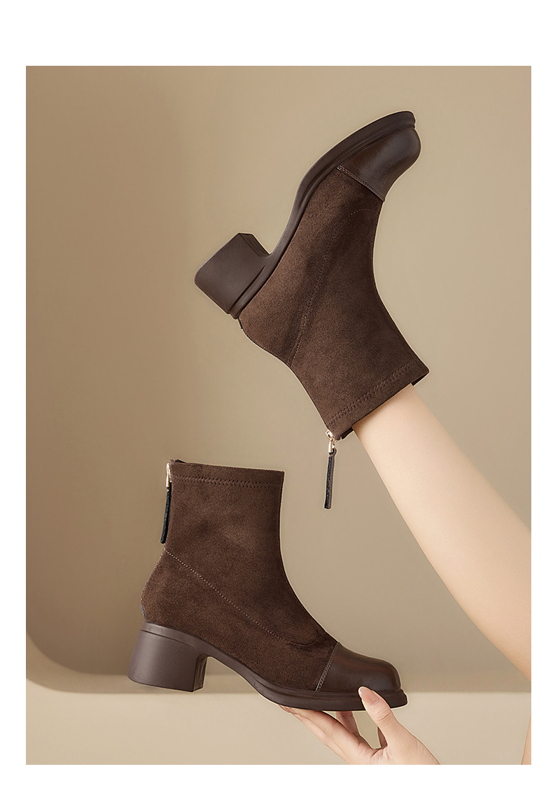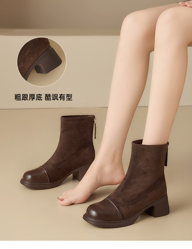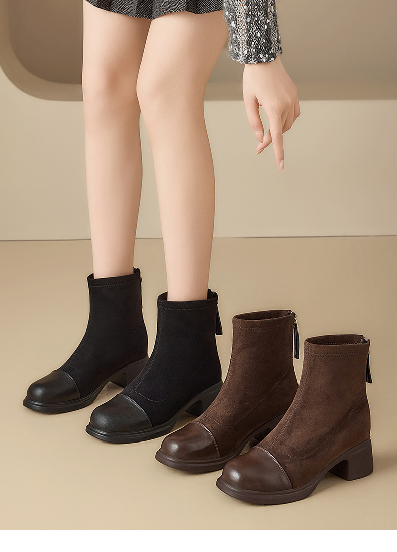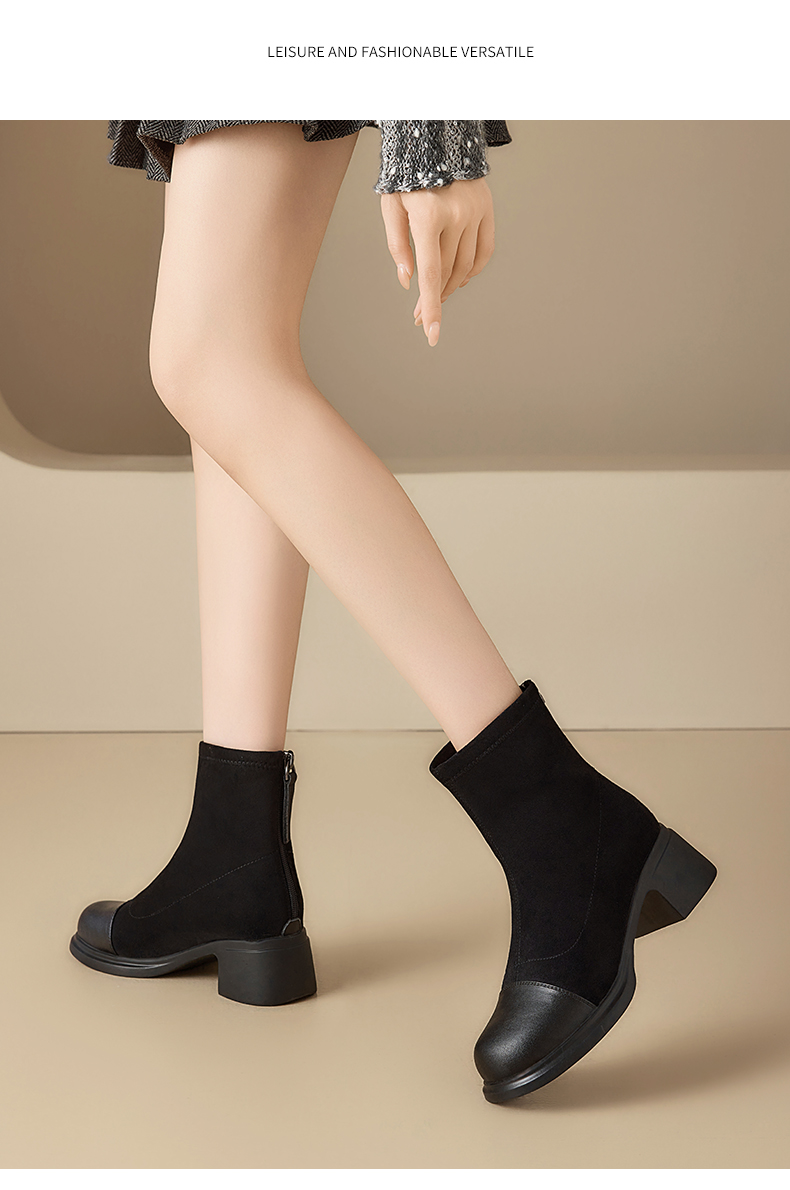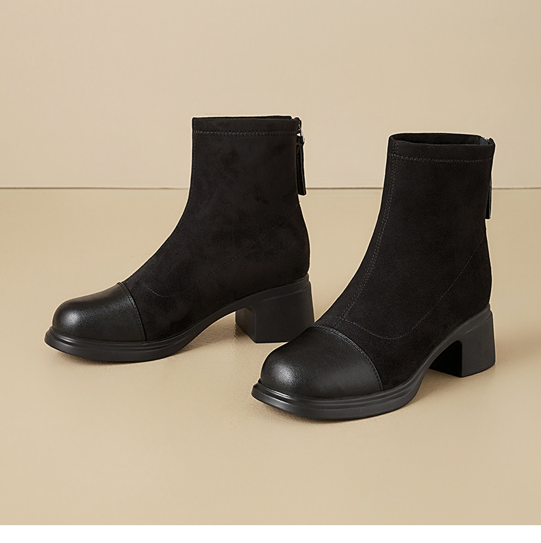 星期六优雅干练拼接显瘦粗跟短靴SSD4116CFH
