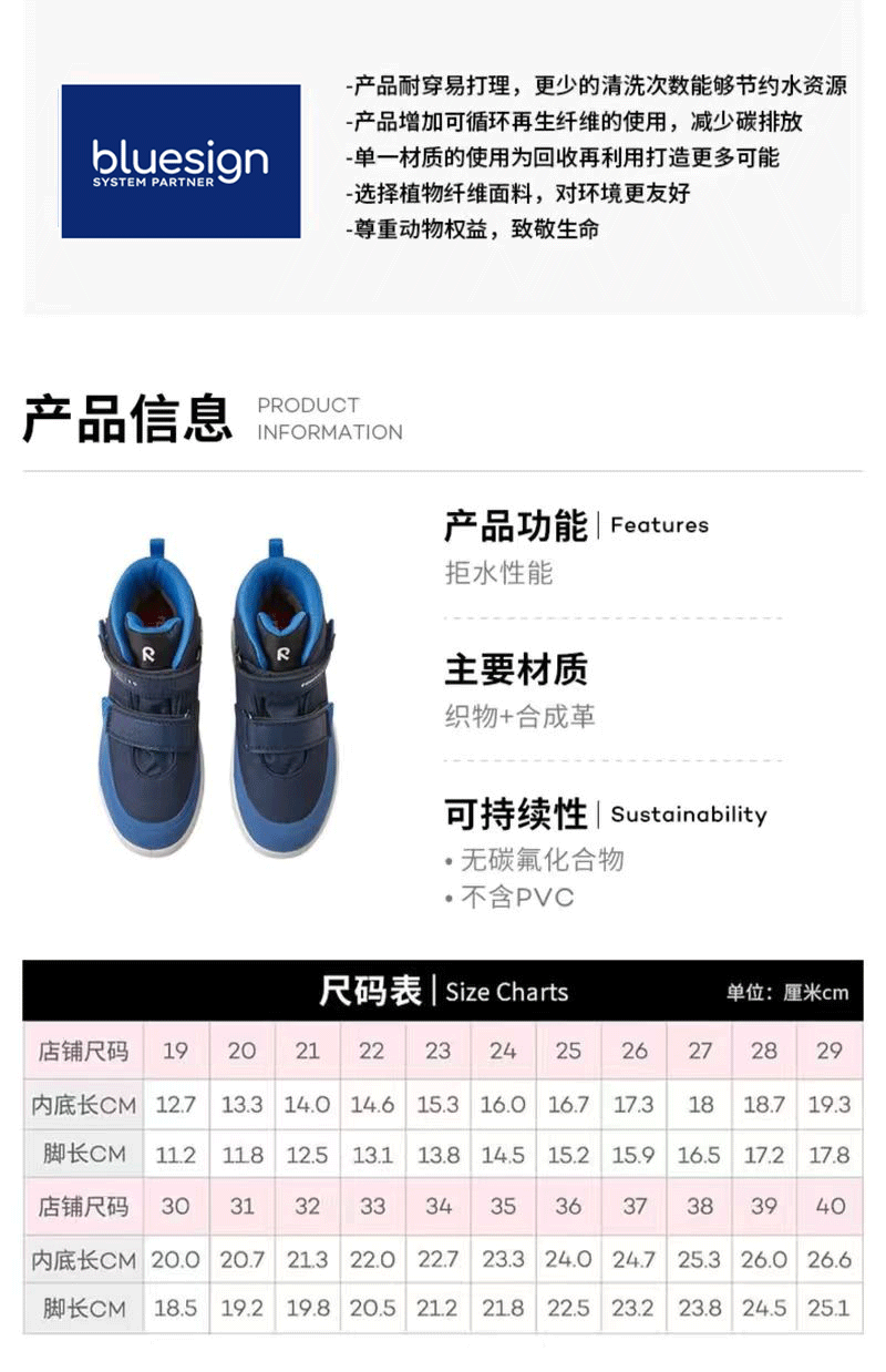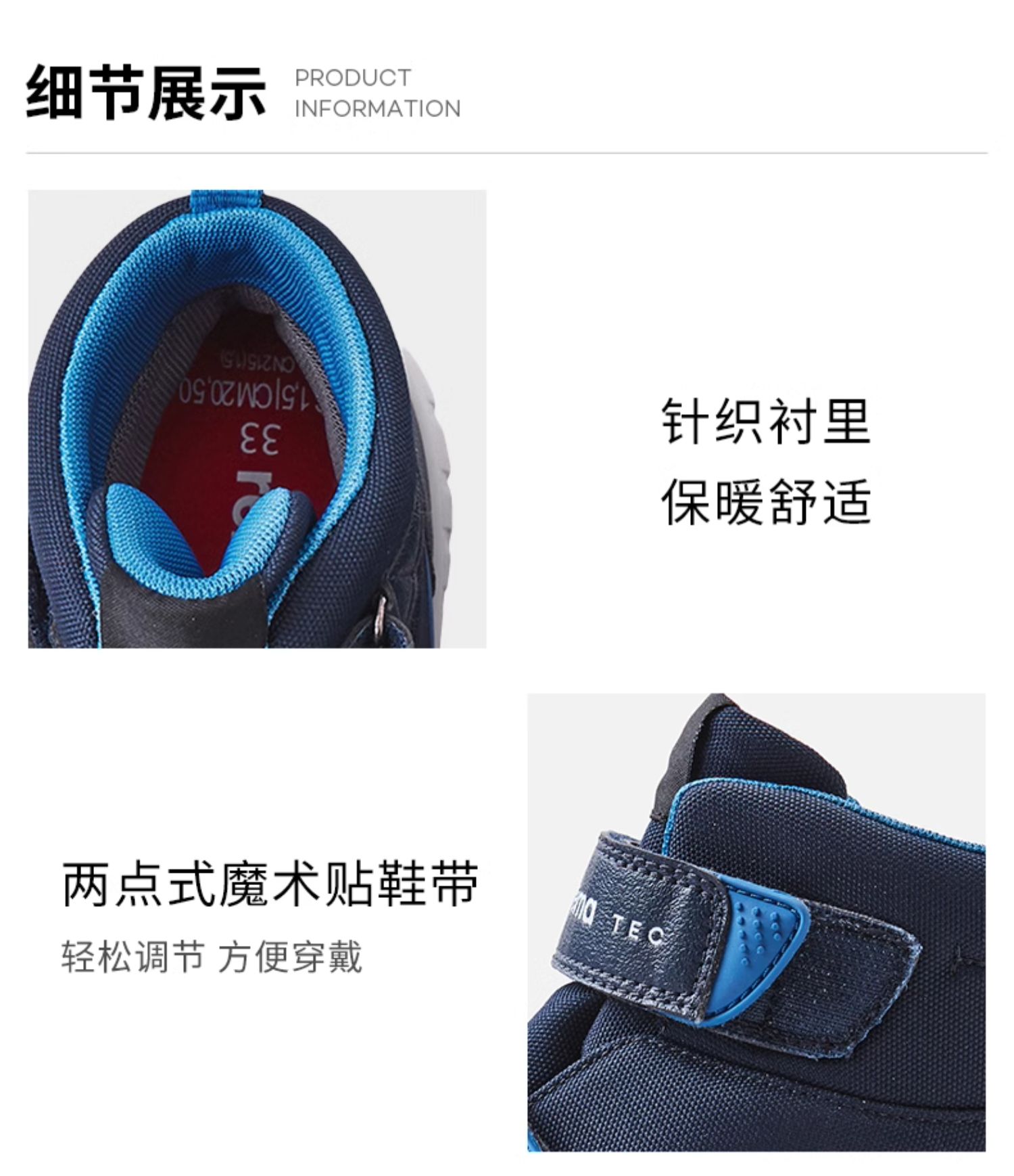 芬兰reima2024年秋冬新款男女儿童大童魔术贴拒水运动旅游鞋
