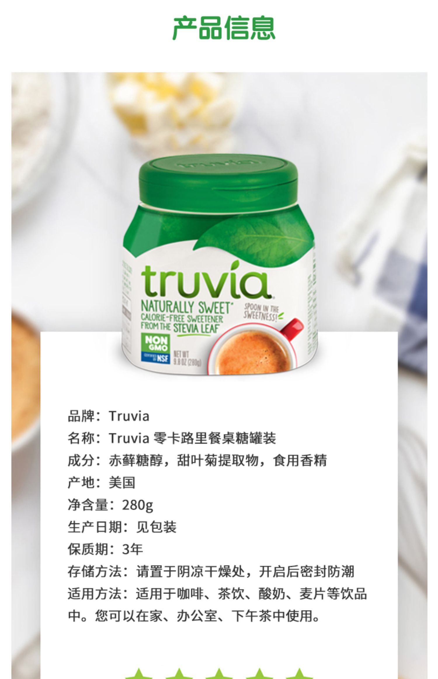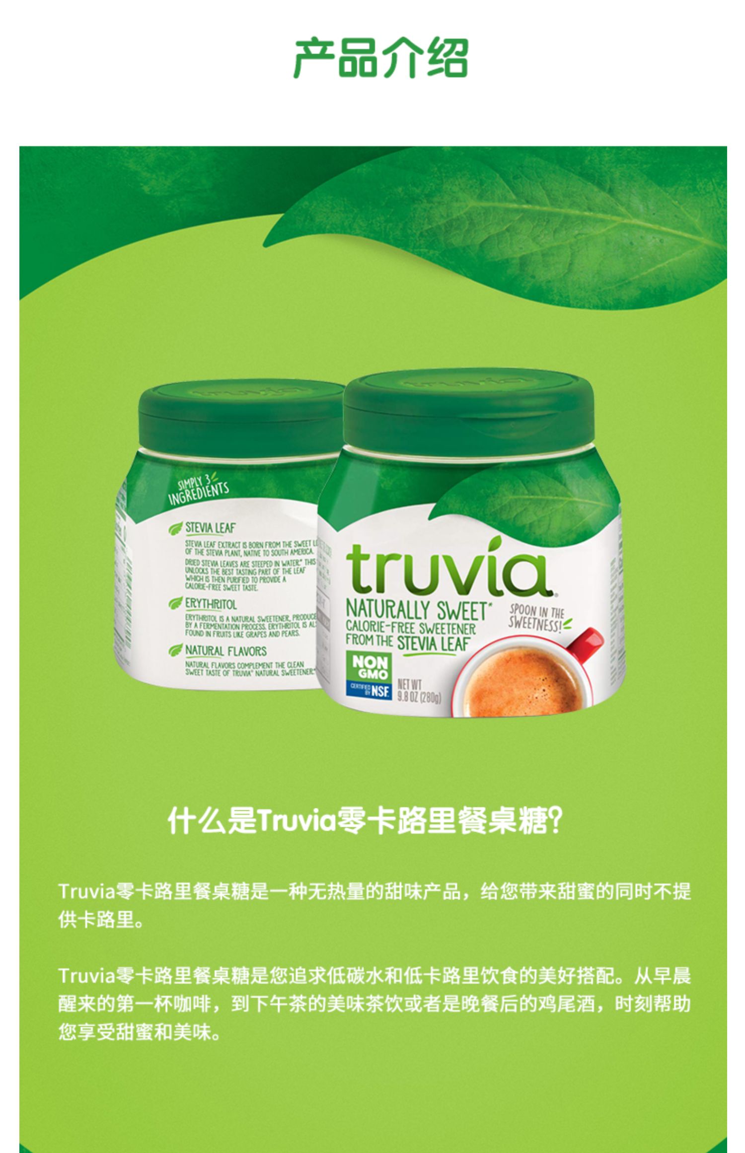 TRUVIA甜菊糖280g 代糖赤藓糖醇0糖0卡0脂甜味剂烘焙糖【exp2024.9~2024.12非质量问题不退不换】