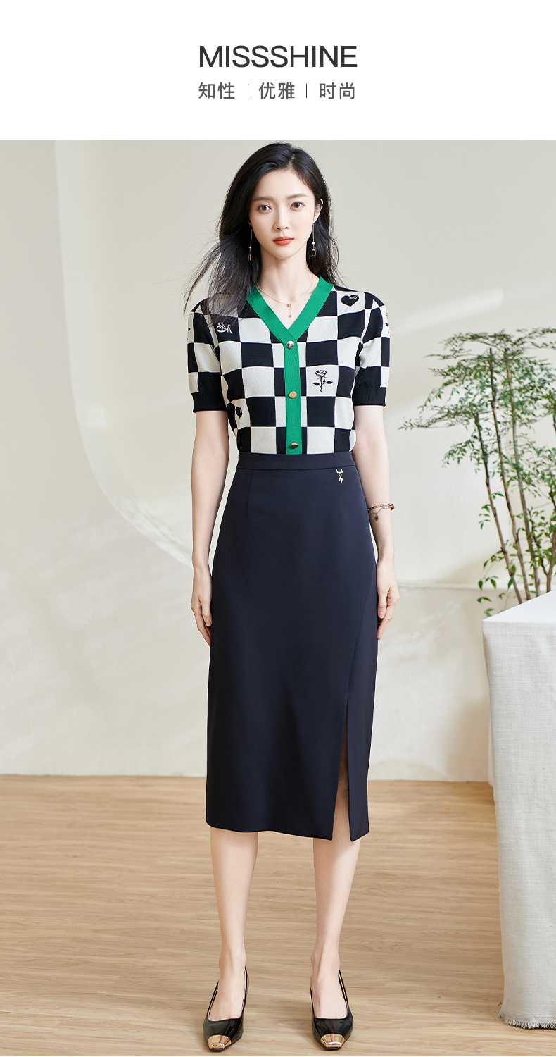 米思阳2026春季新款通勤气质简约风半身裙修身开叉纯色包臀裙1012