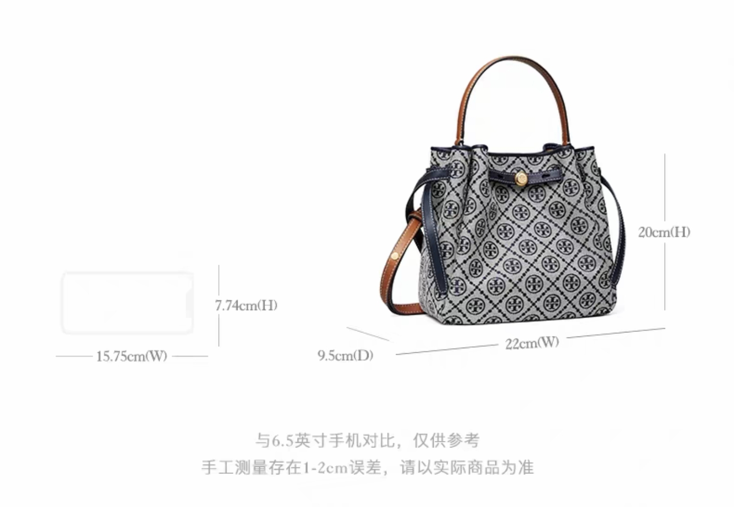 【初春上新】Tory Burch/汤丽柏琦 ROMY TMONOGRAM 斜跨水桶包178016 -w 香港直邮 清关约7个工作日
