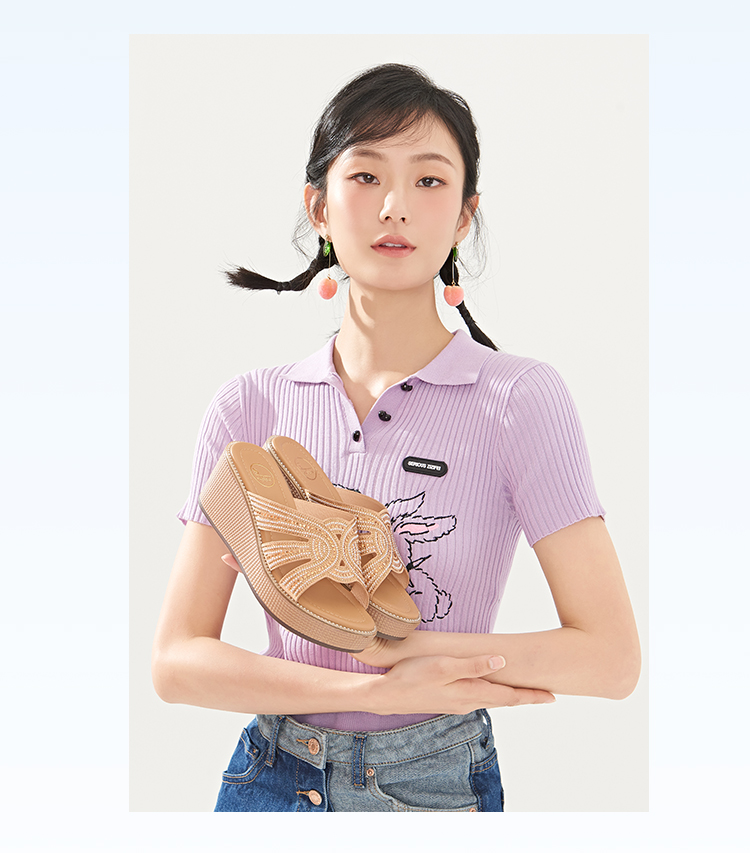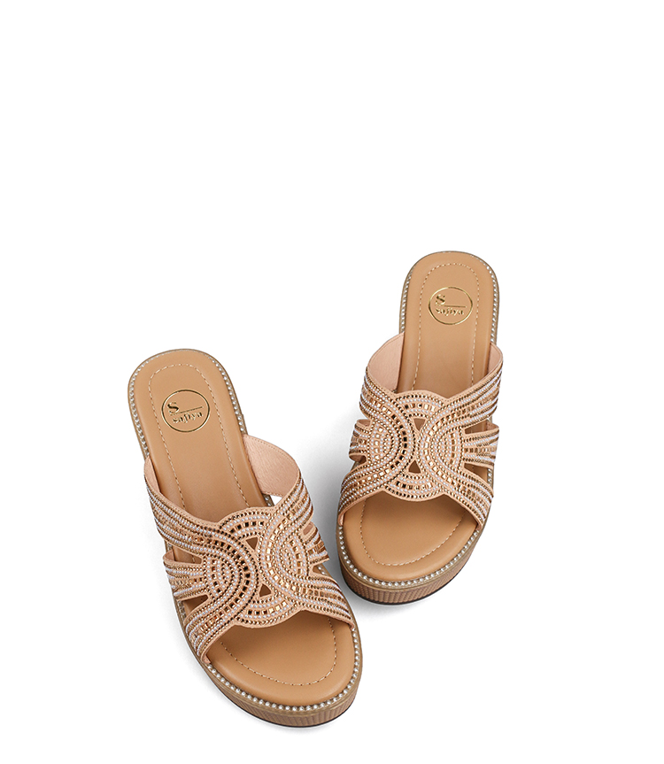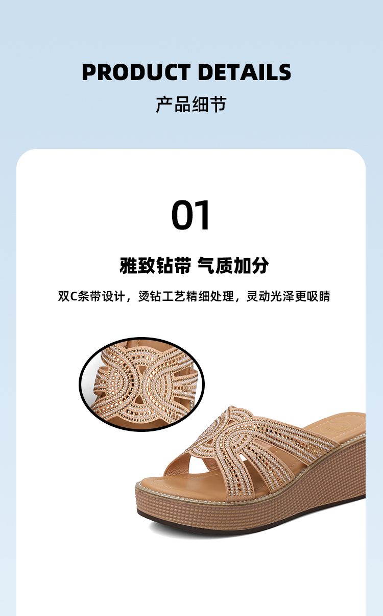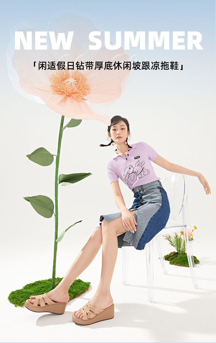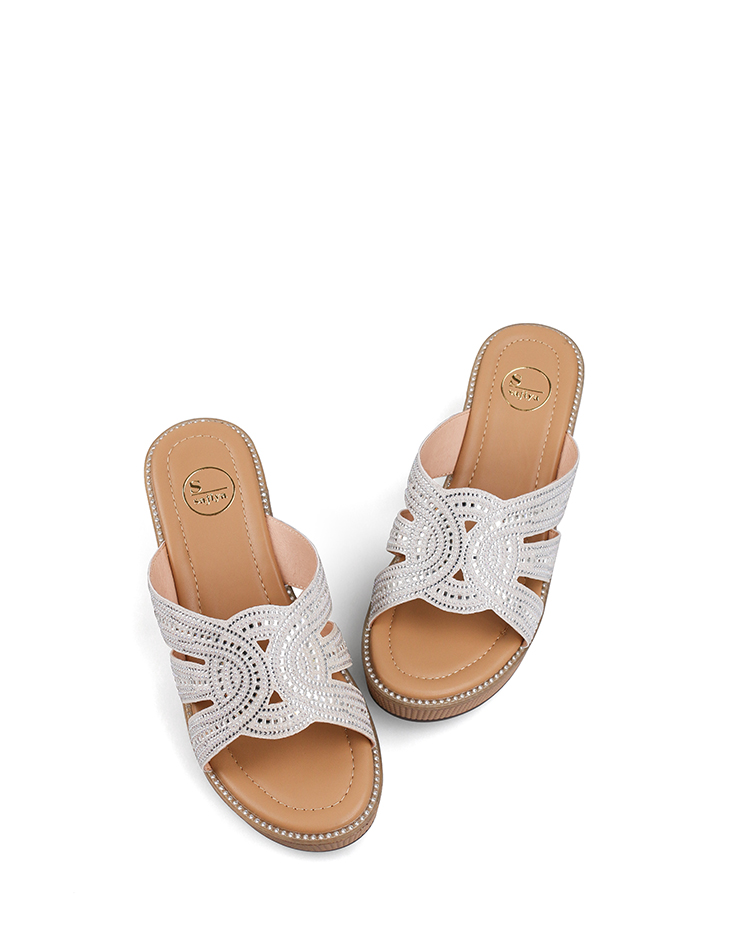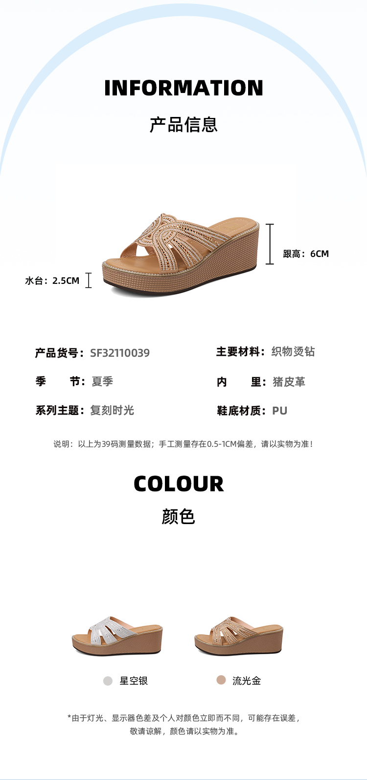 Safiya/索菲娅2023夏季新品闲适假日钻带厚底休闲坡跟凉拖鞋 SF32110039