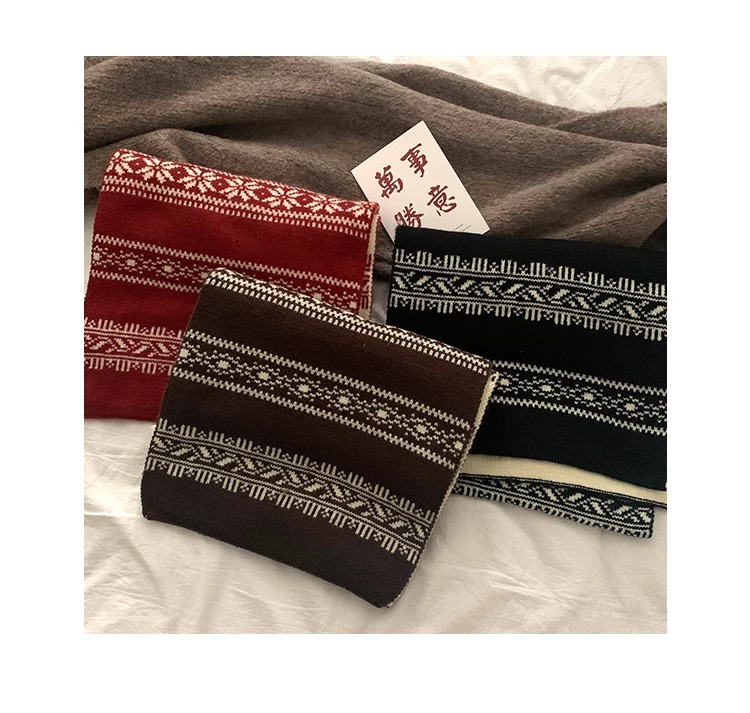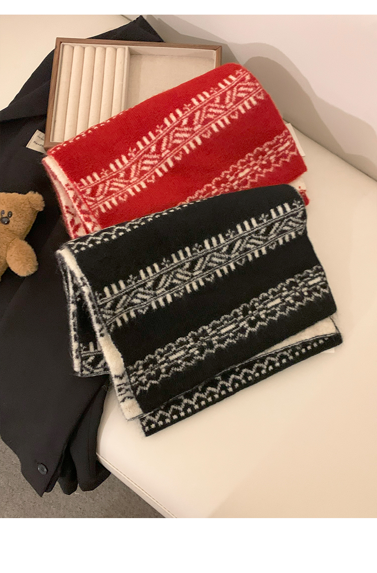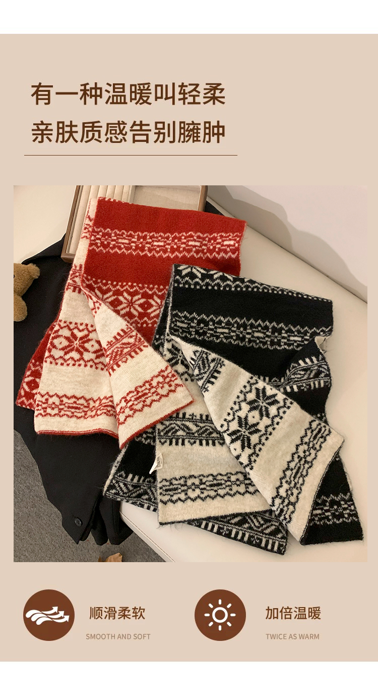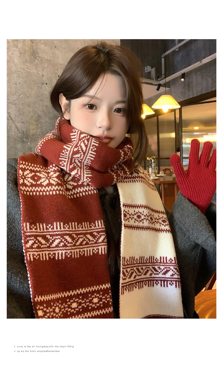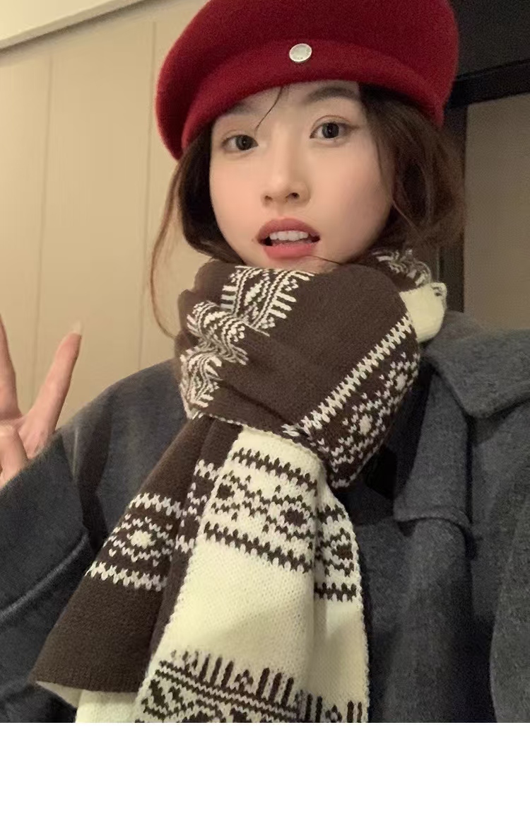 费尔岛风新年红双面针织羊绒围巾 女冬季氛围感百搭披肩保暖围脖